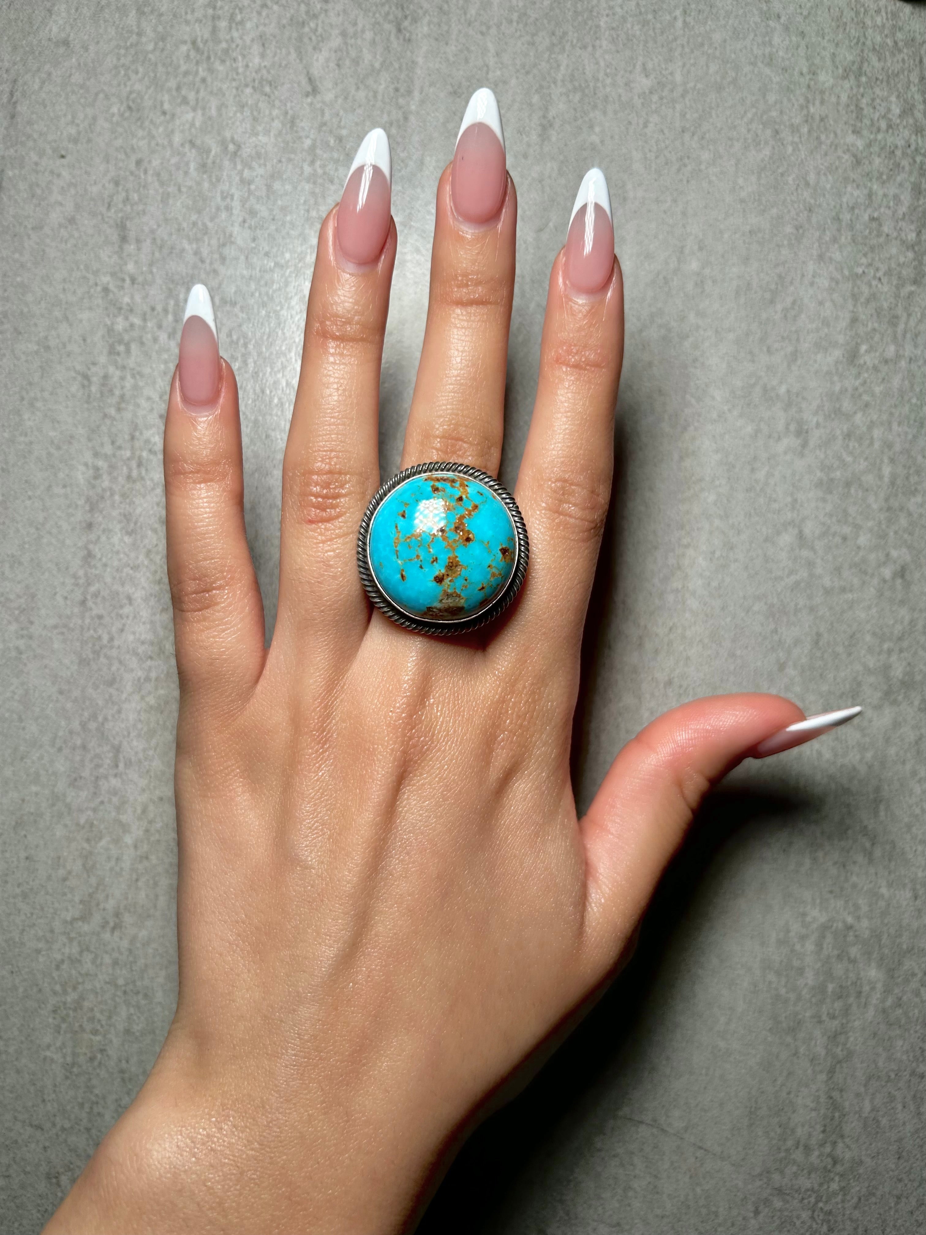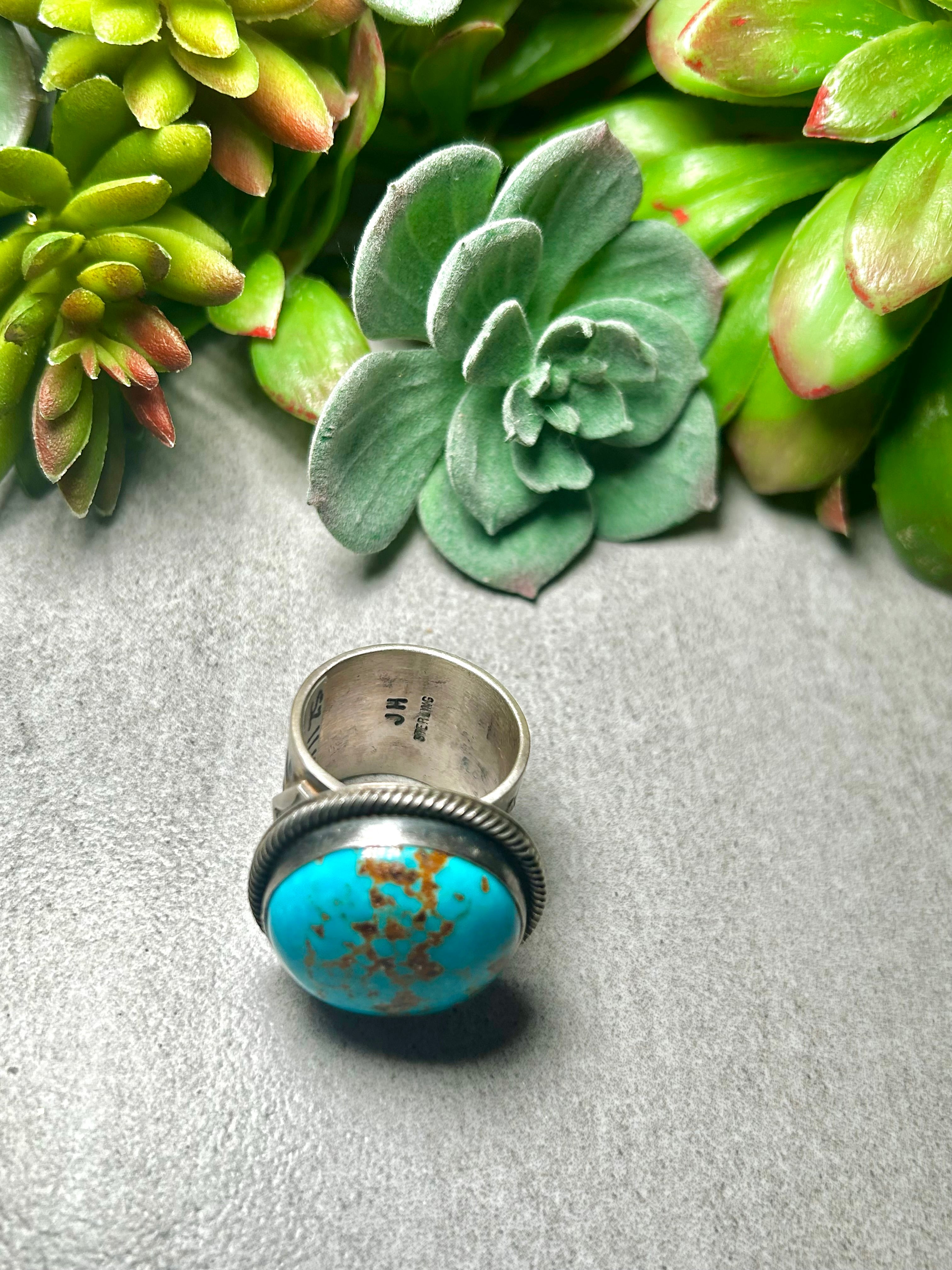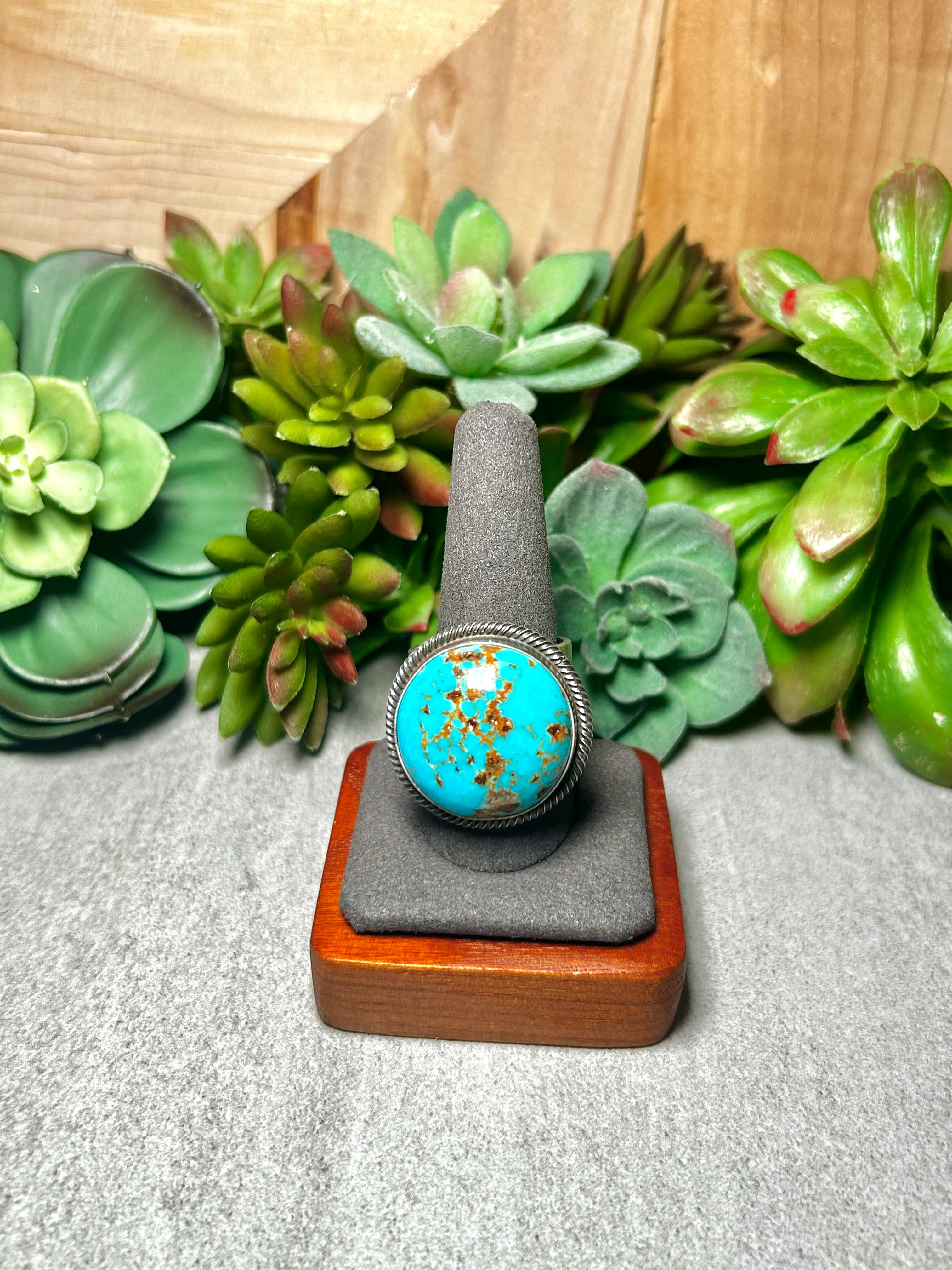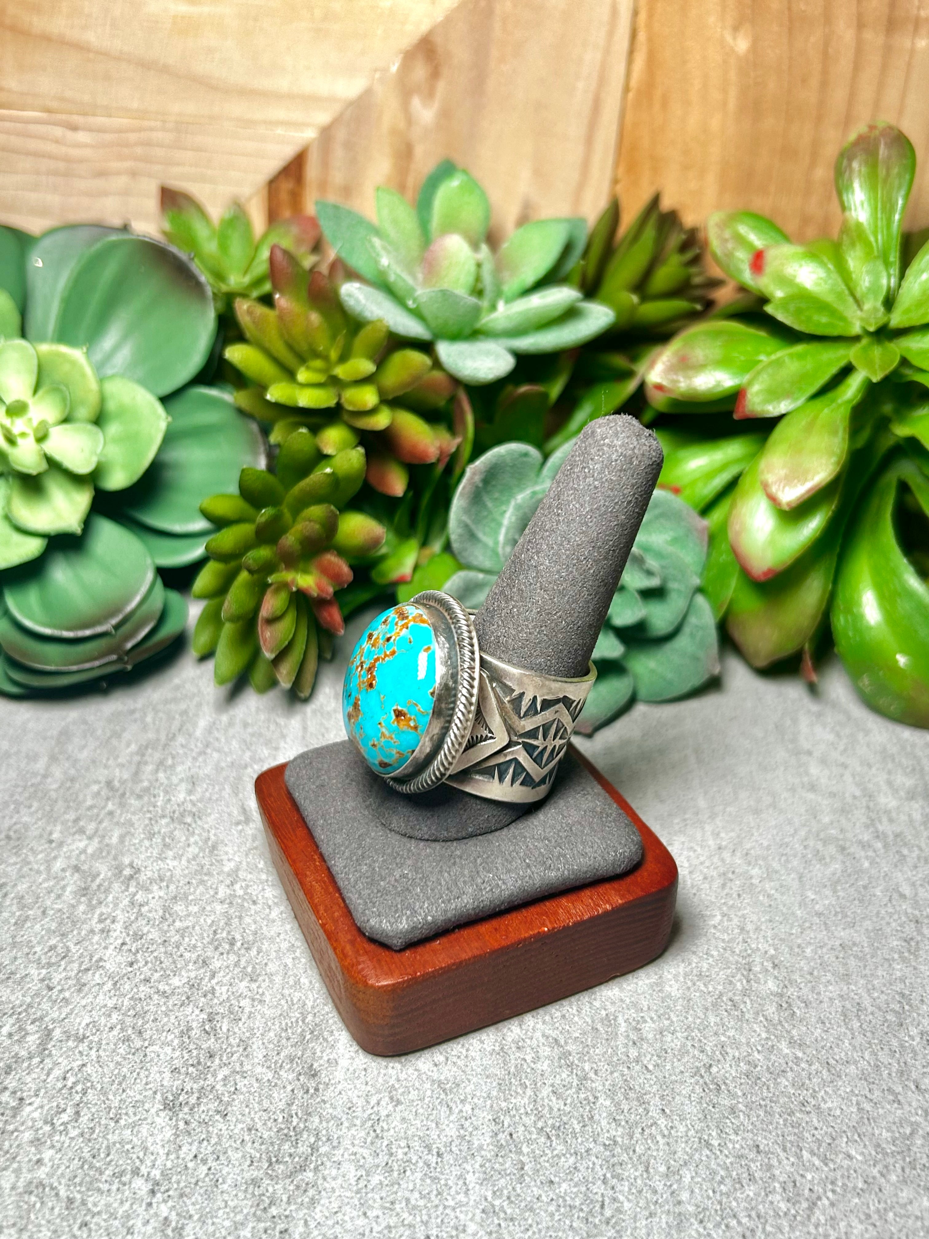 Navajo Made Kingman Turquoise & Sterling Silver Ring Size 11.5