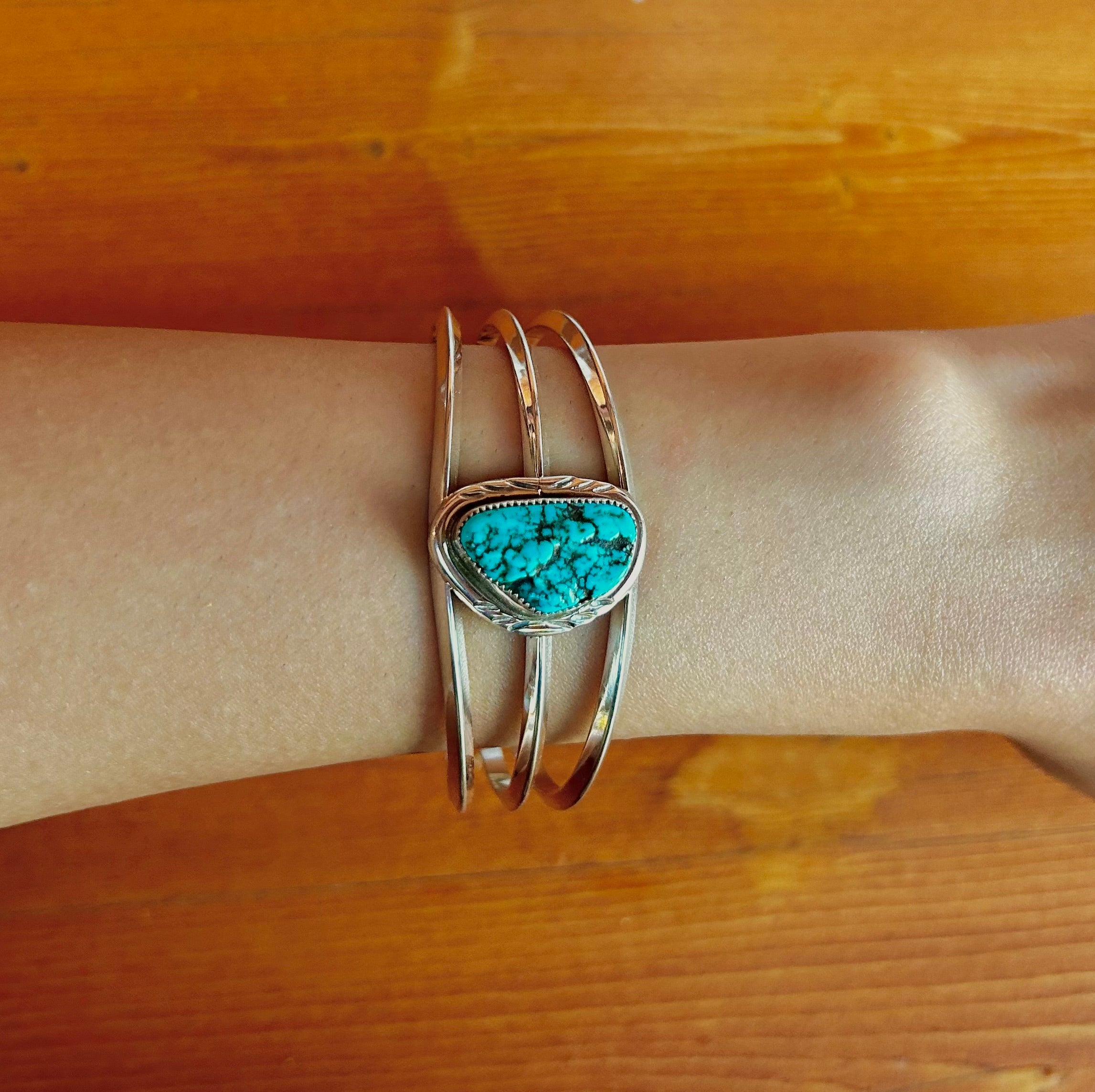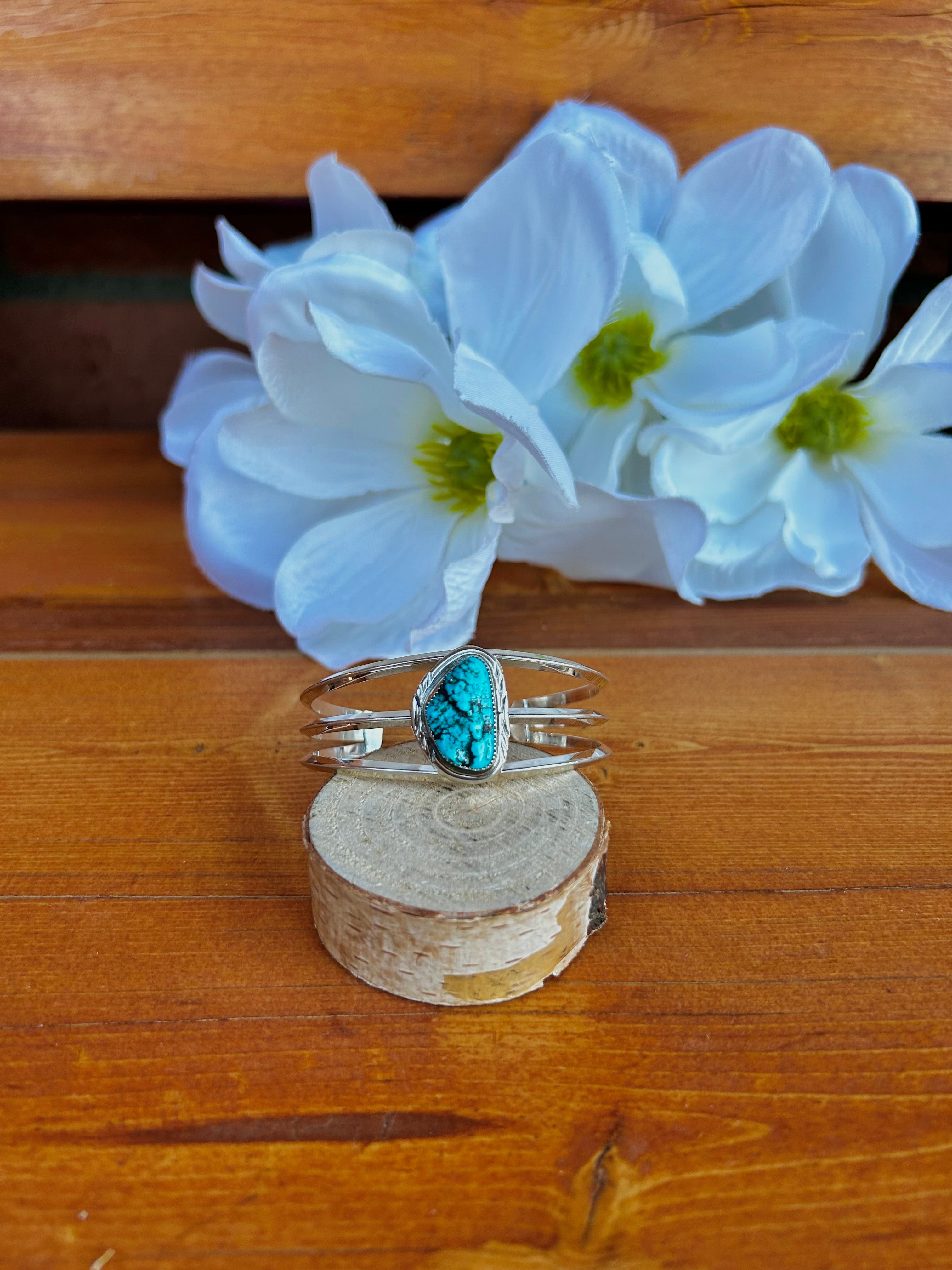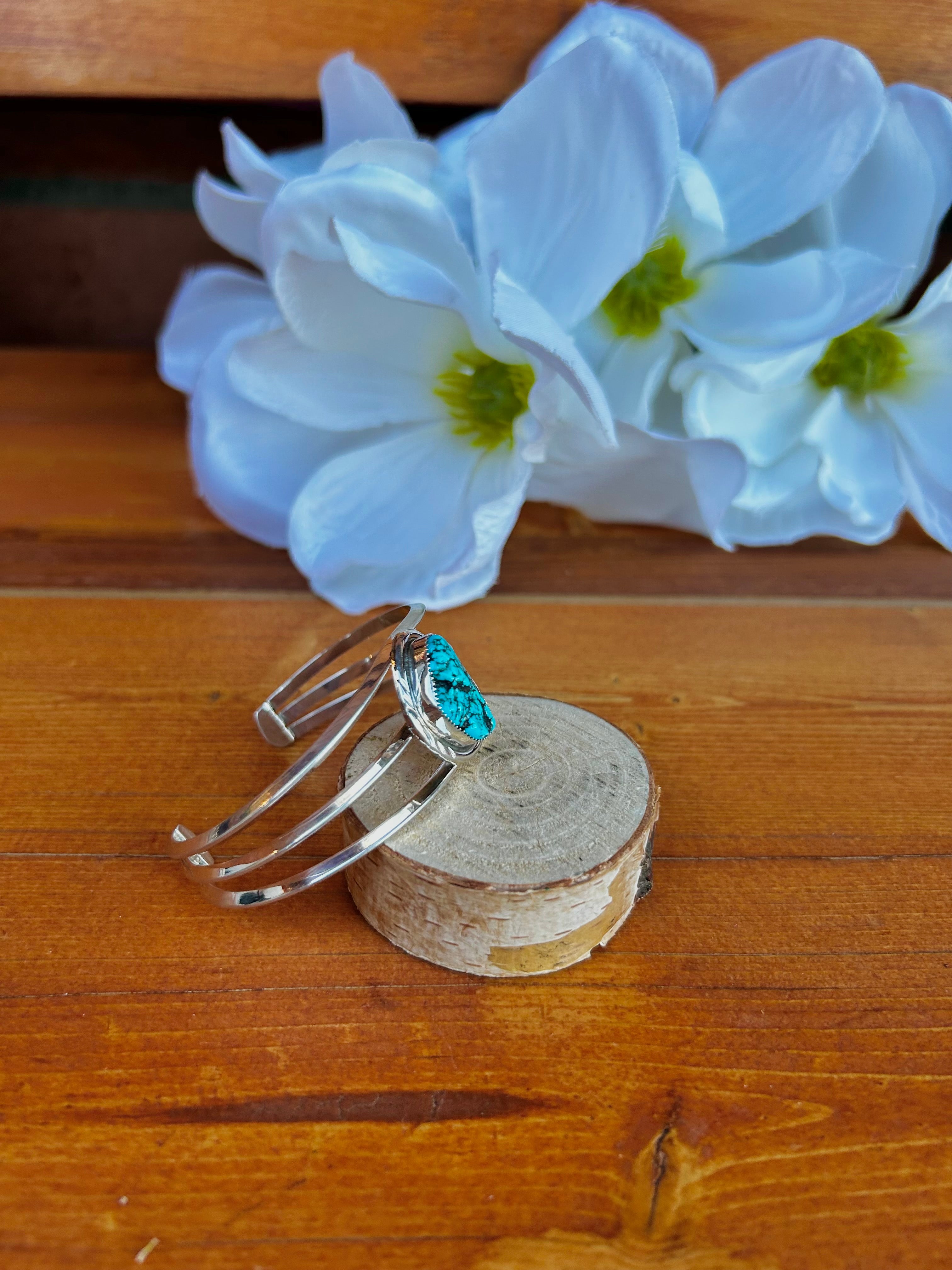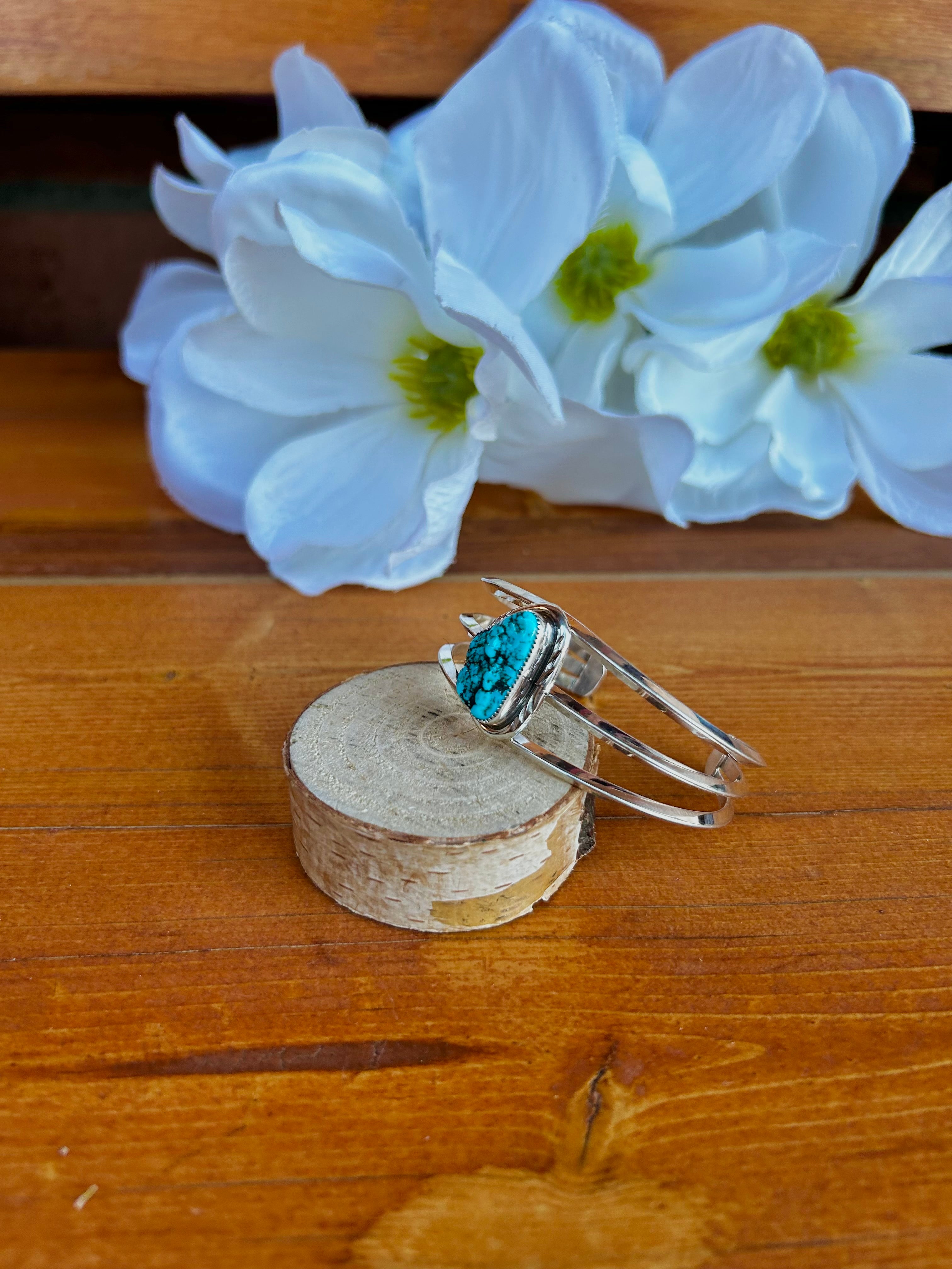 Navajo Made Kingman Turquoise Nugget & Sterling Silver Cuff Bracelet