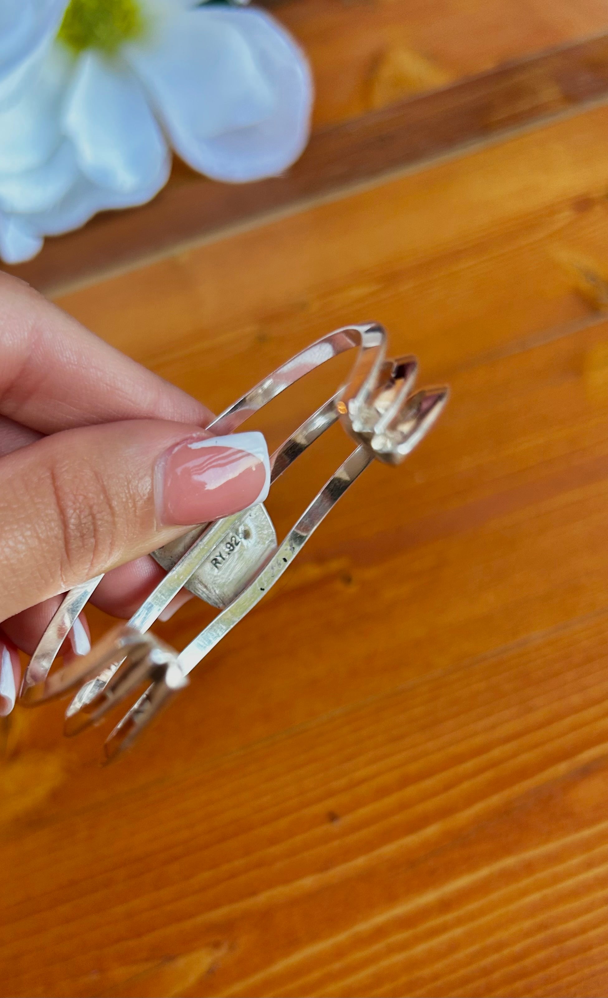 Navajo Made Kingman Turquoise Nugget & Sterling Silver Cuff Bracelet. It measures 1 inch wide with an inside circumference of 5 1/8 inches and a gap of 1 inch. Signed by artist and stamped sterling silver. Cuff has flex to it.