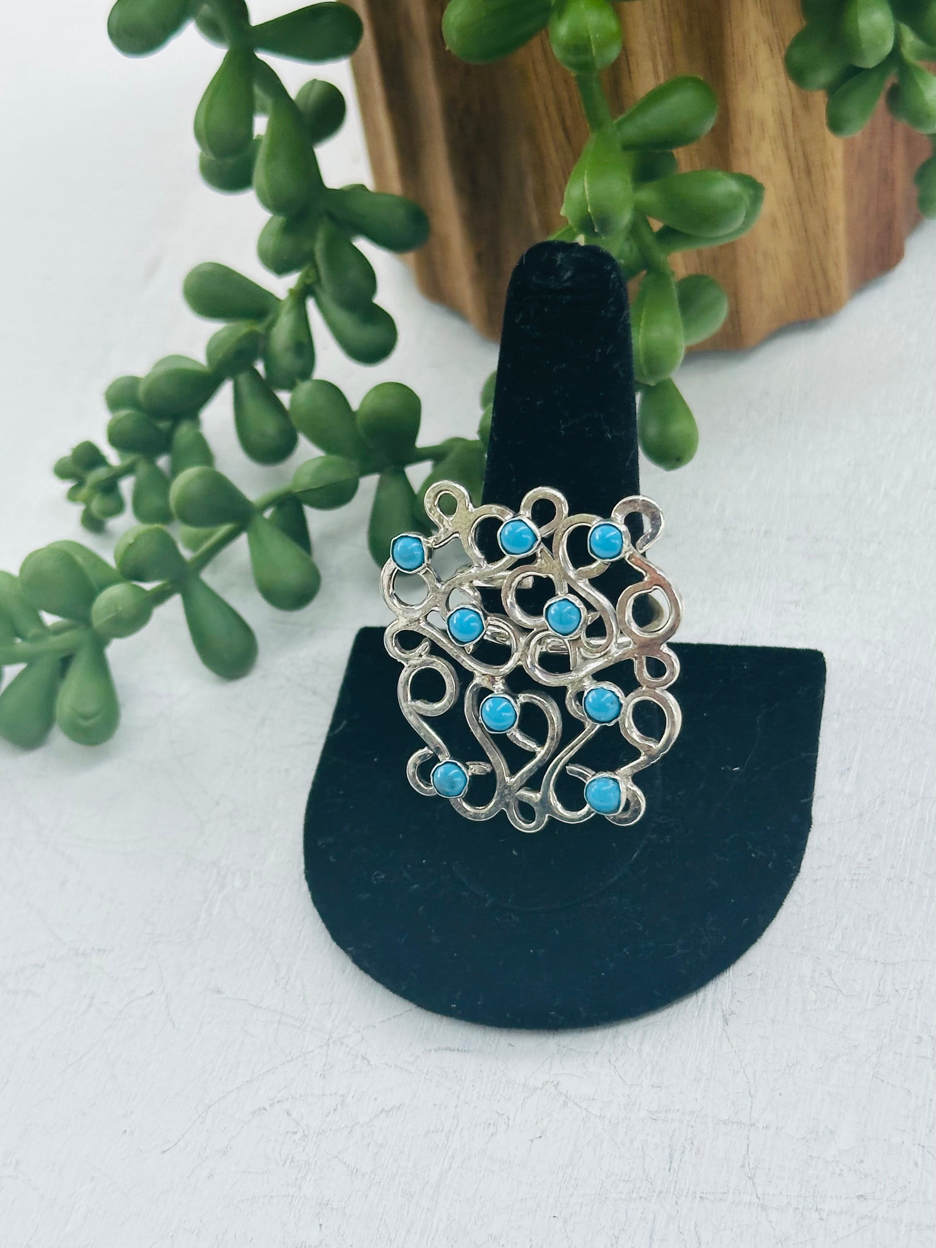 Navajo Made Kingman Turquoise & Sterling Silver Adjustable Ring