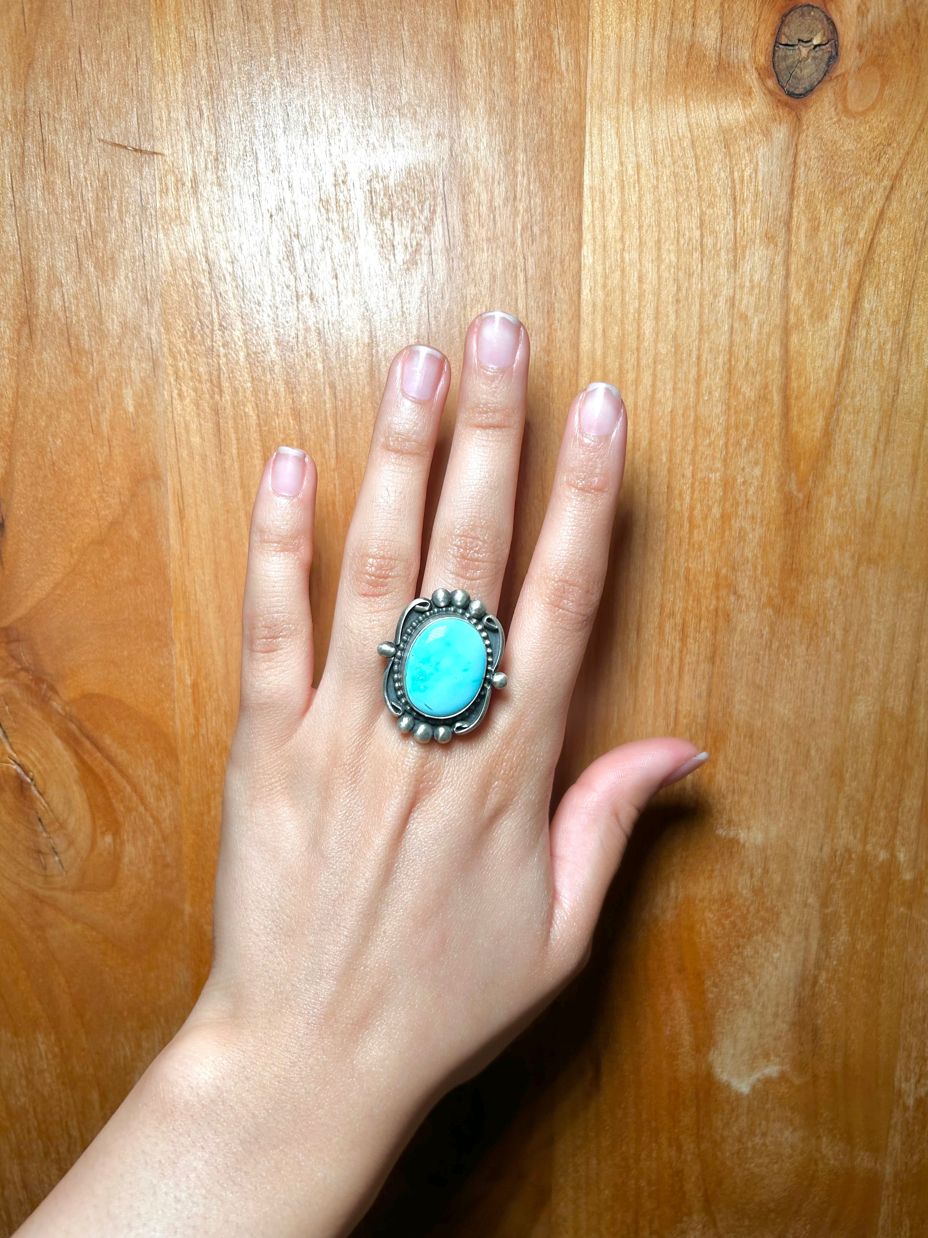 Navajo Made Sonoran Mountain Turquoise & Sterling Silver Adjustable Ring