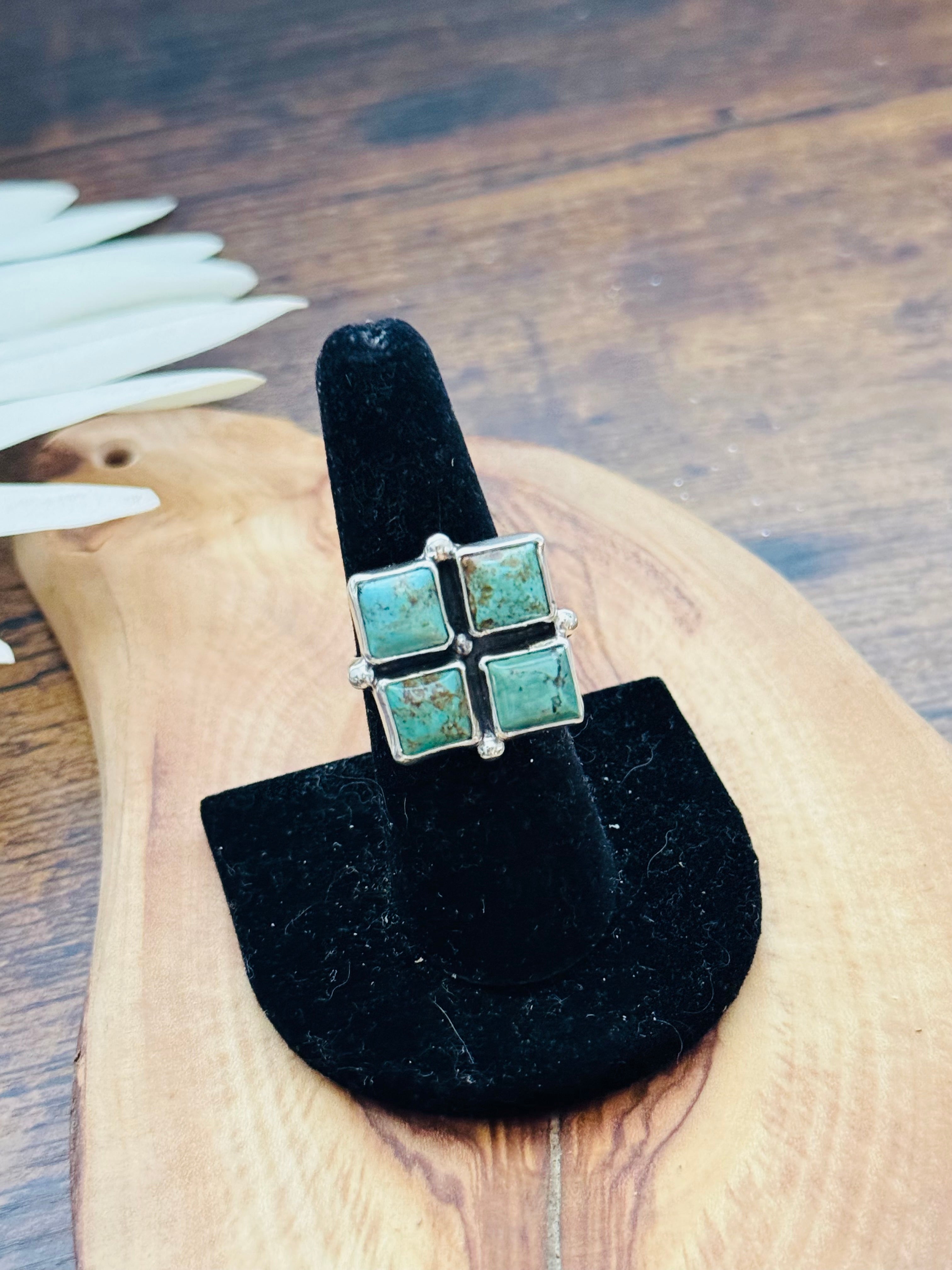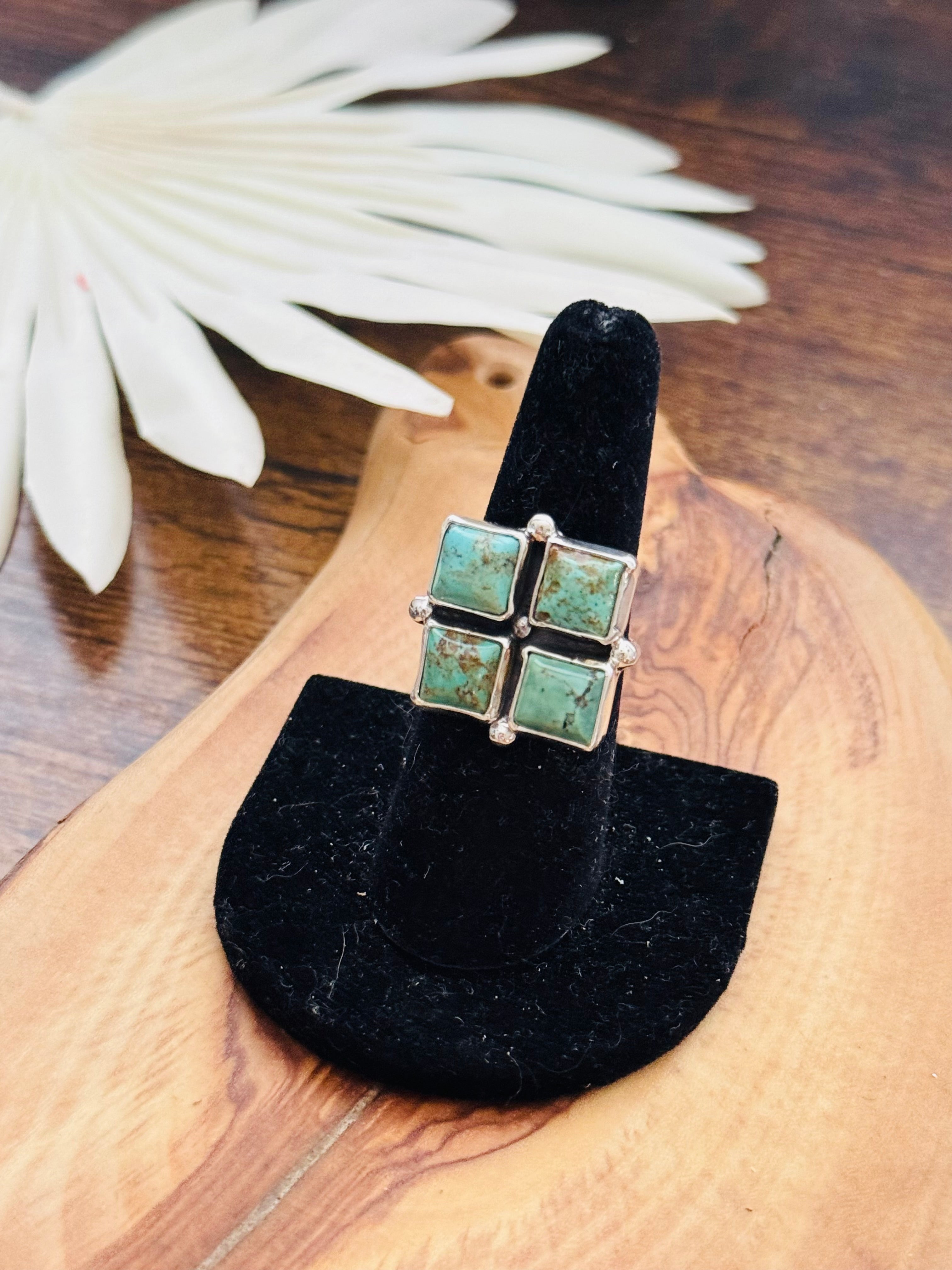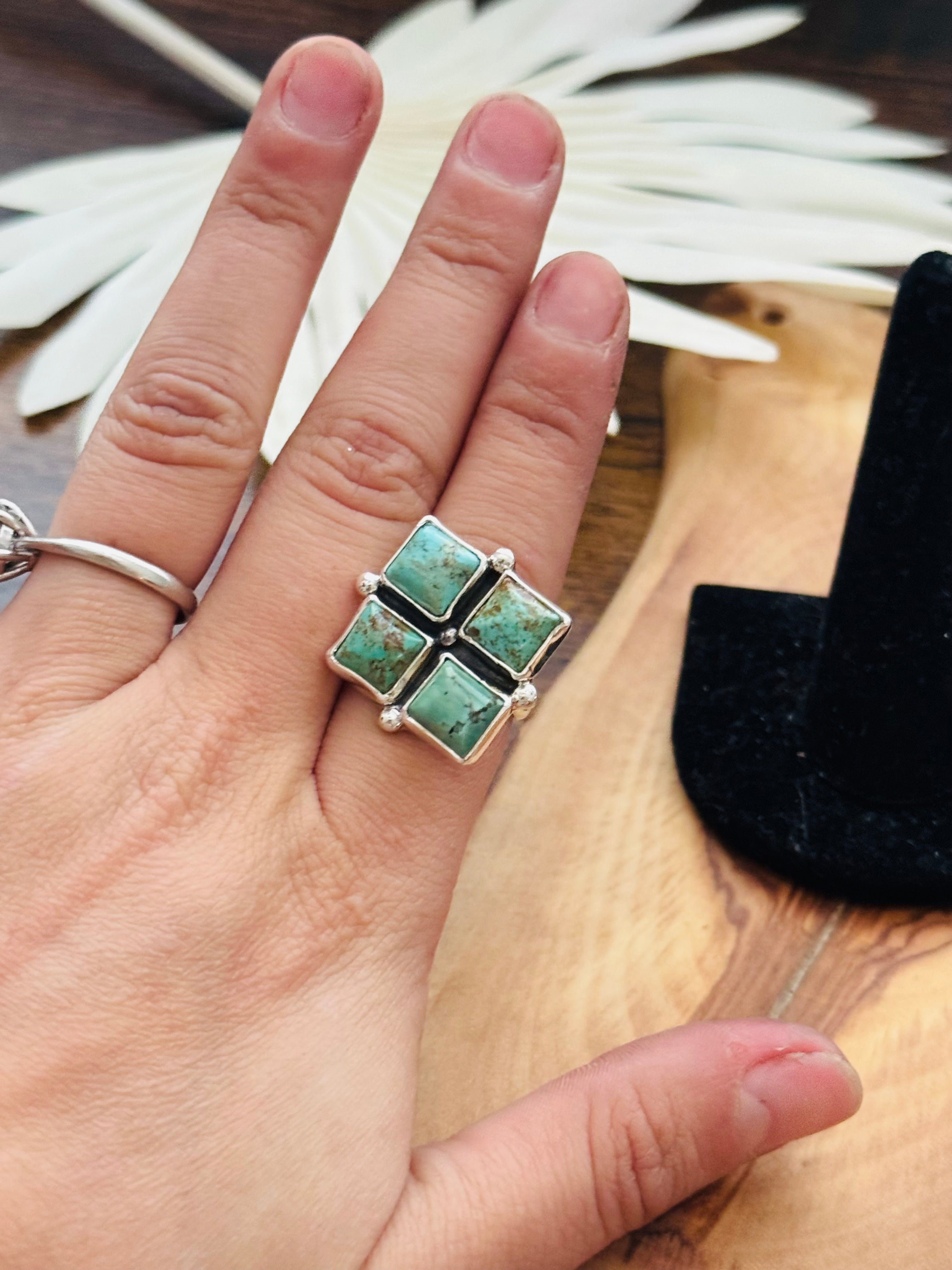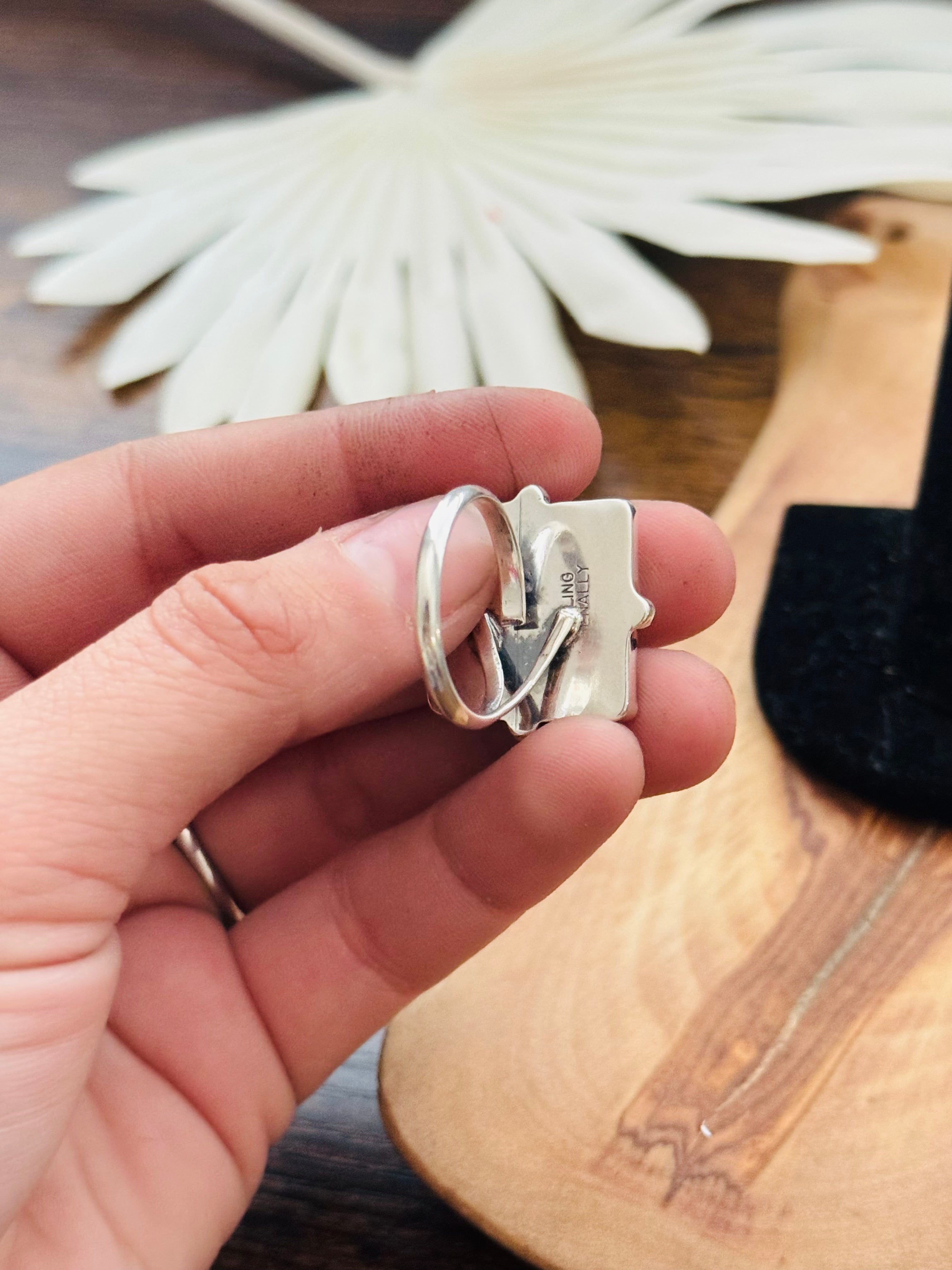 Navajo Made Kingman Turquoise & Sterling Silver Adjustable Ring