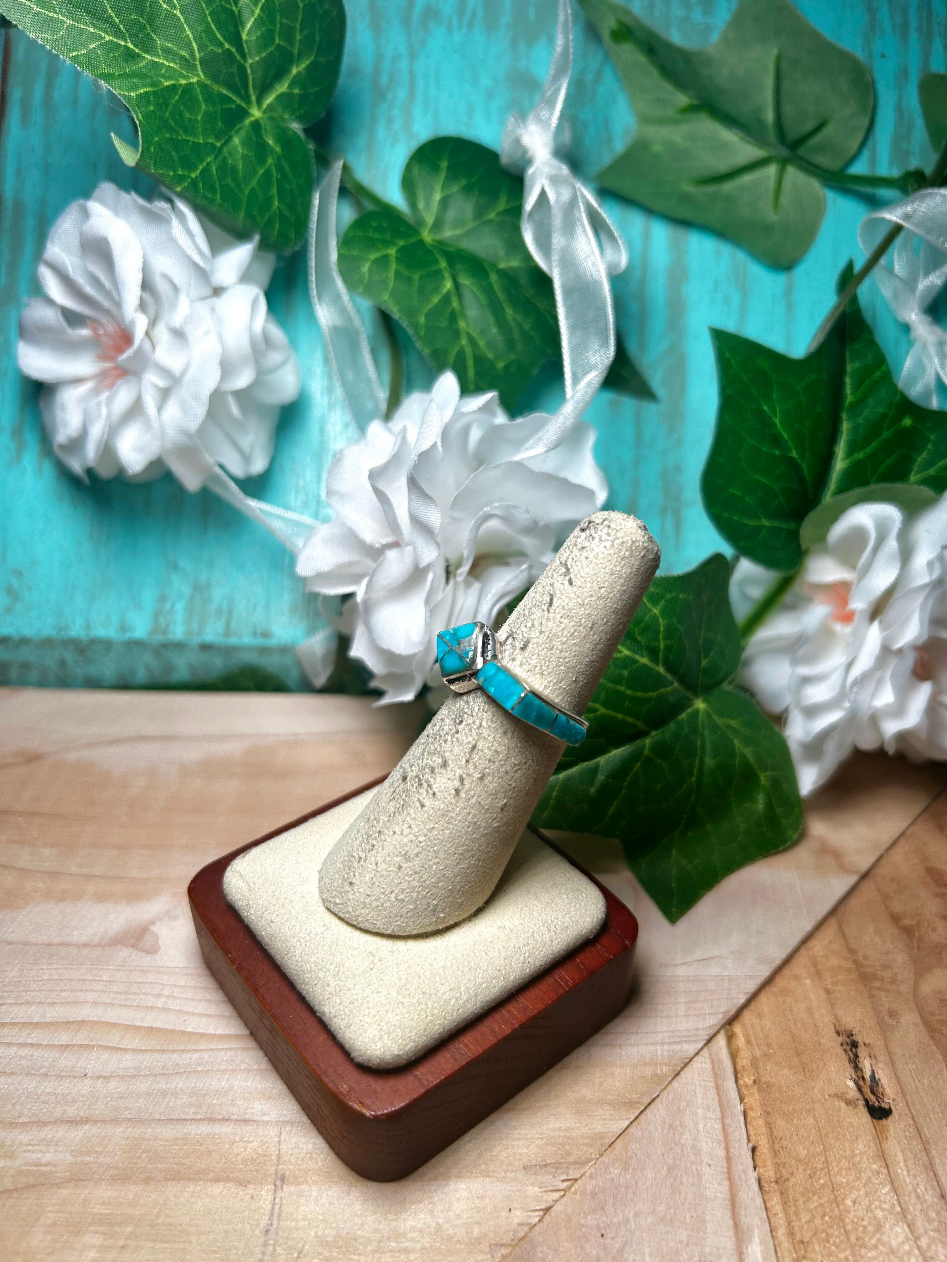 Navajo Made Kingman Turquoise & Sterling Silver Ring Size 5.5