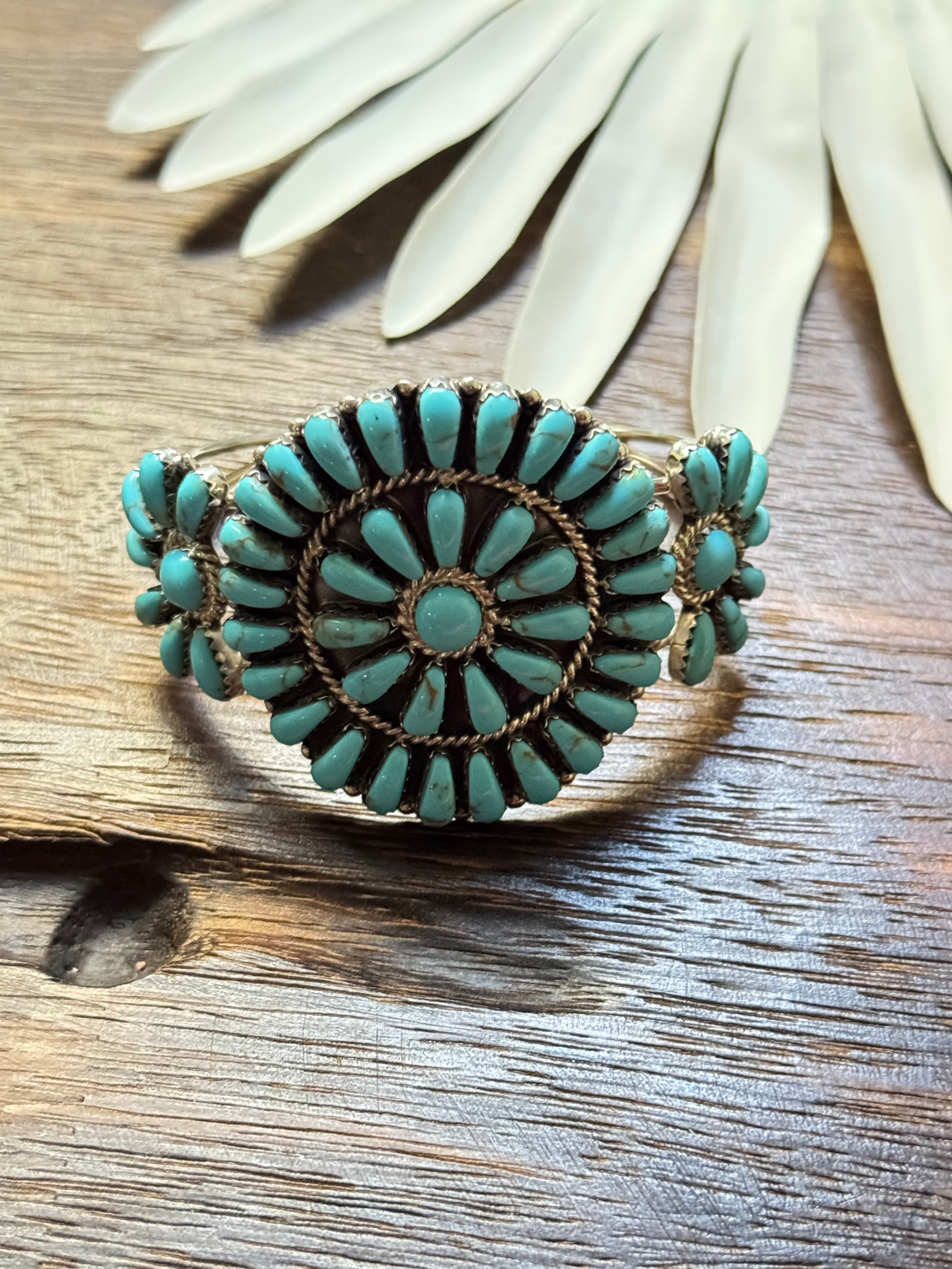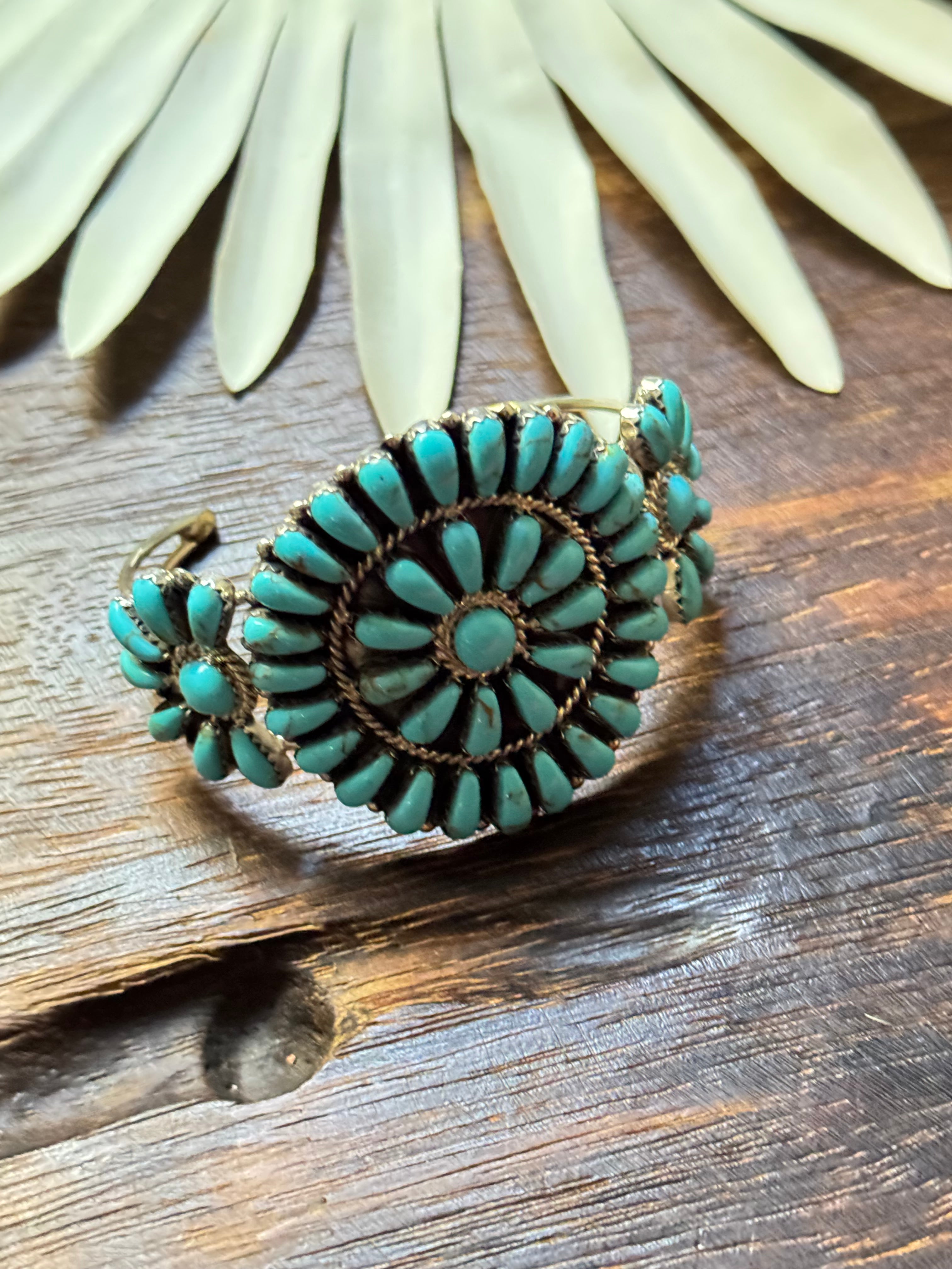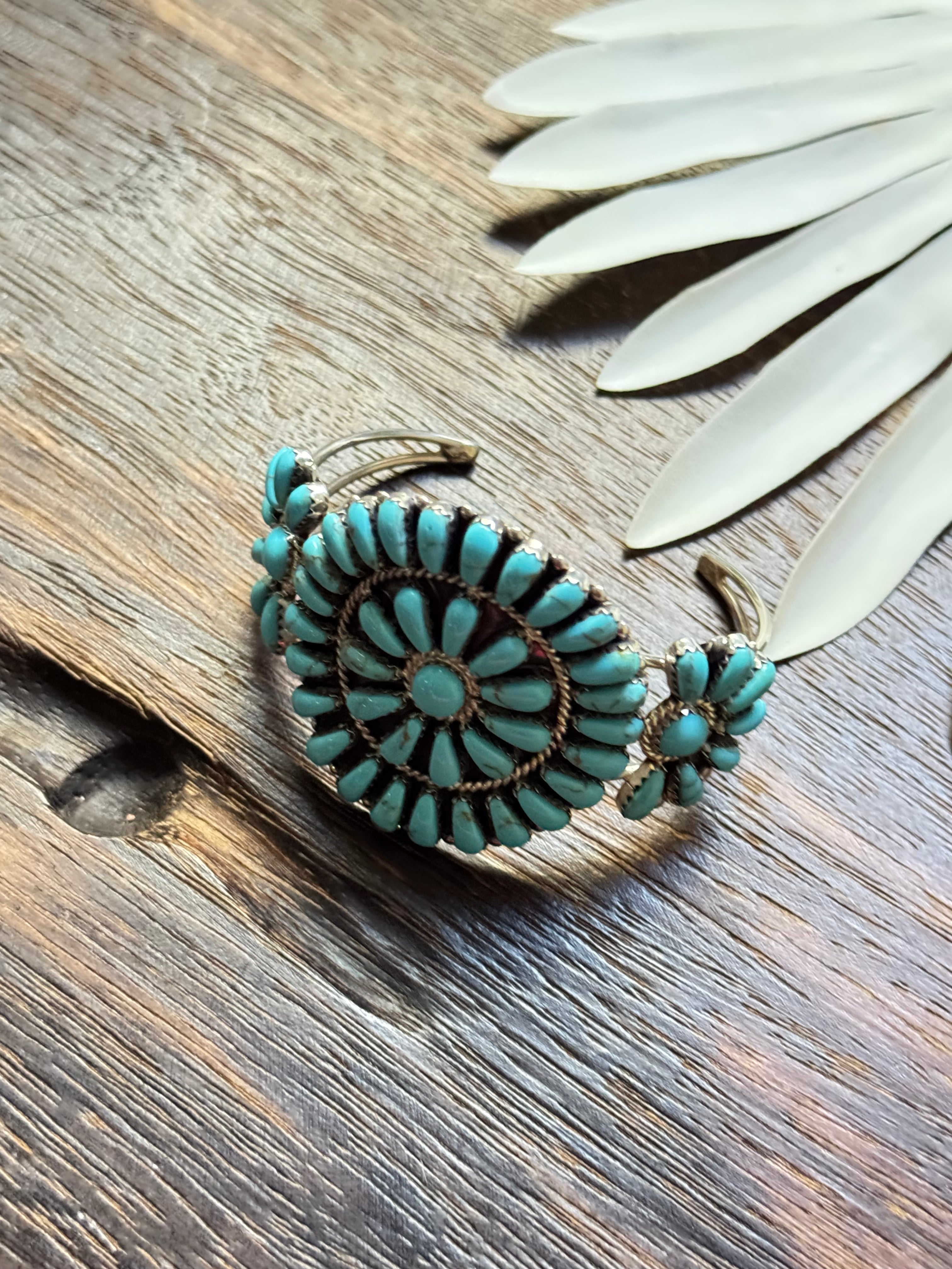 David Williams Kingman Turquoise & Sterling Silver Cluster Cuff Bracelet