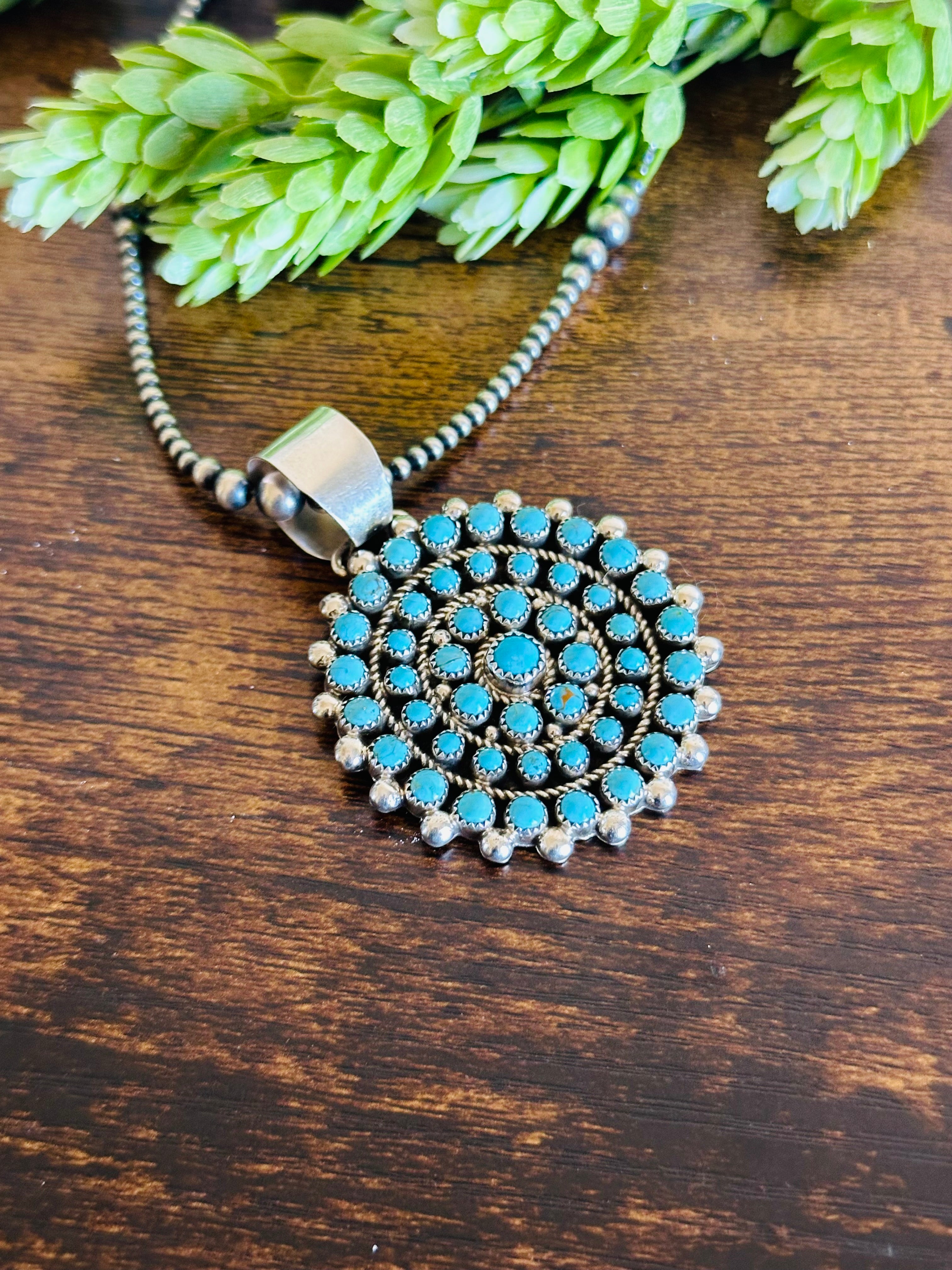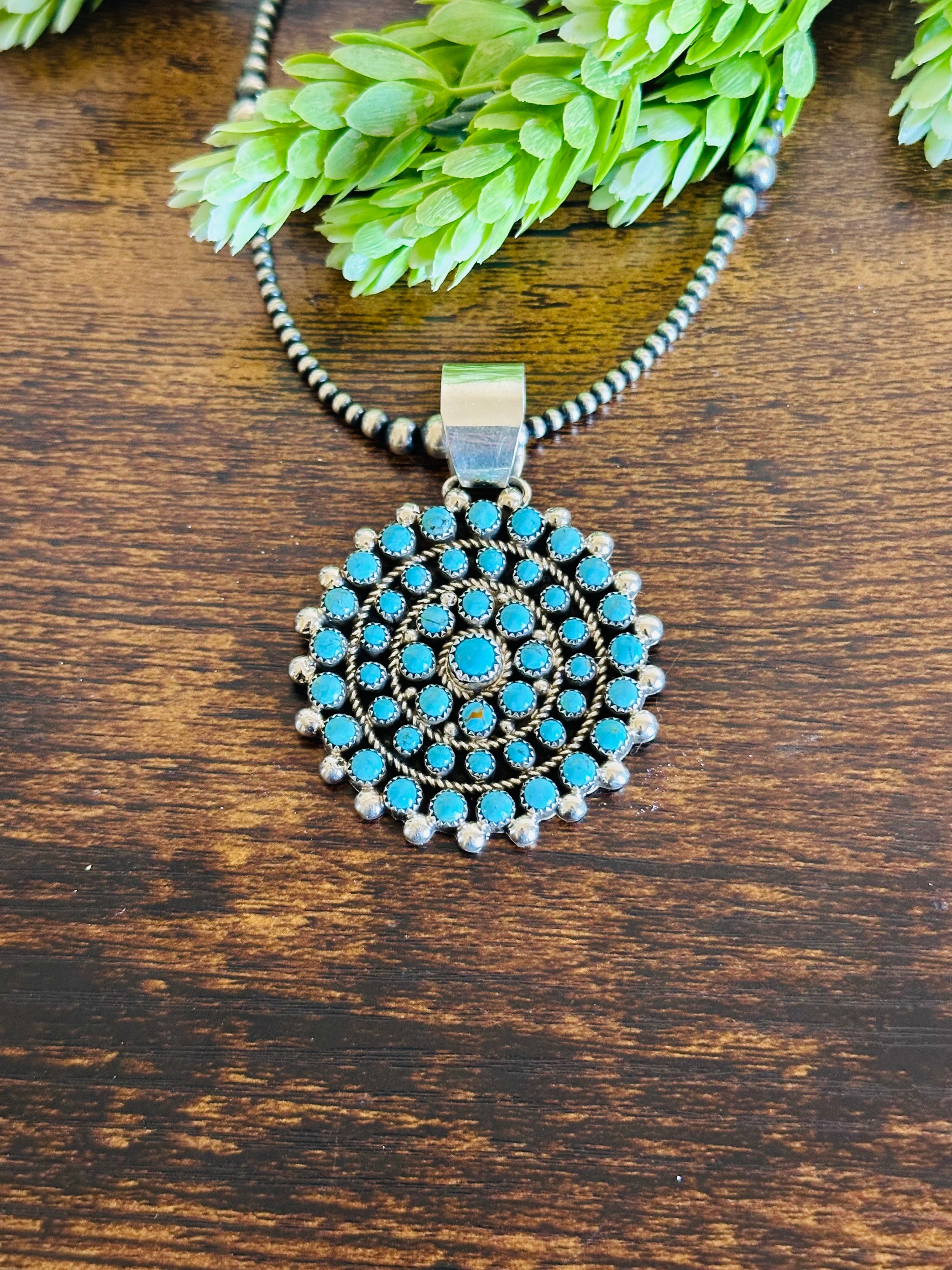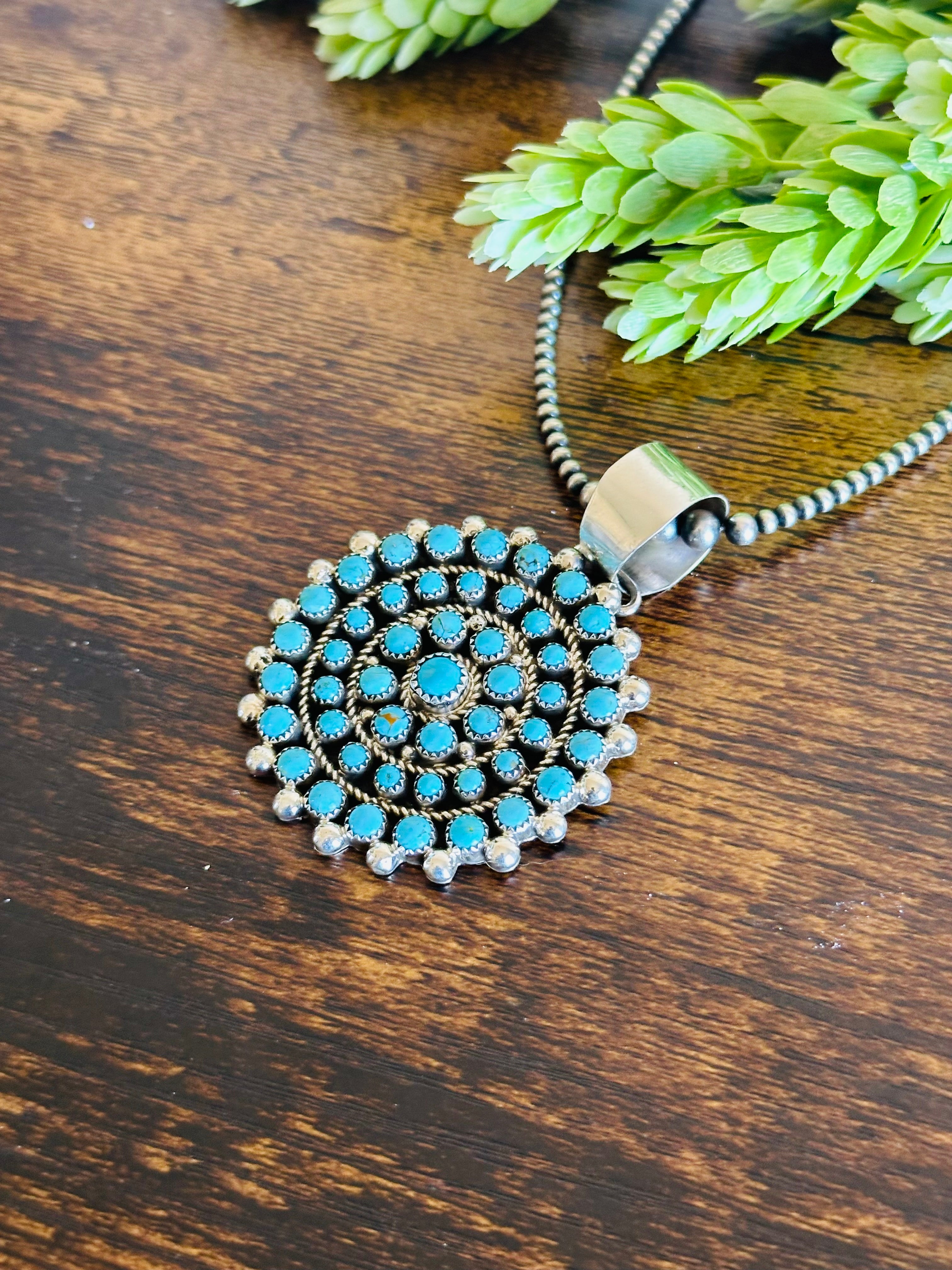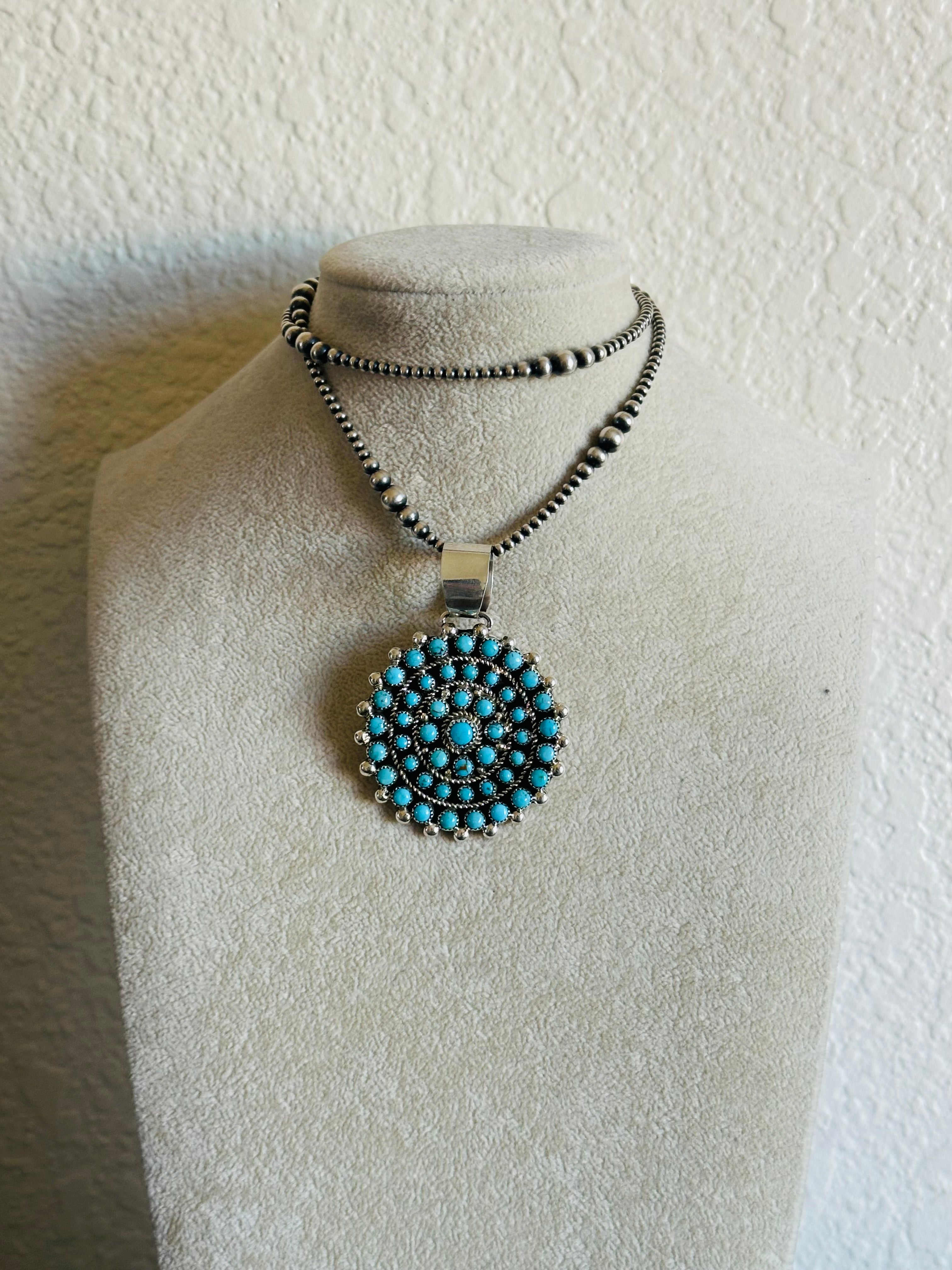 Navajo Made Kingman Turquoise & Sterling Silver Cluster Pendant