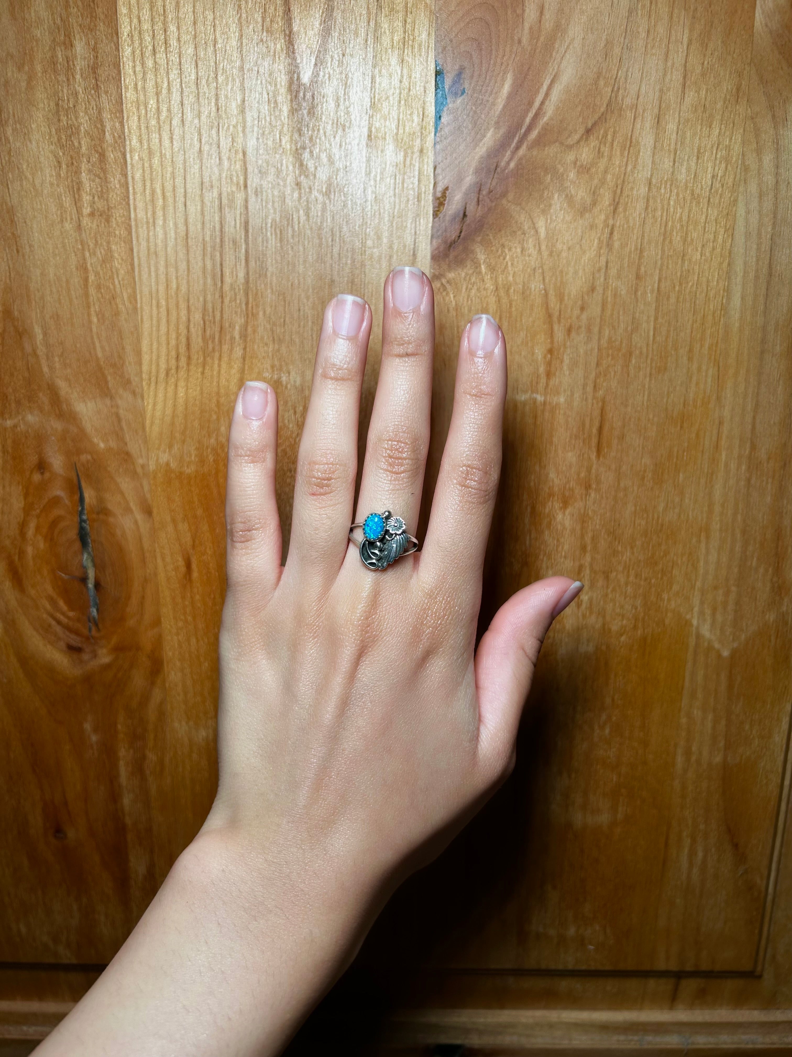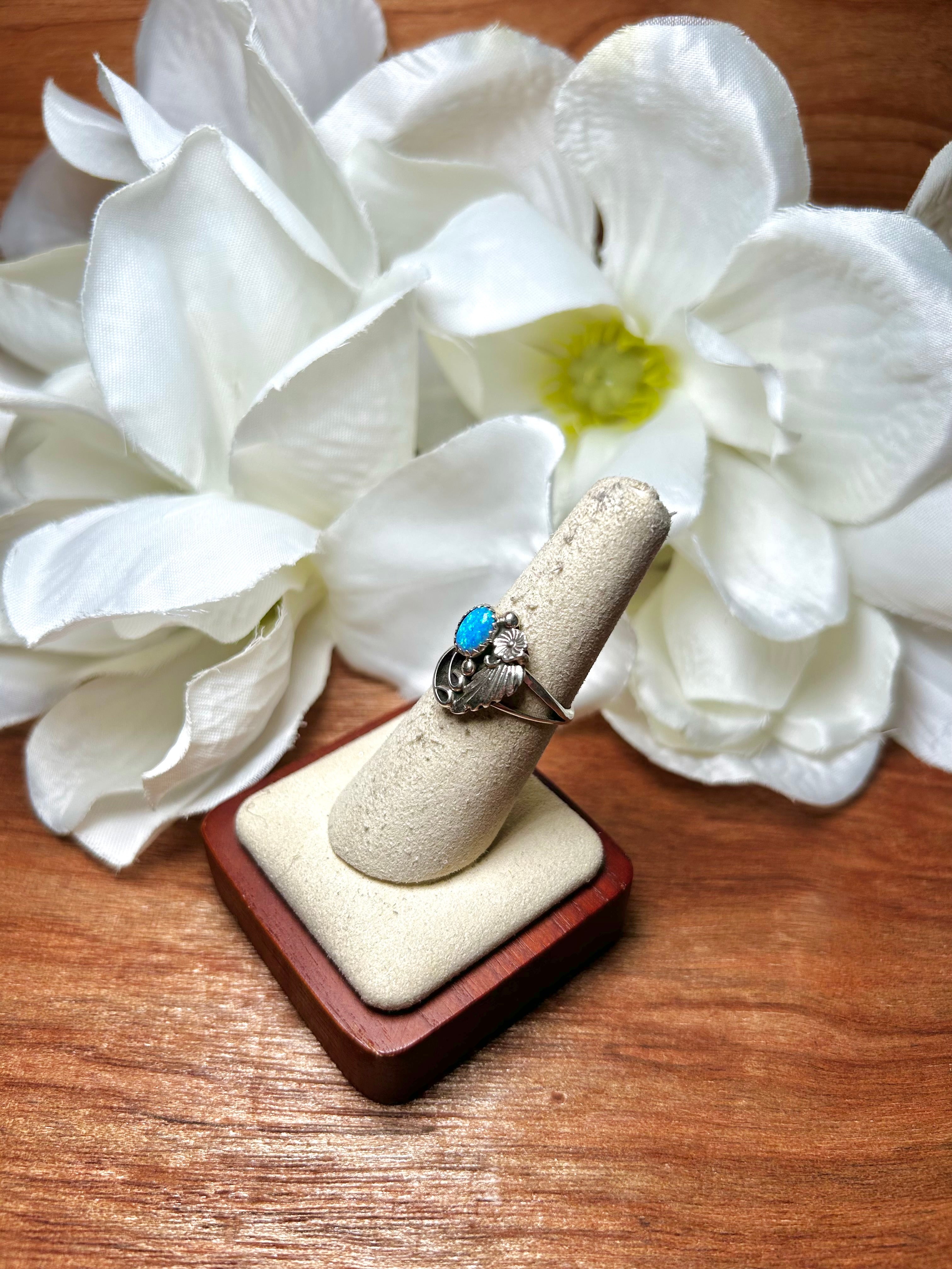 Navajo Made Opal & Sterling Silver Cluster Ring Size 7. It measures 5/8 of an inch long and it measures 1/2 of an inch wide. Signed by the artist and stamped sterling silver.