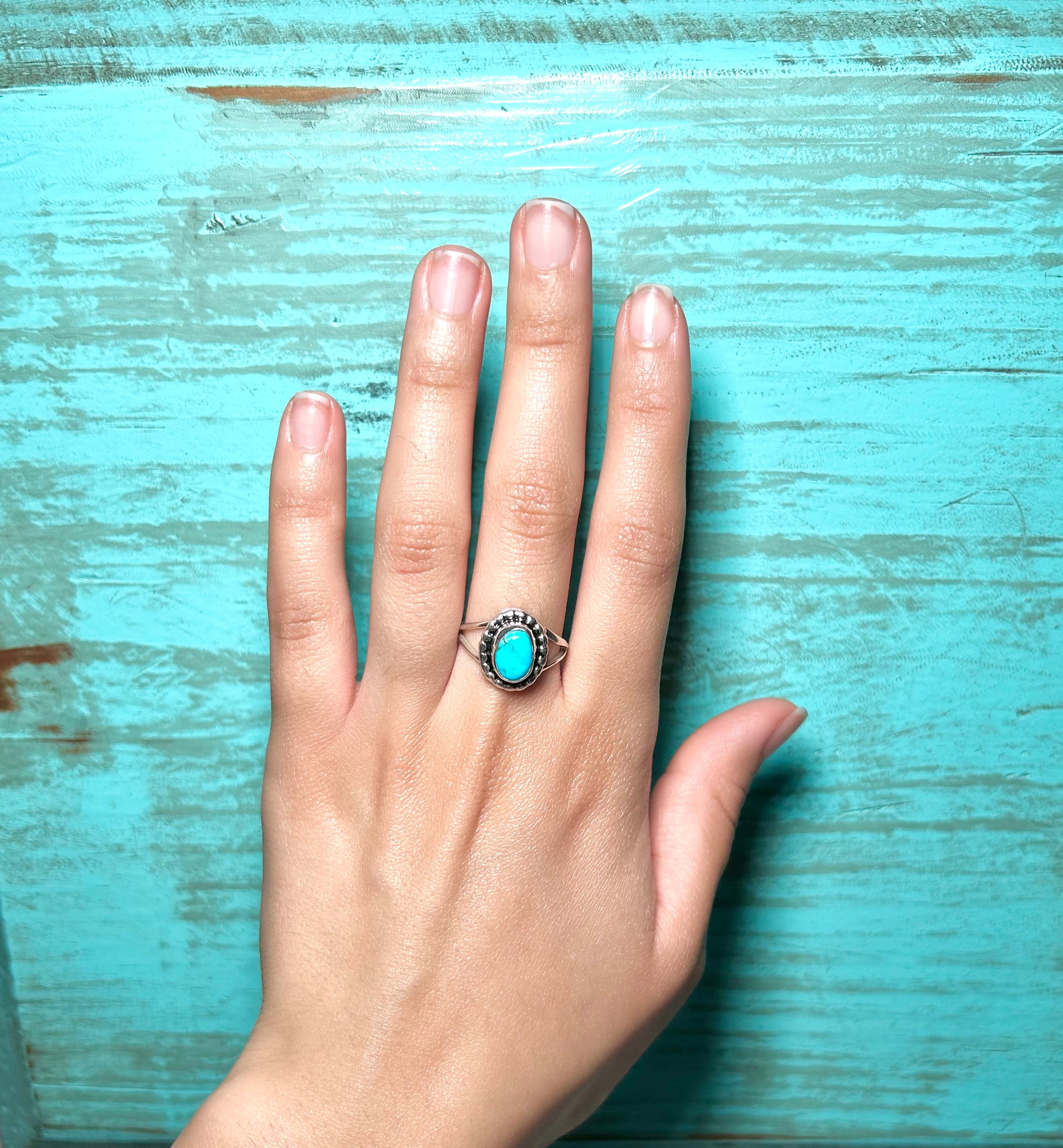 Navajo Made Kingman Turquoise & Sterling Silver Cluster Ring Size 7.75