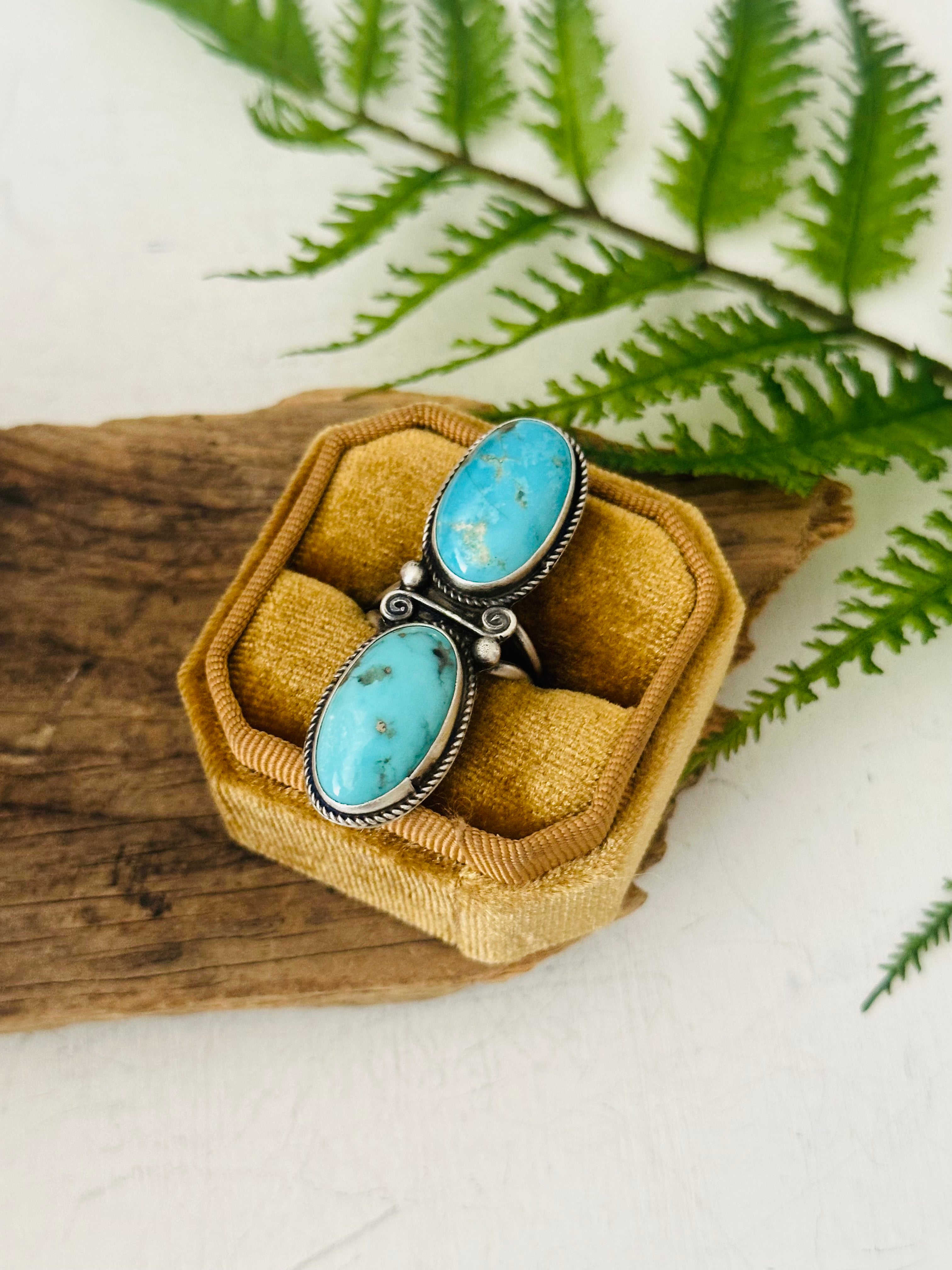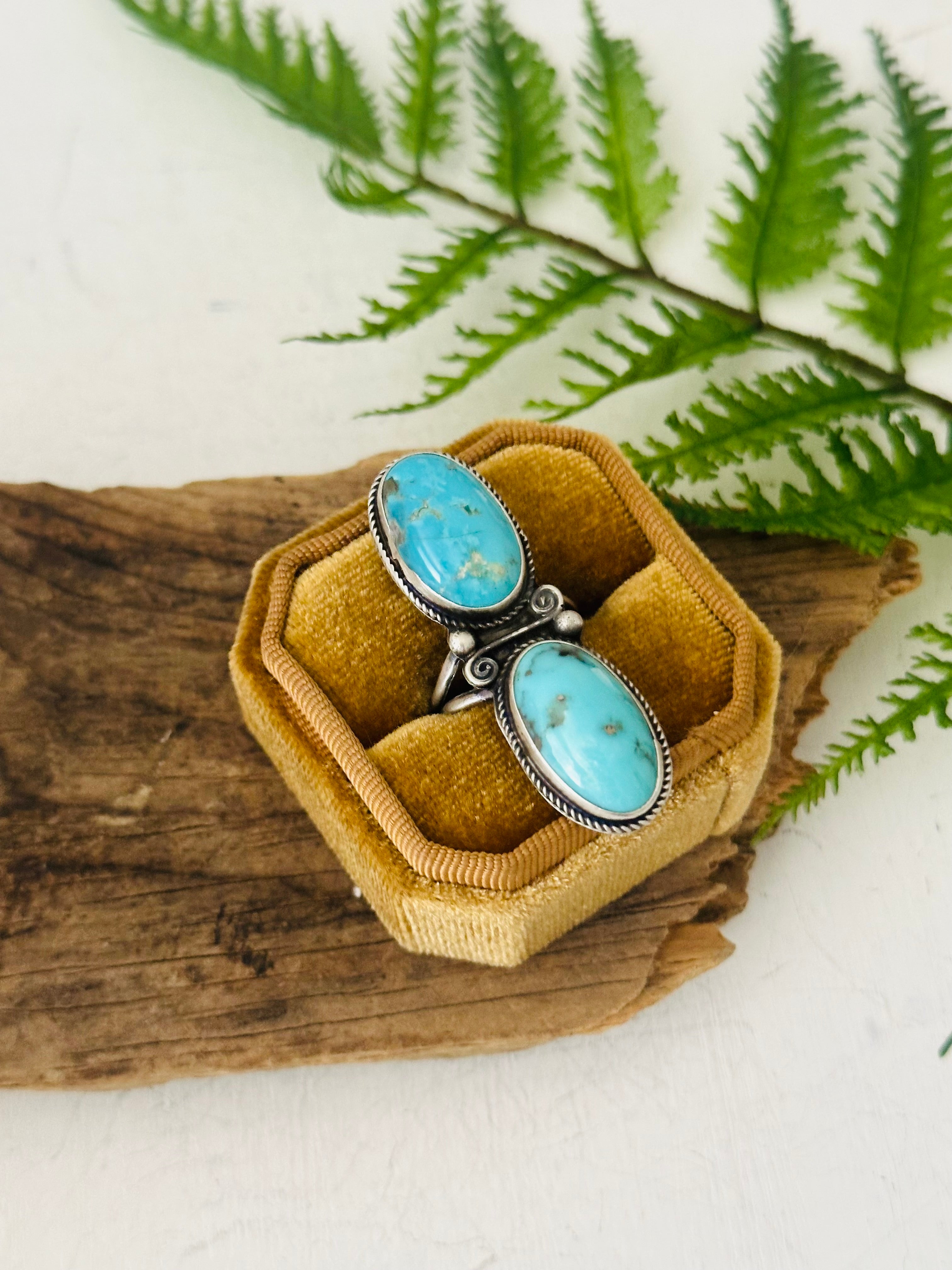 Navajo Made Kingman Turquoise & Sterling Silver Ring Size 7.25