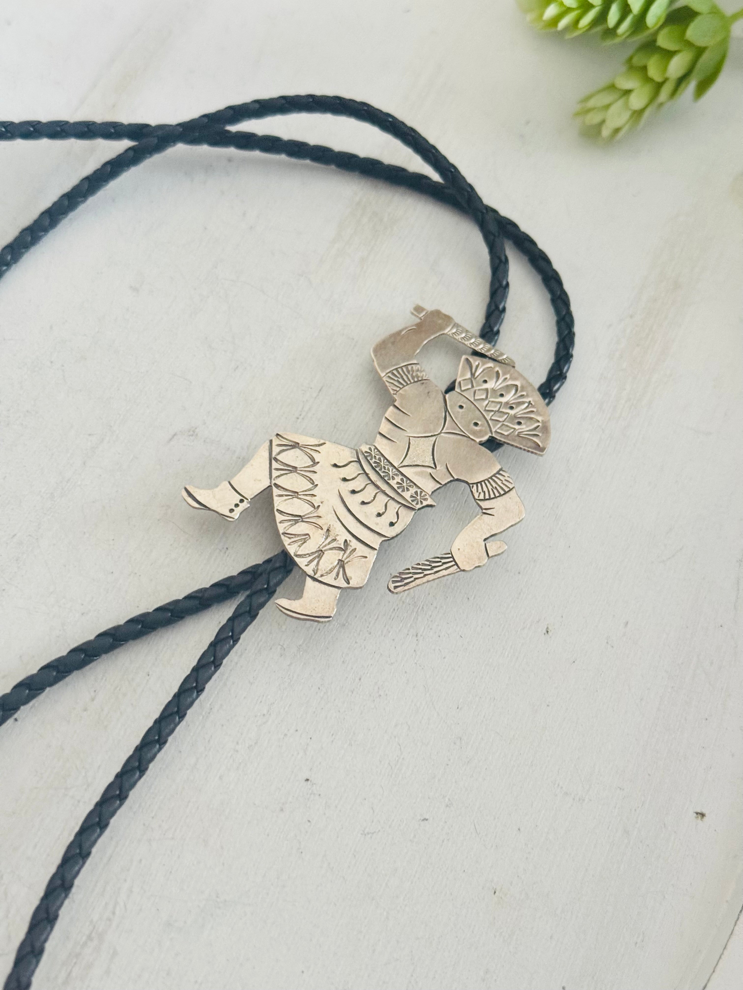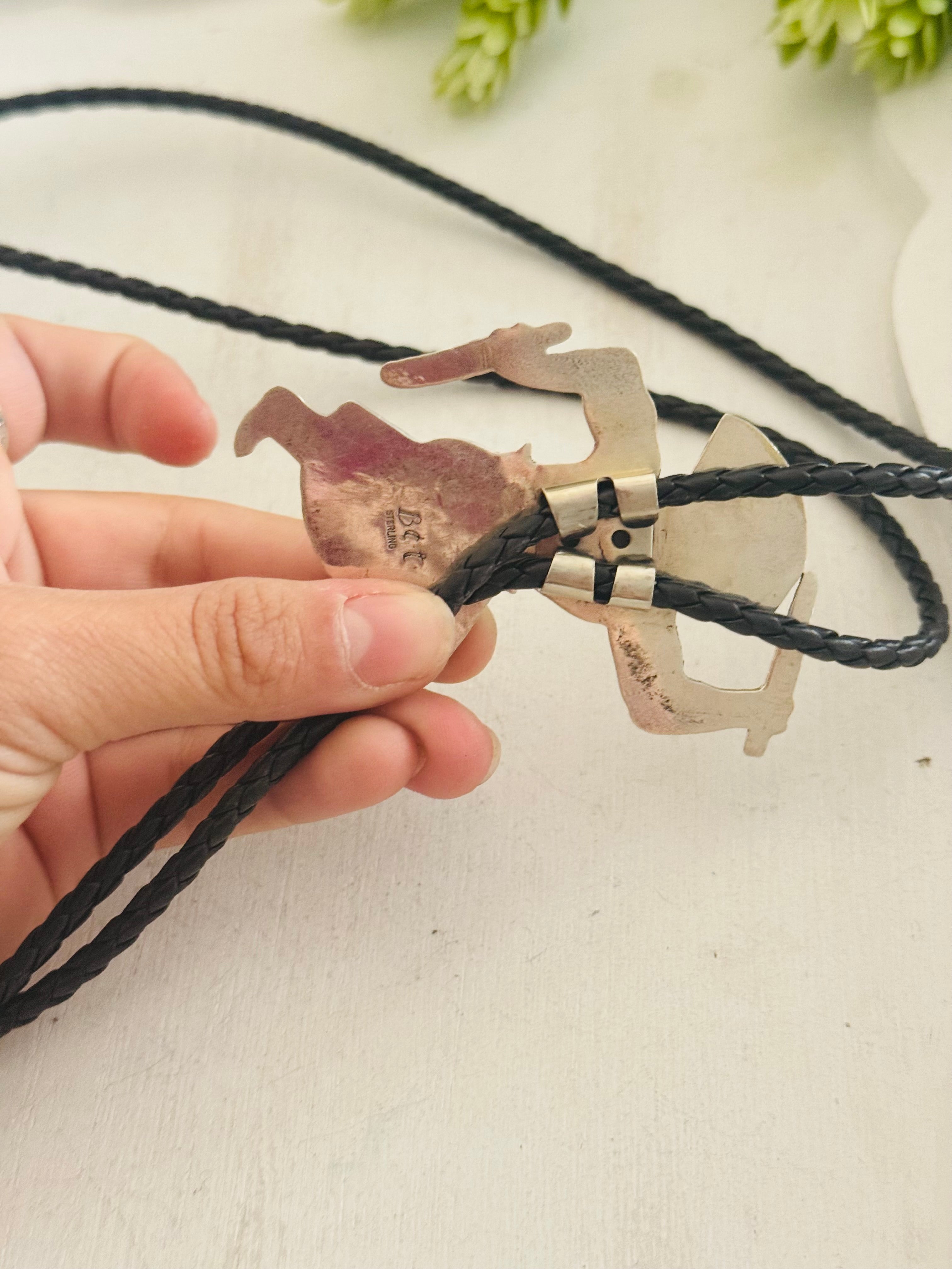 Navajo Made Sterling Silver Bolo Tie. It measures 39 inches long while the setting measures 3 inches long and 2 1/4 inches wide.