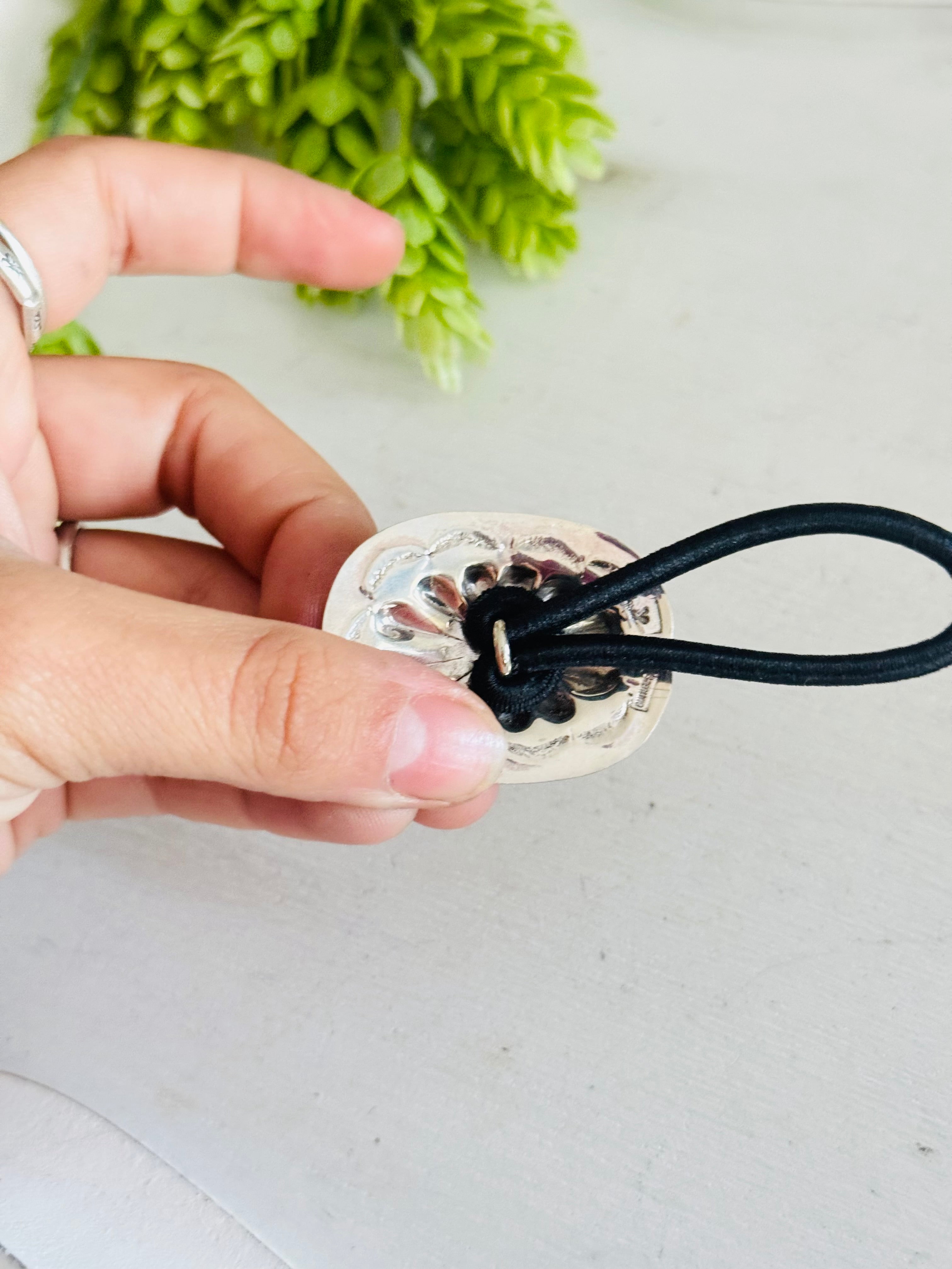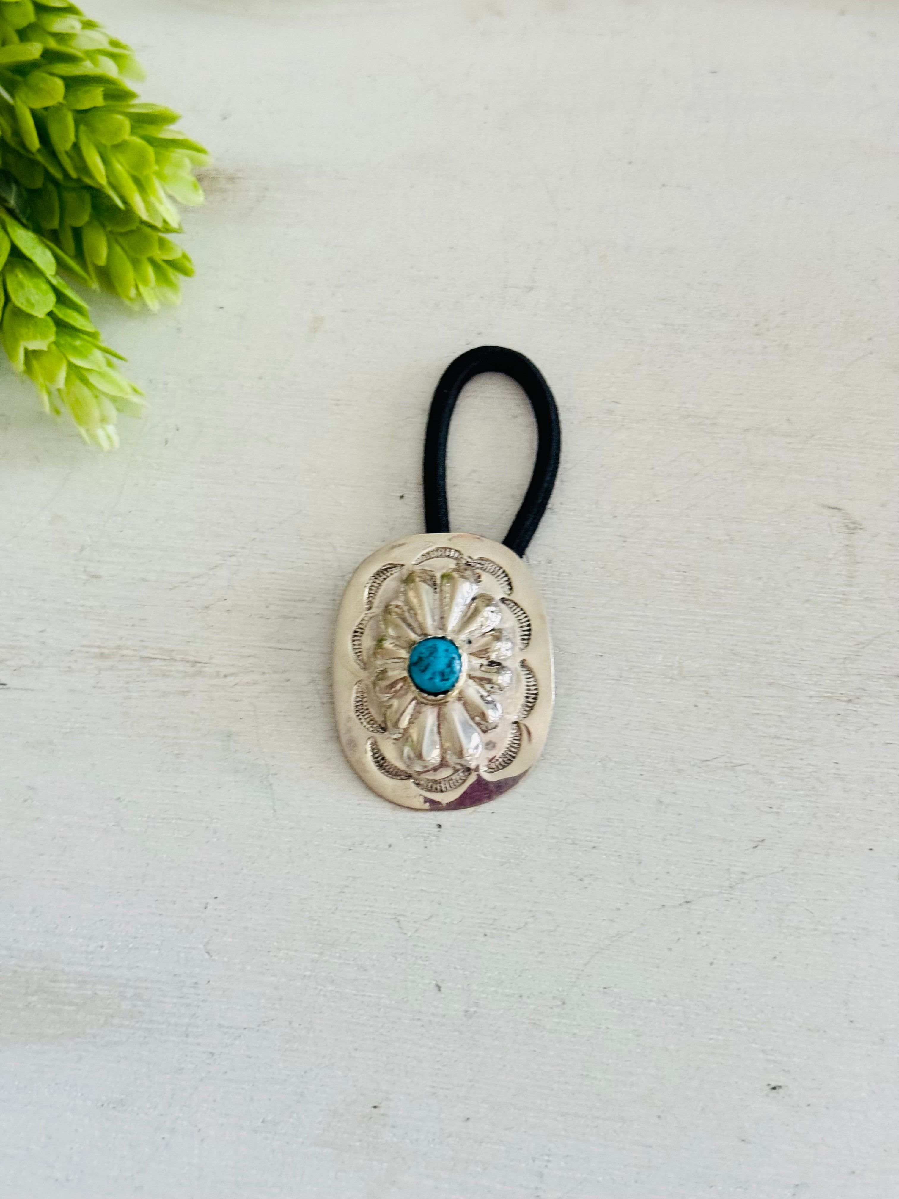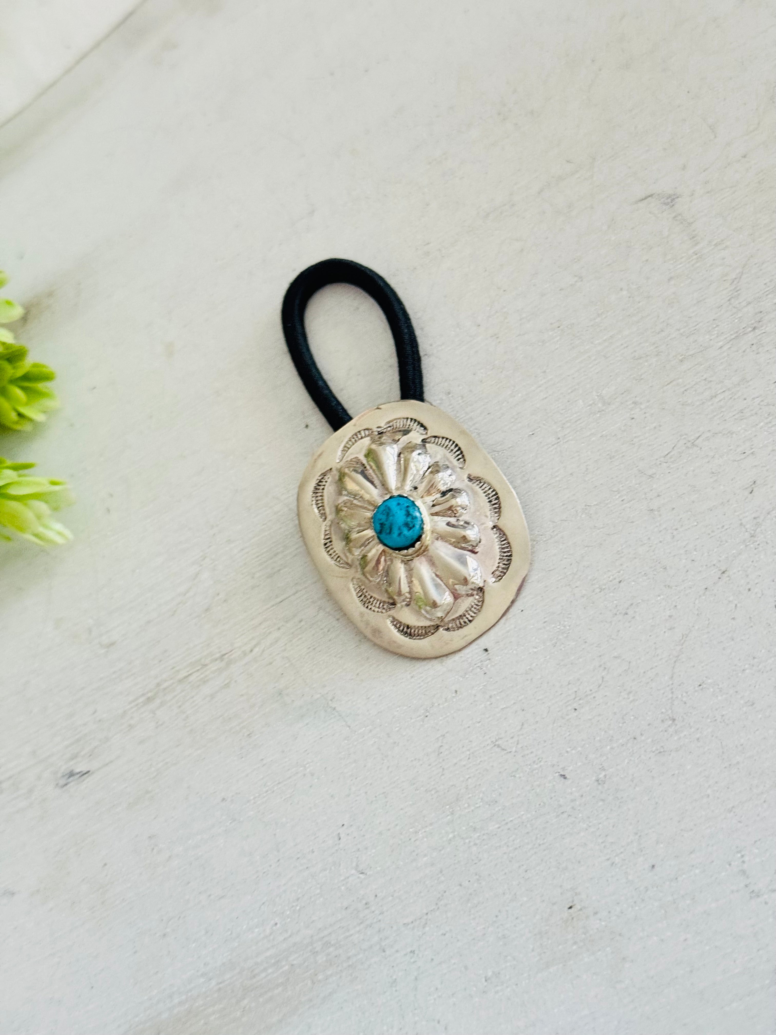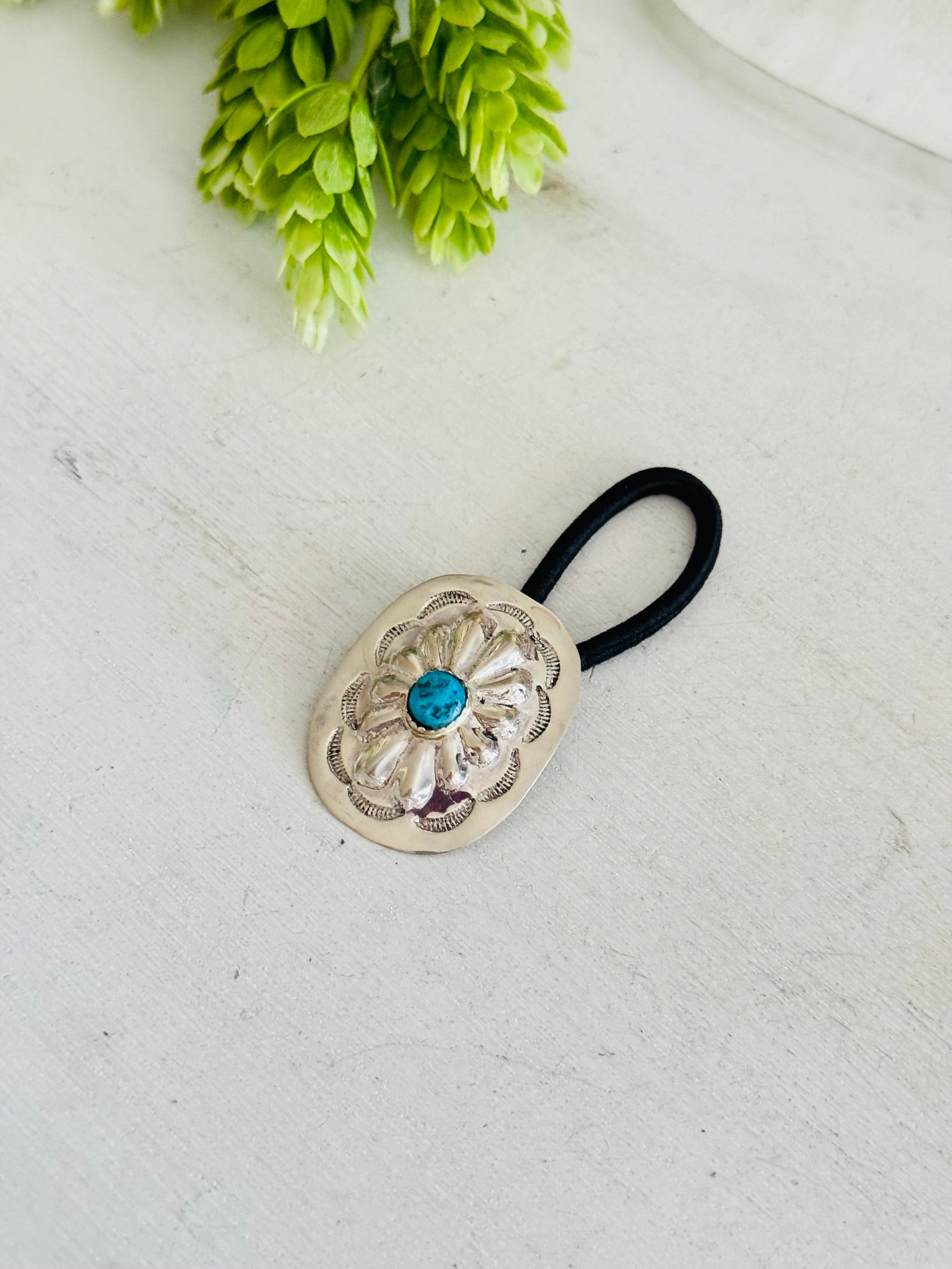 Navajo Made Kingman Turquoise & Sterling Silver Concho Ponytail Holder