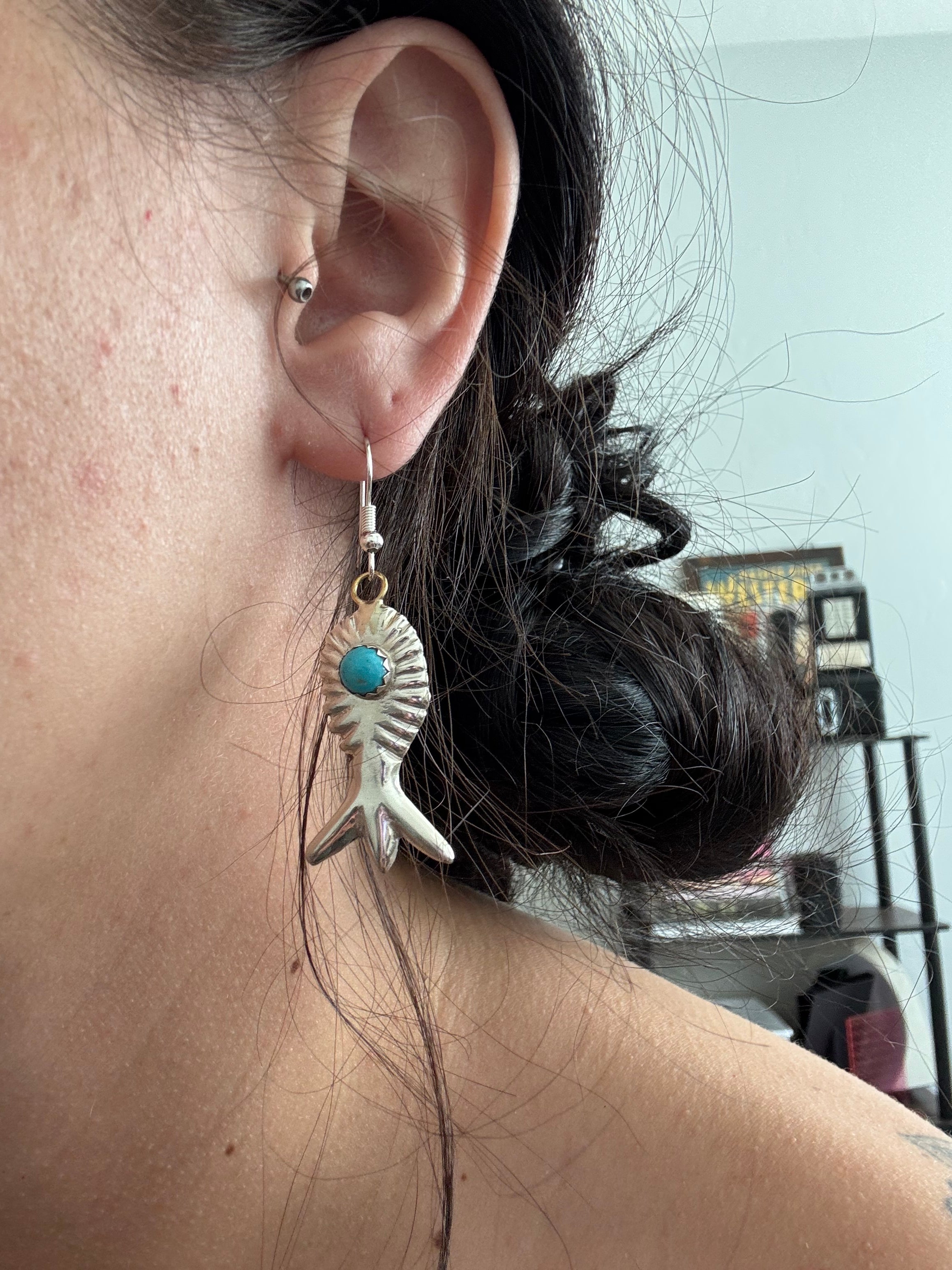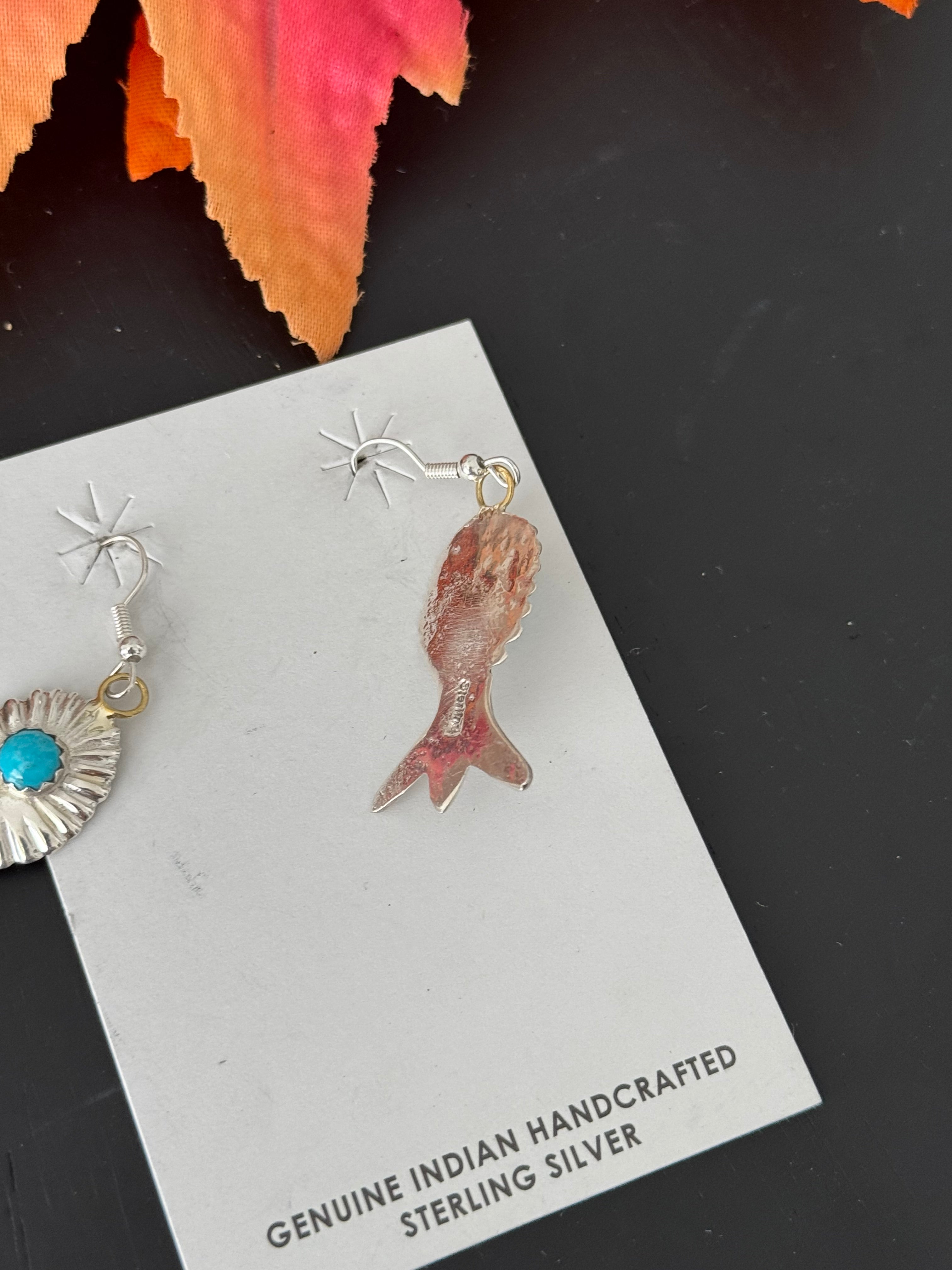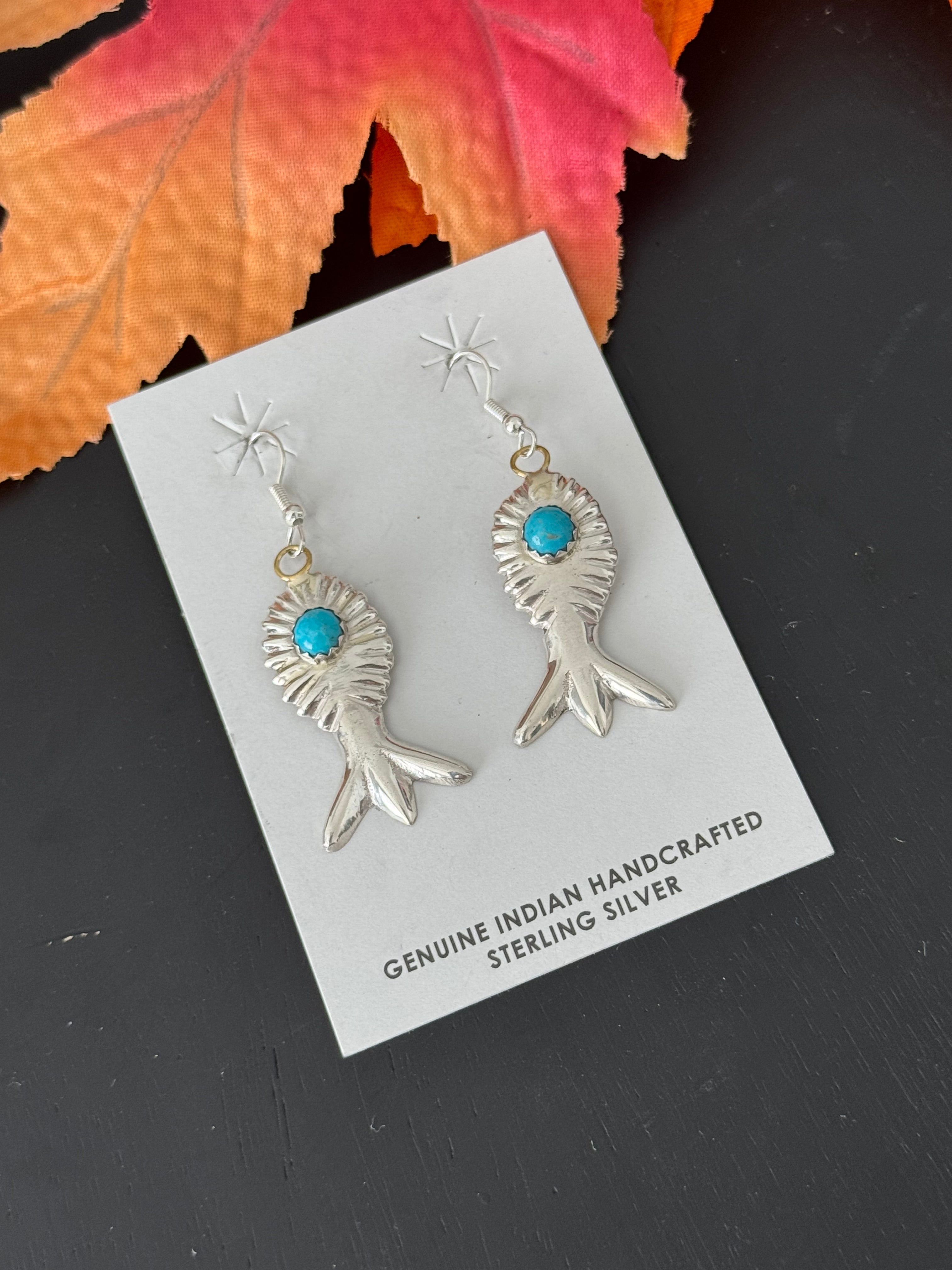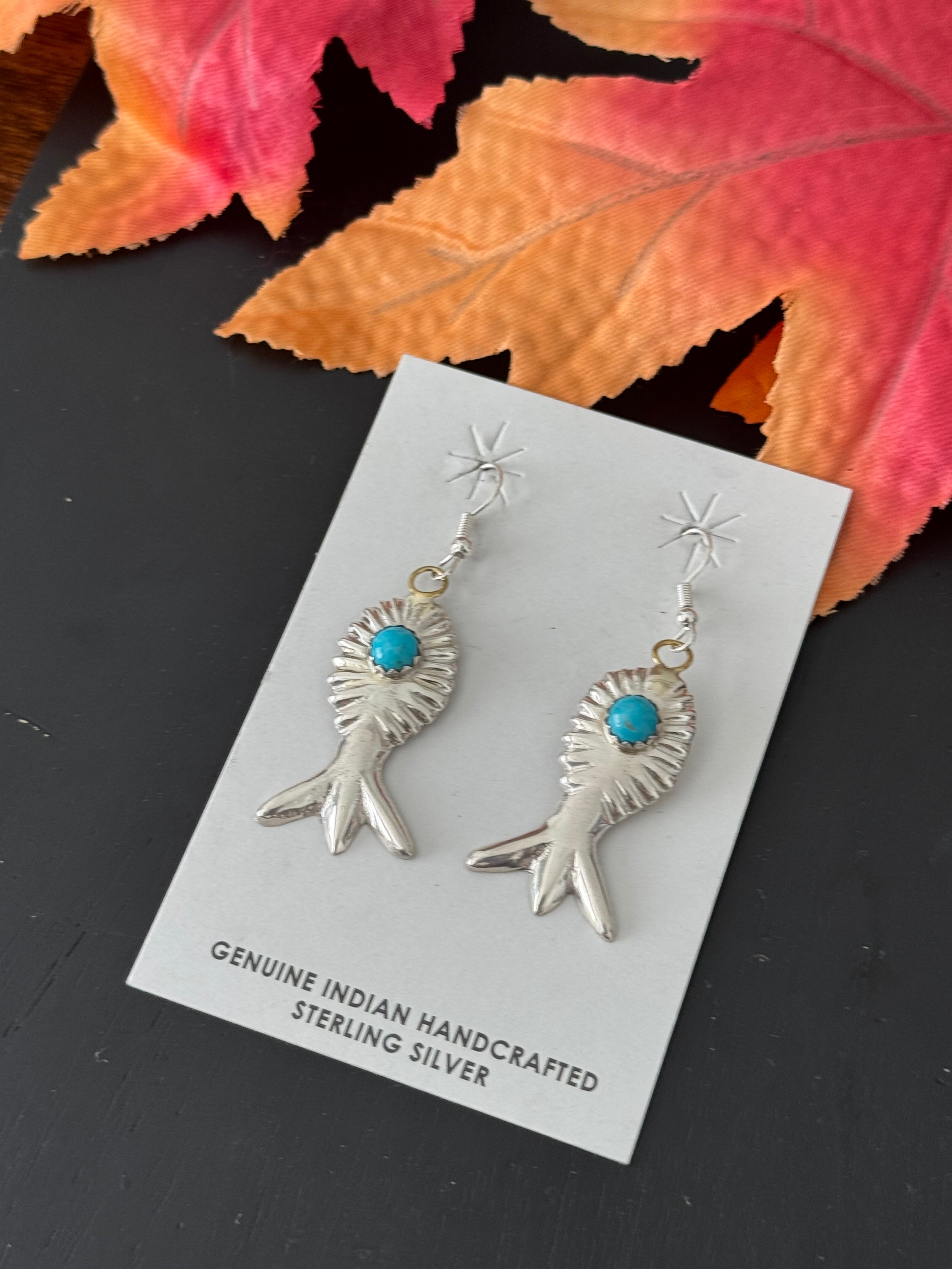 Navajo Made Kingman Turquoise & Sterling Silver Dangle Earrings