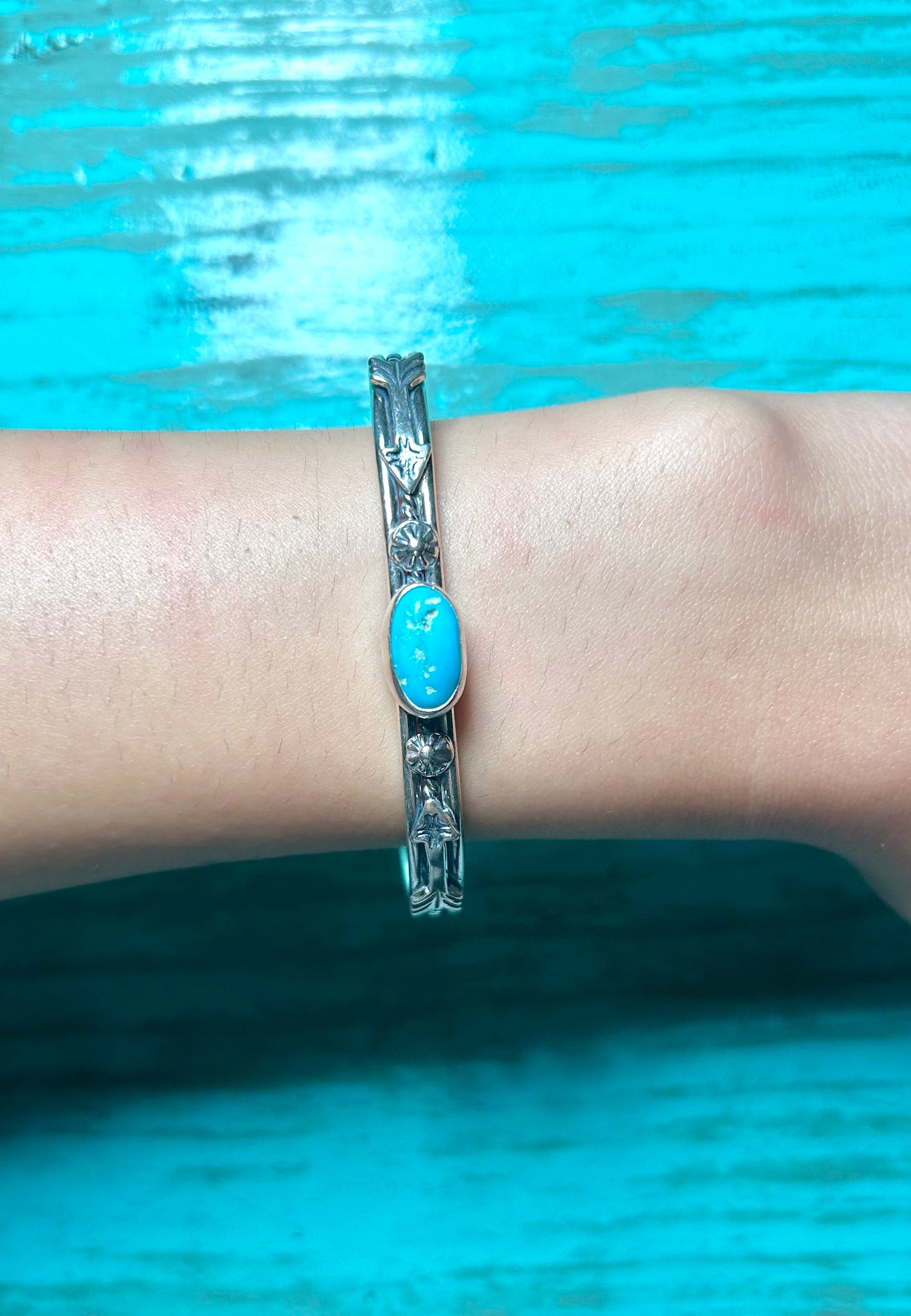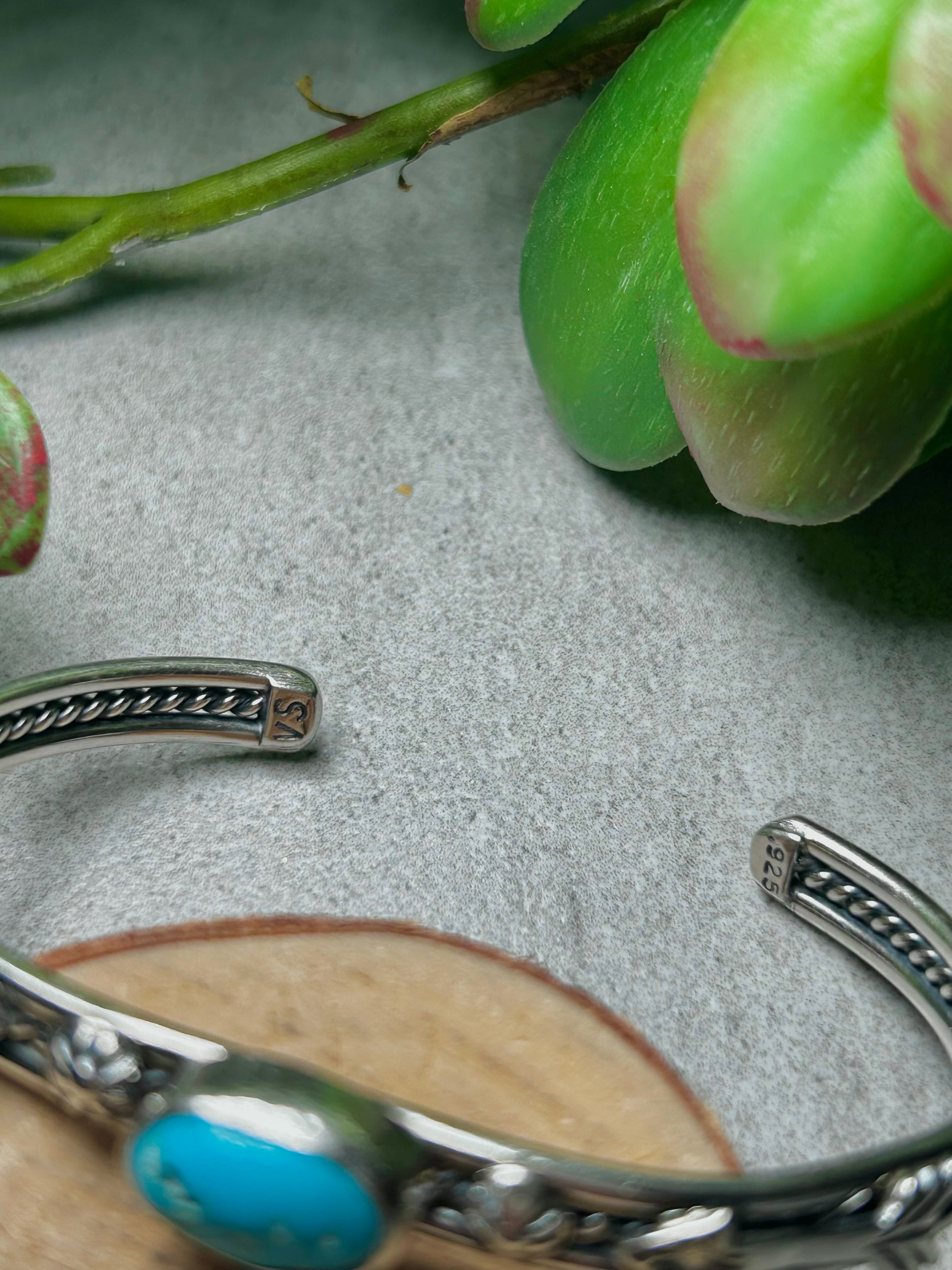 Navajo Made Kingman Turquoise & Sterling Silver Cuff Bracelet