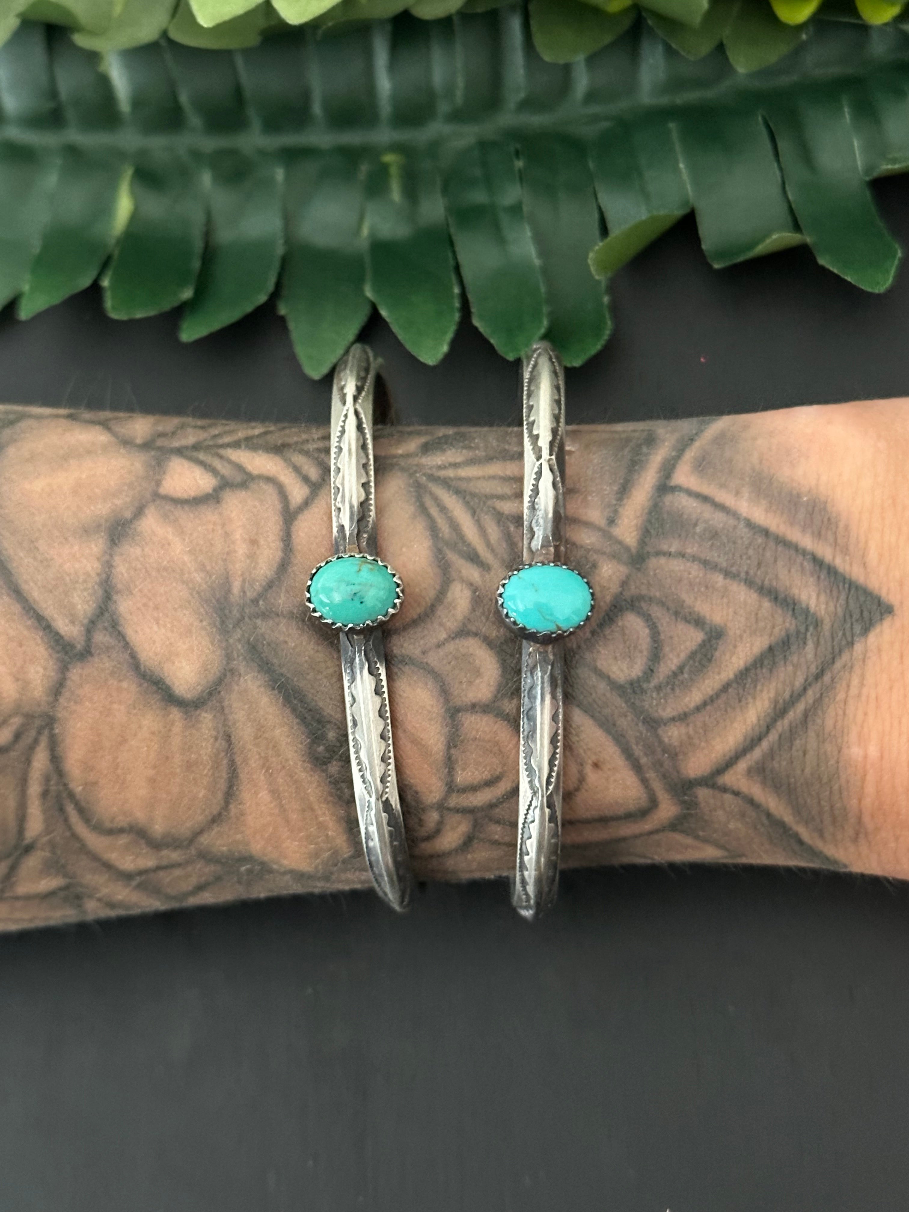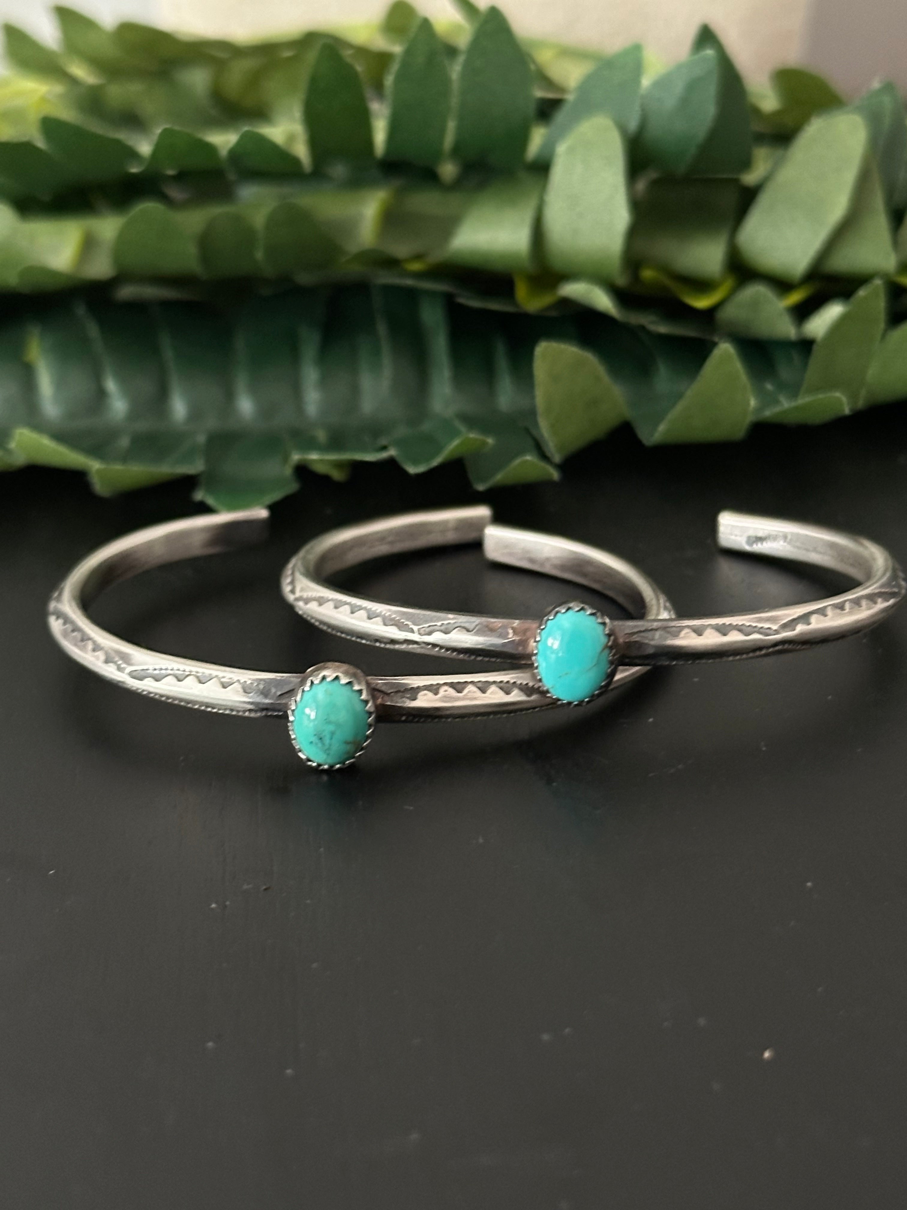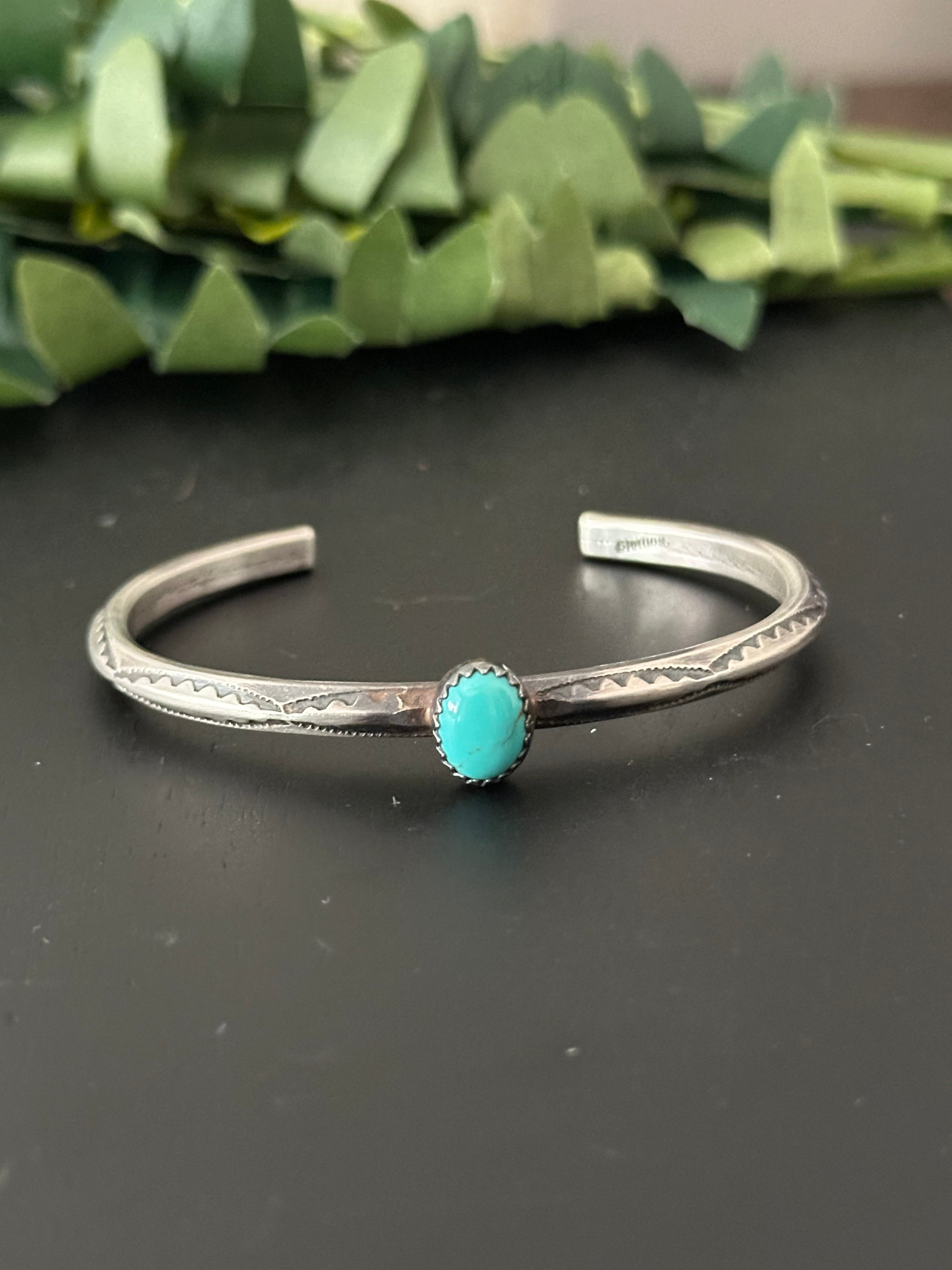 Navajo Made Kingman Turquoise & Sterling Silver Cuff Bracelet