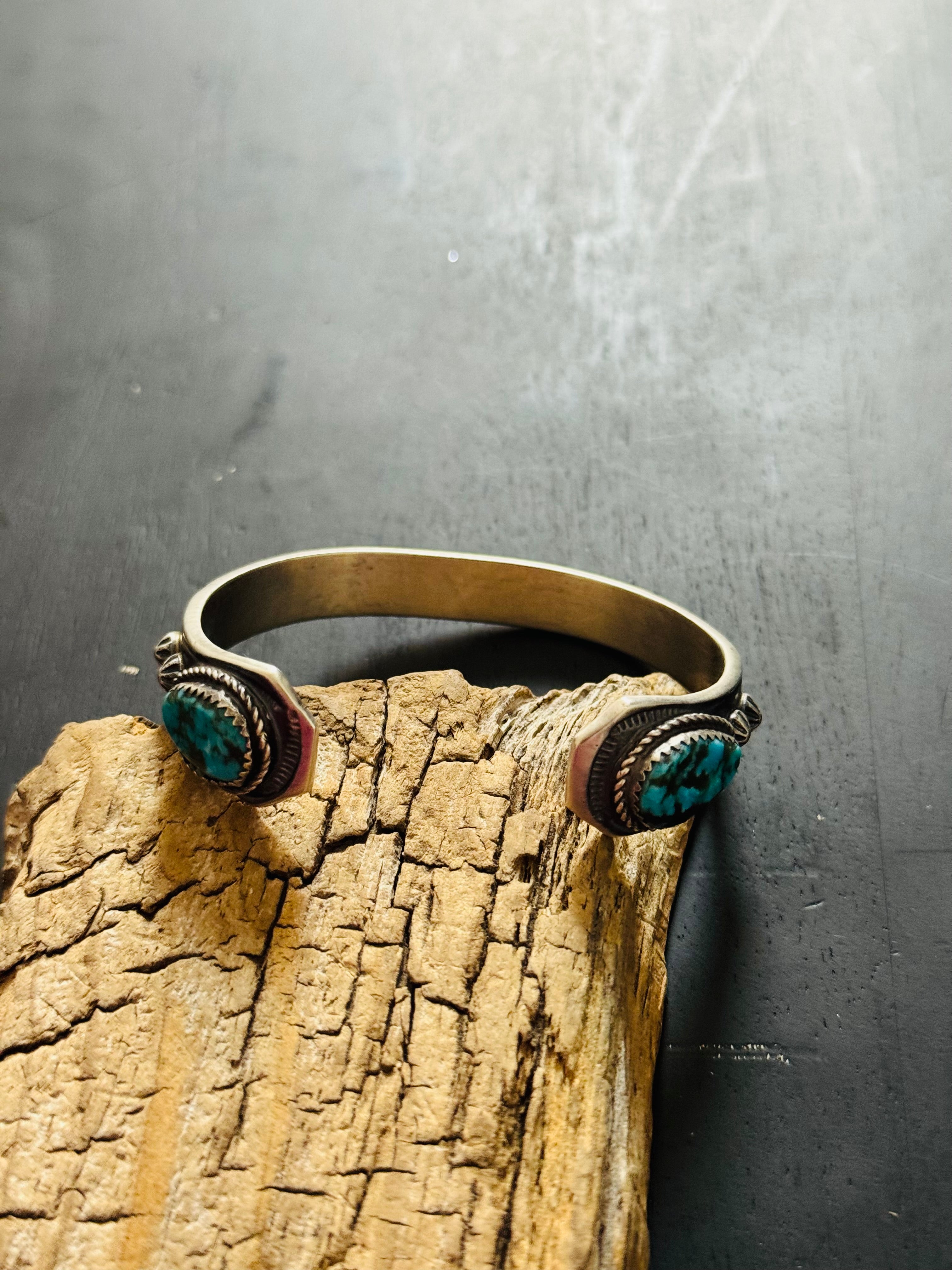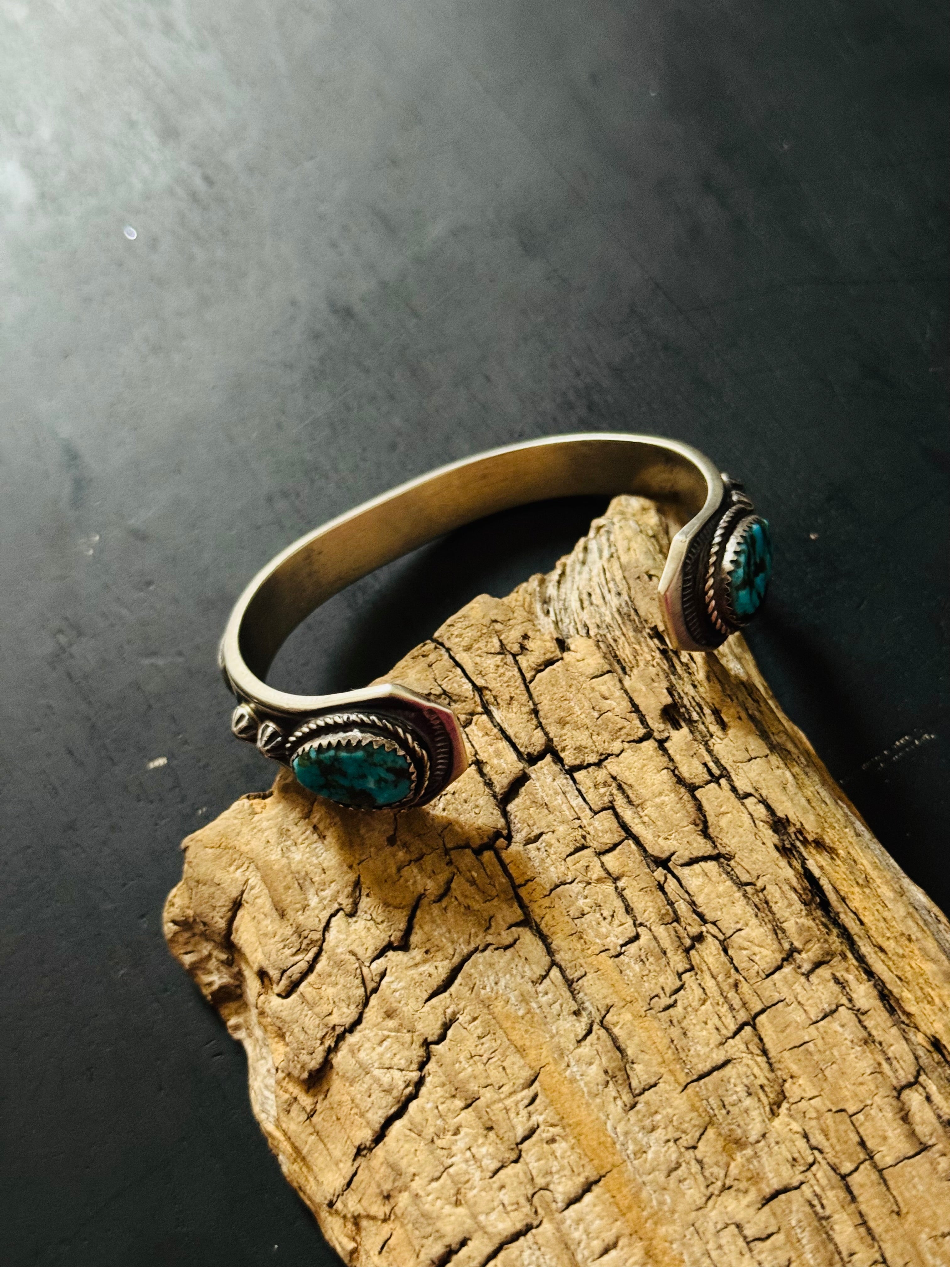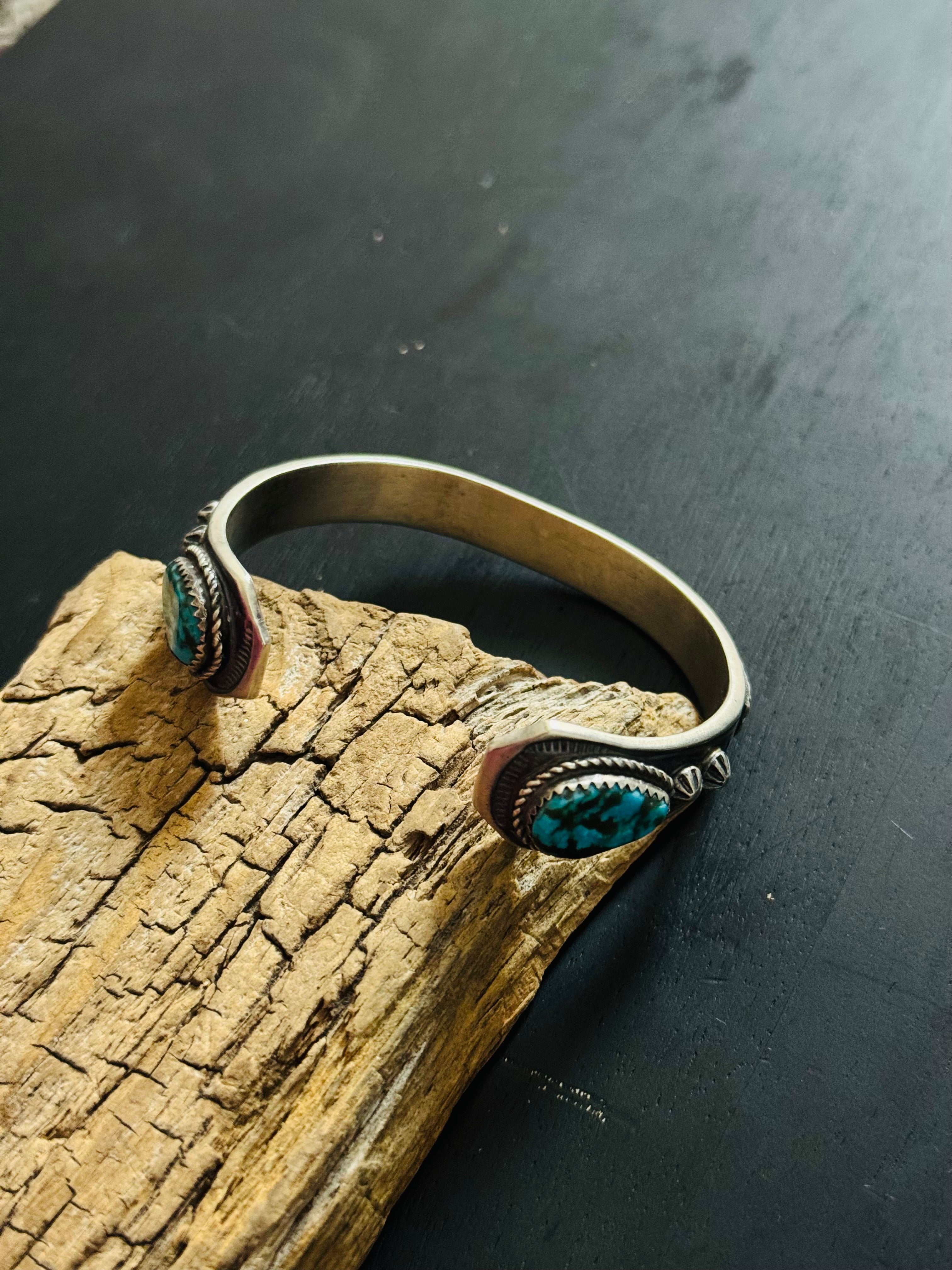 Navajo Made Kingman Turquoise & Sterling Silver Cuff Bracelet