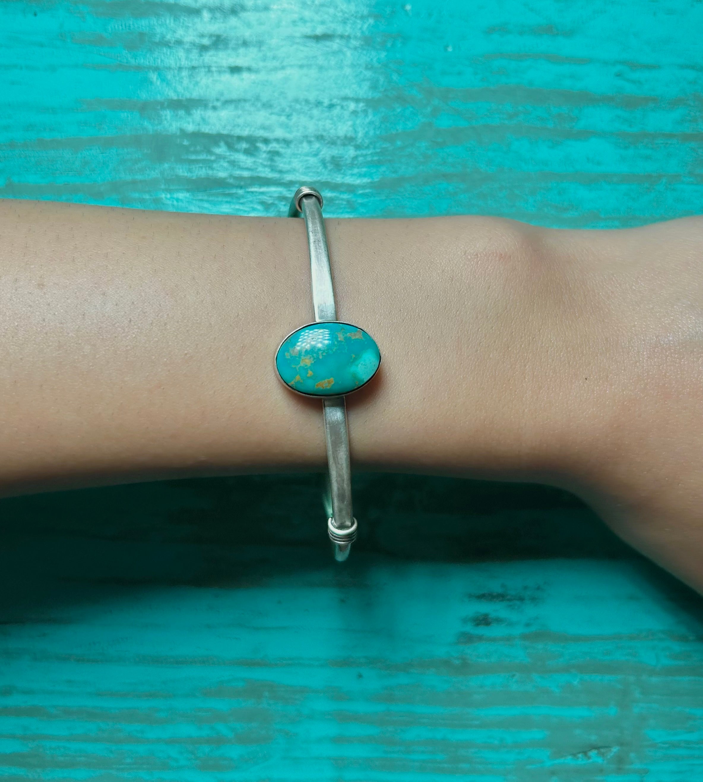 Navajo Made Kingman Turquoise & Sterling Silver Cuff Bracelet