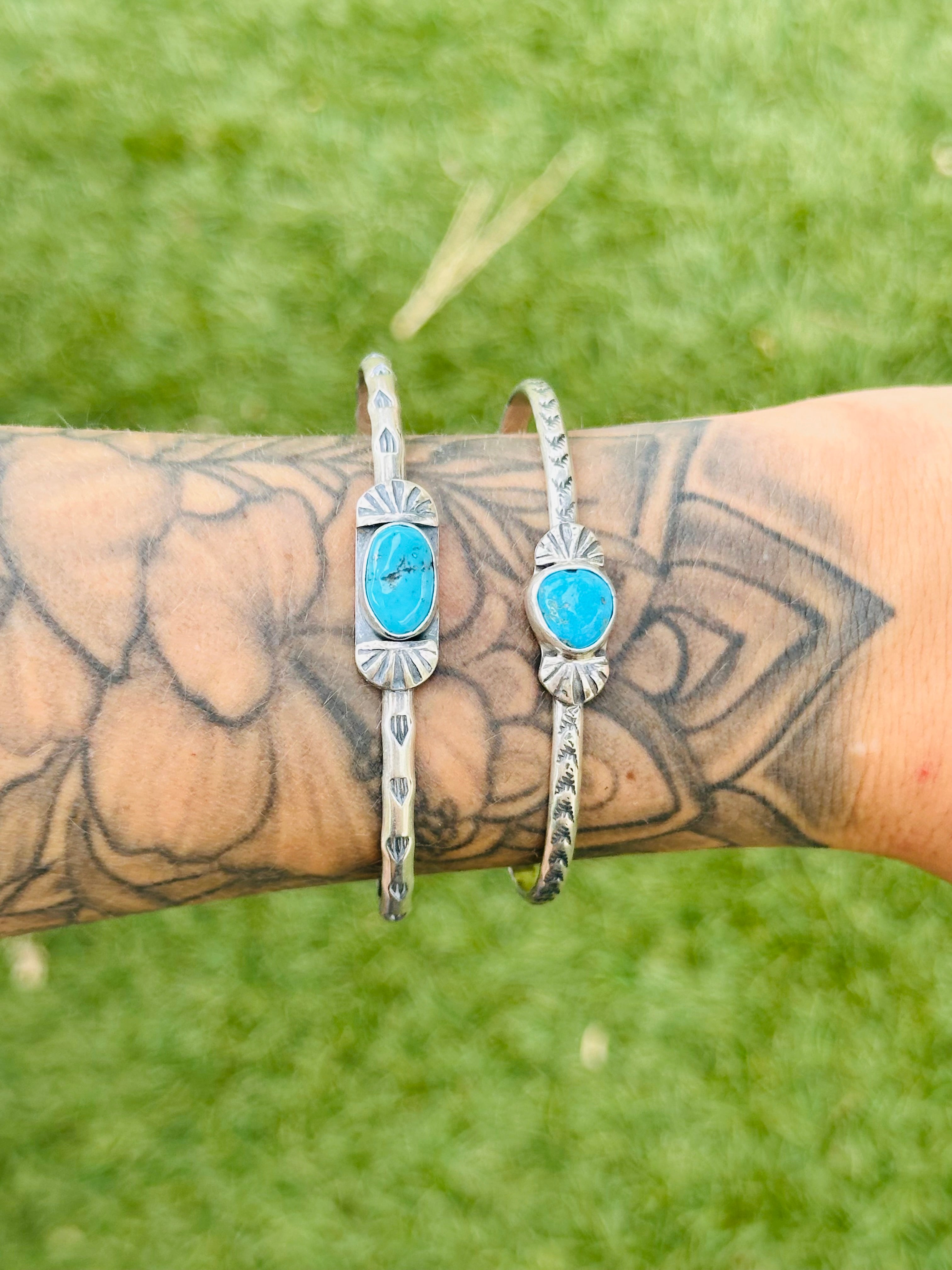 Navajo Made Kingman Turquoise & Sterling Silver Cuff Bracelet