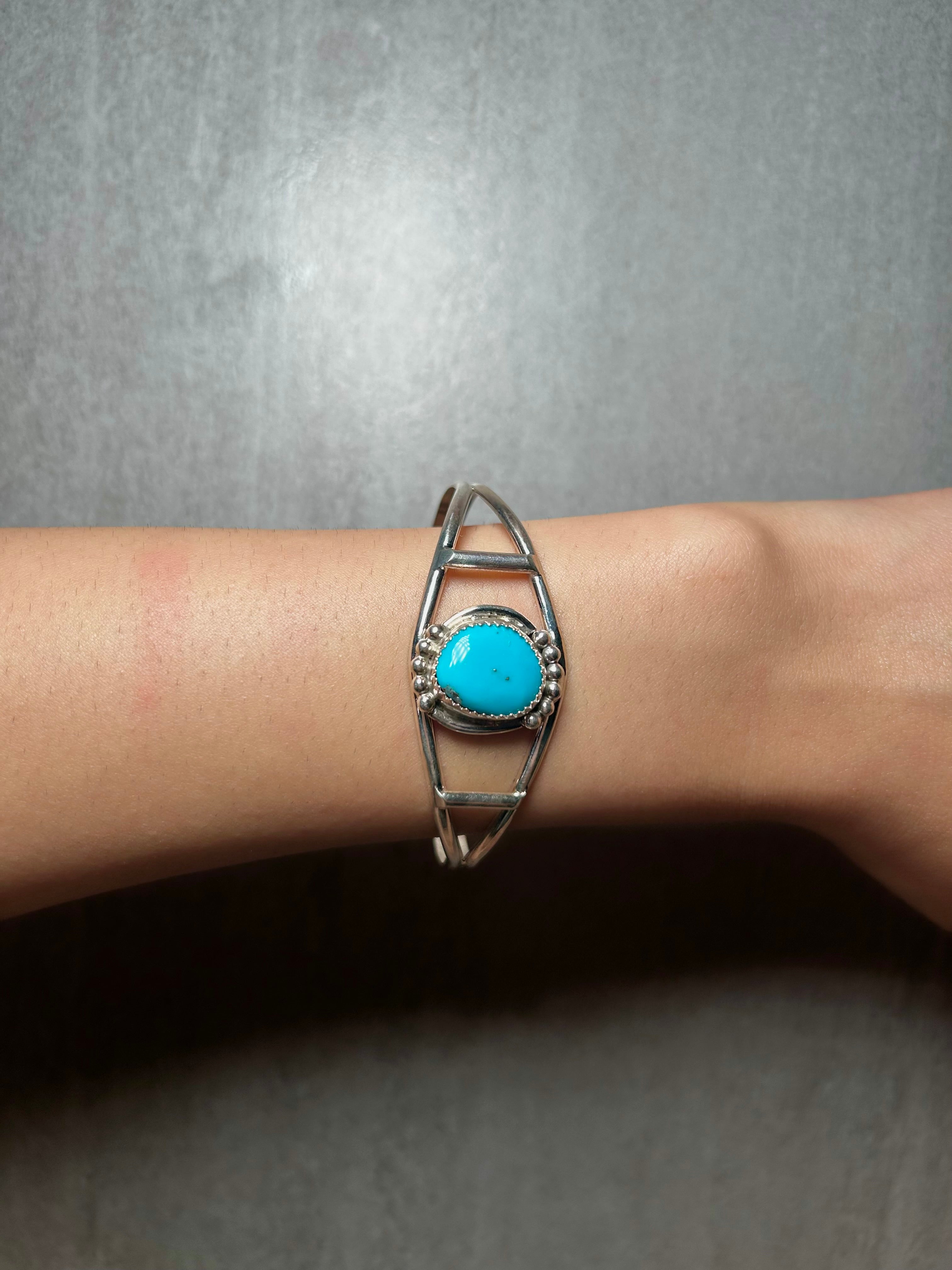 Navajo Made Kingman Turquoise & Sterling Silver Cuff Bracelet