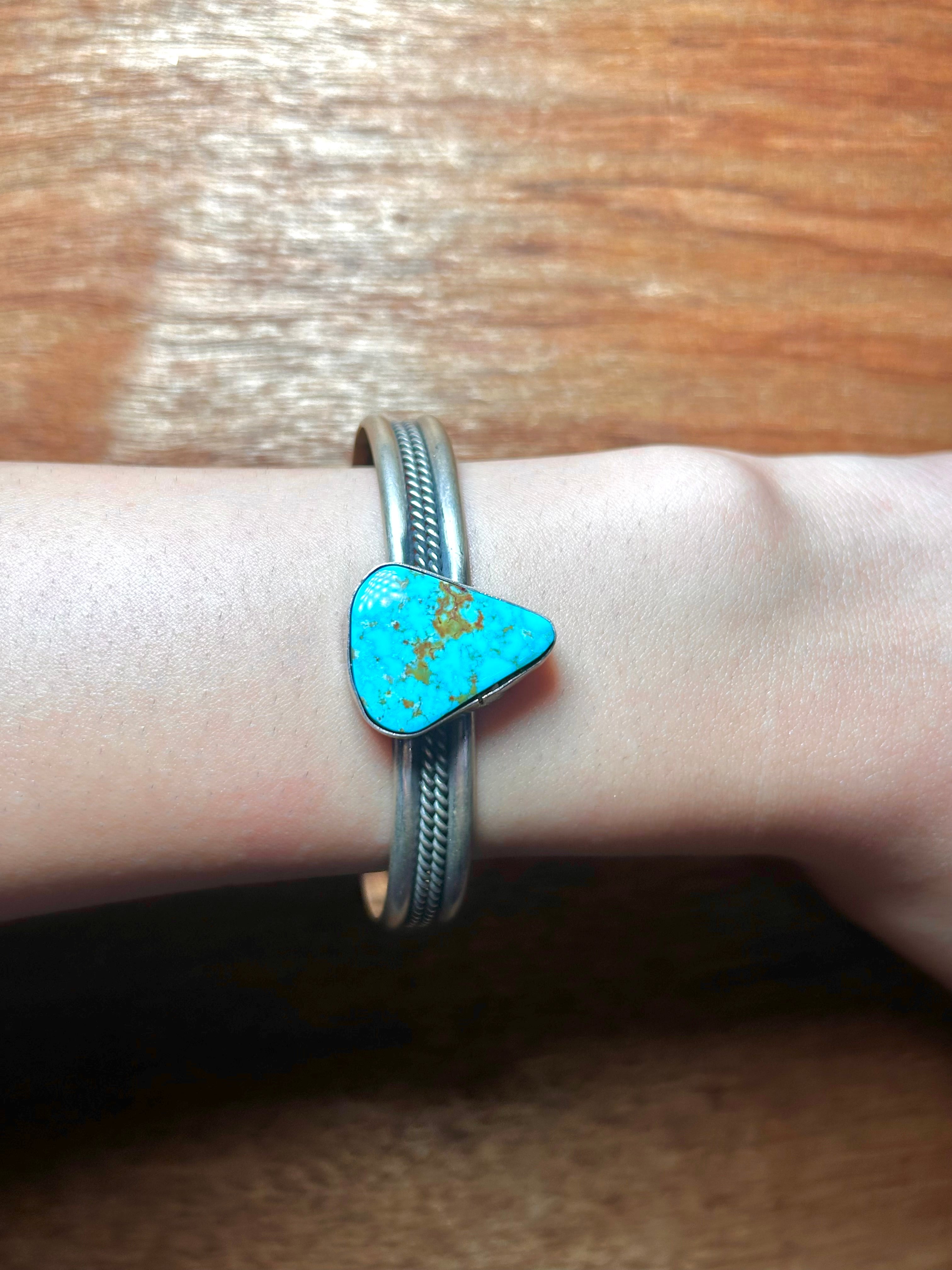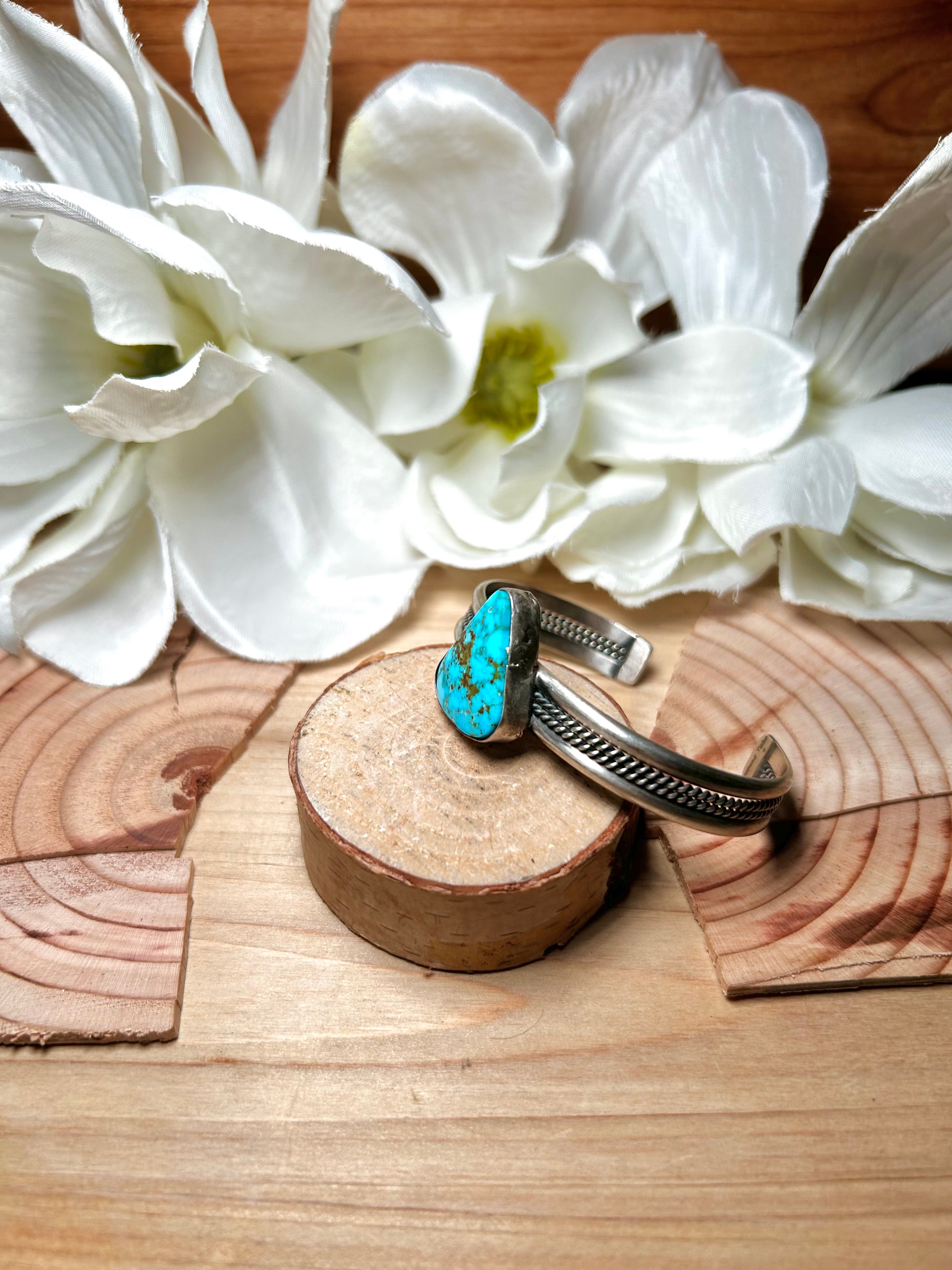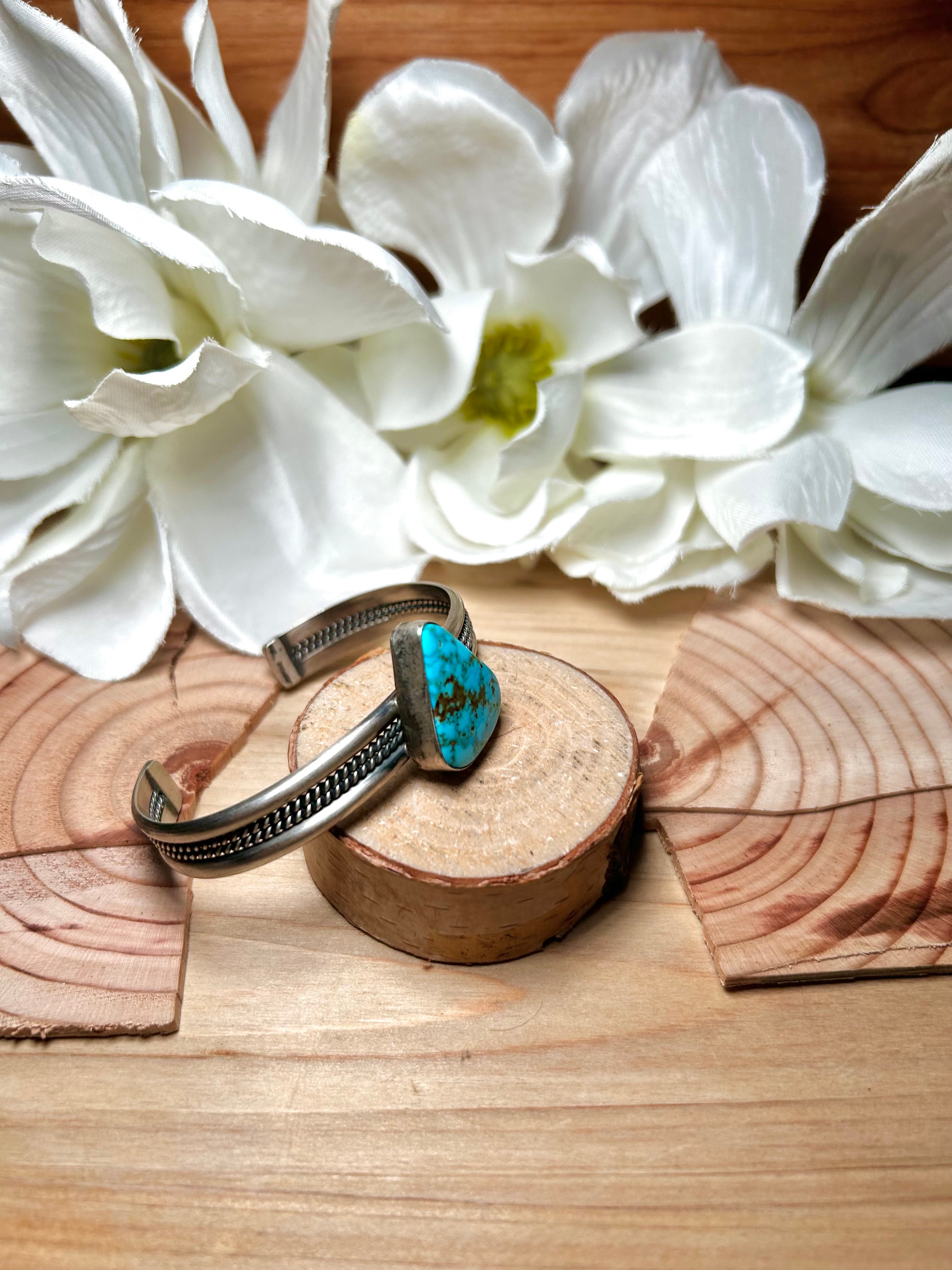 Navajo Made Kingman Turquoise & Sterling Silver Cuff Bracelet
