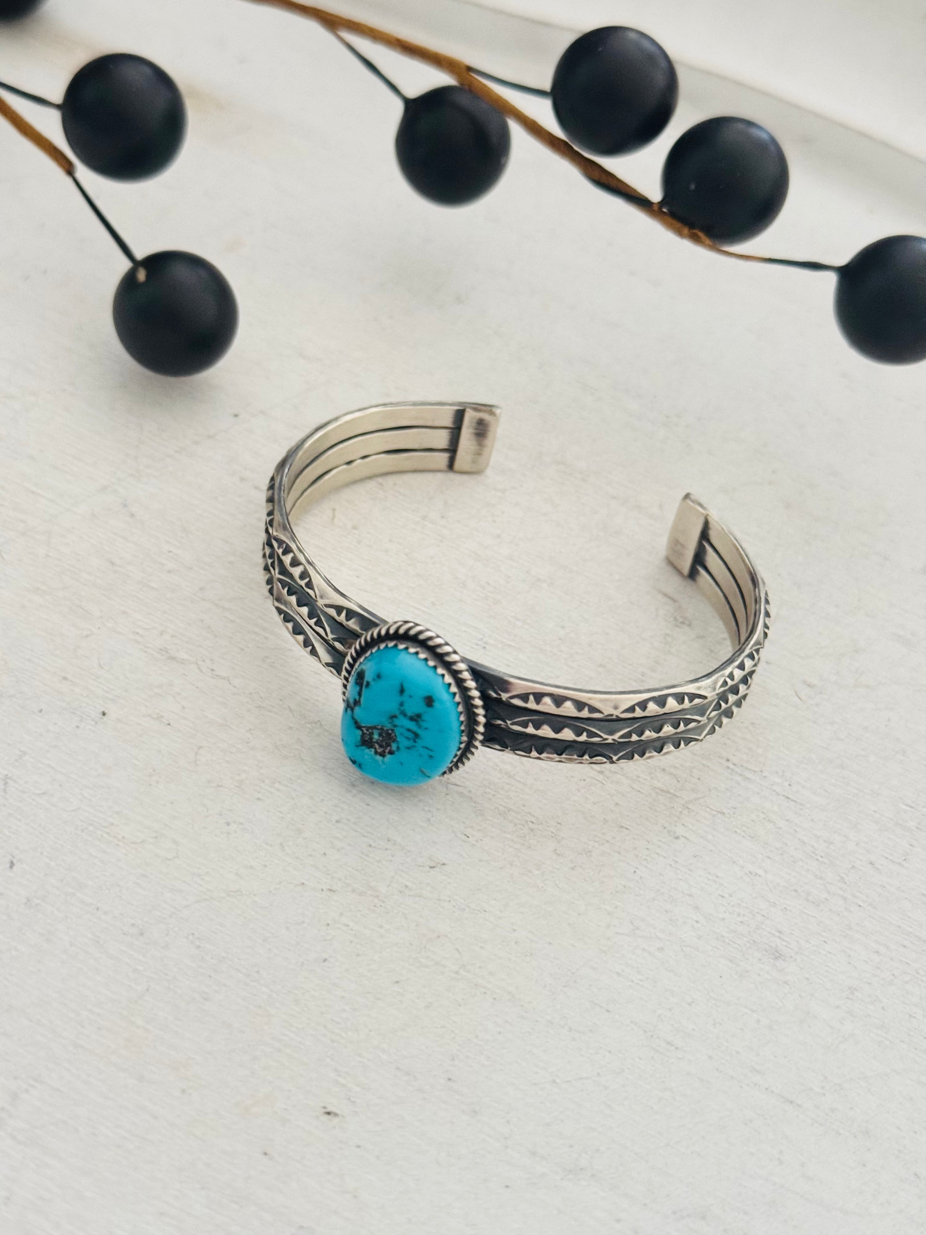 Navajo Made Kingman Turquoise & Sterling Silver Cuff Bracelet