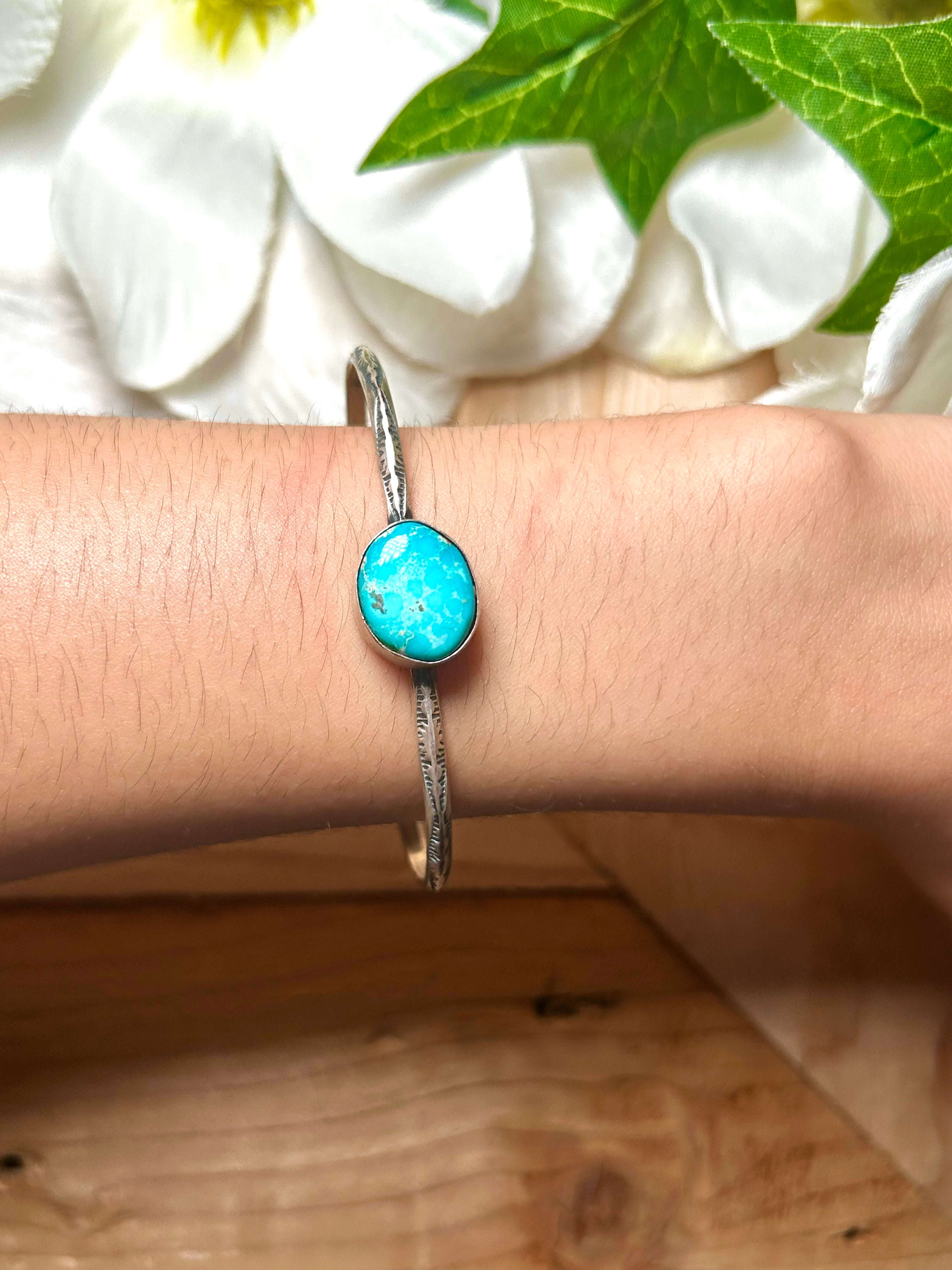 Navajo Made Sonoran Mountain Turquoise & Sterling Silver Cuff Bracelet
