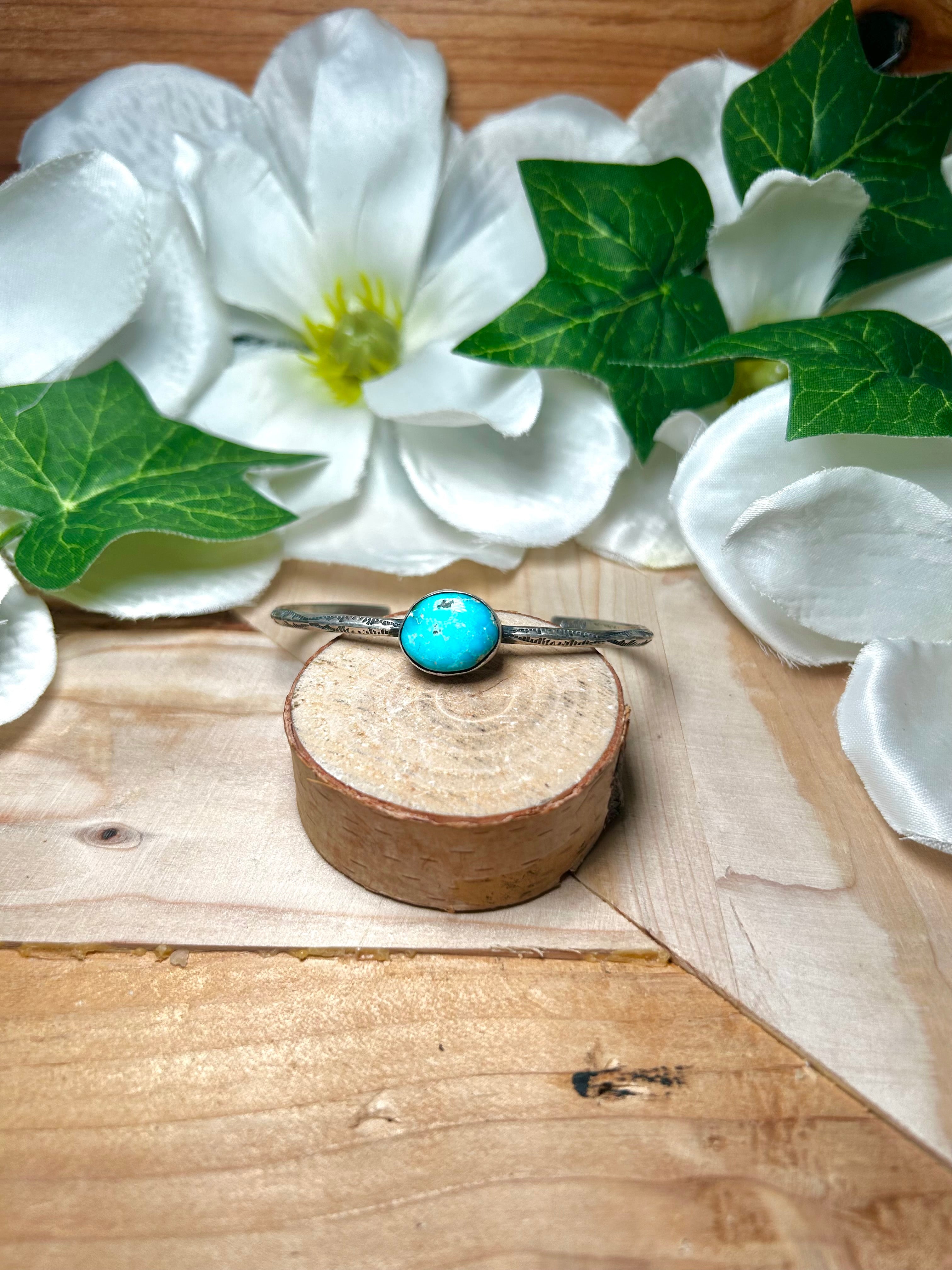 Navajo Made Sonoran Mountain Turquoise & Sterling Silver Cuff Bracelet. It measures 1/2 of an inch wide with an inside circumference of 5 3/8 inches and a gap of 1 1/8 inches. Signed by the artist and stamped sterling silver.