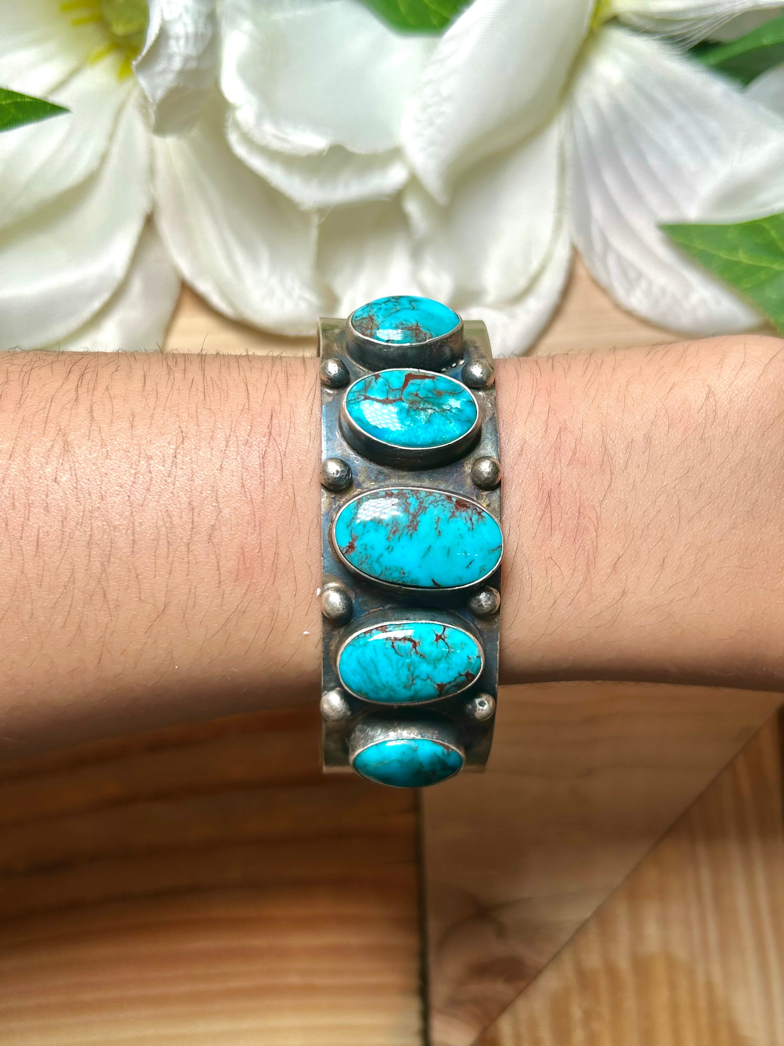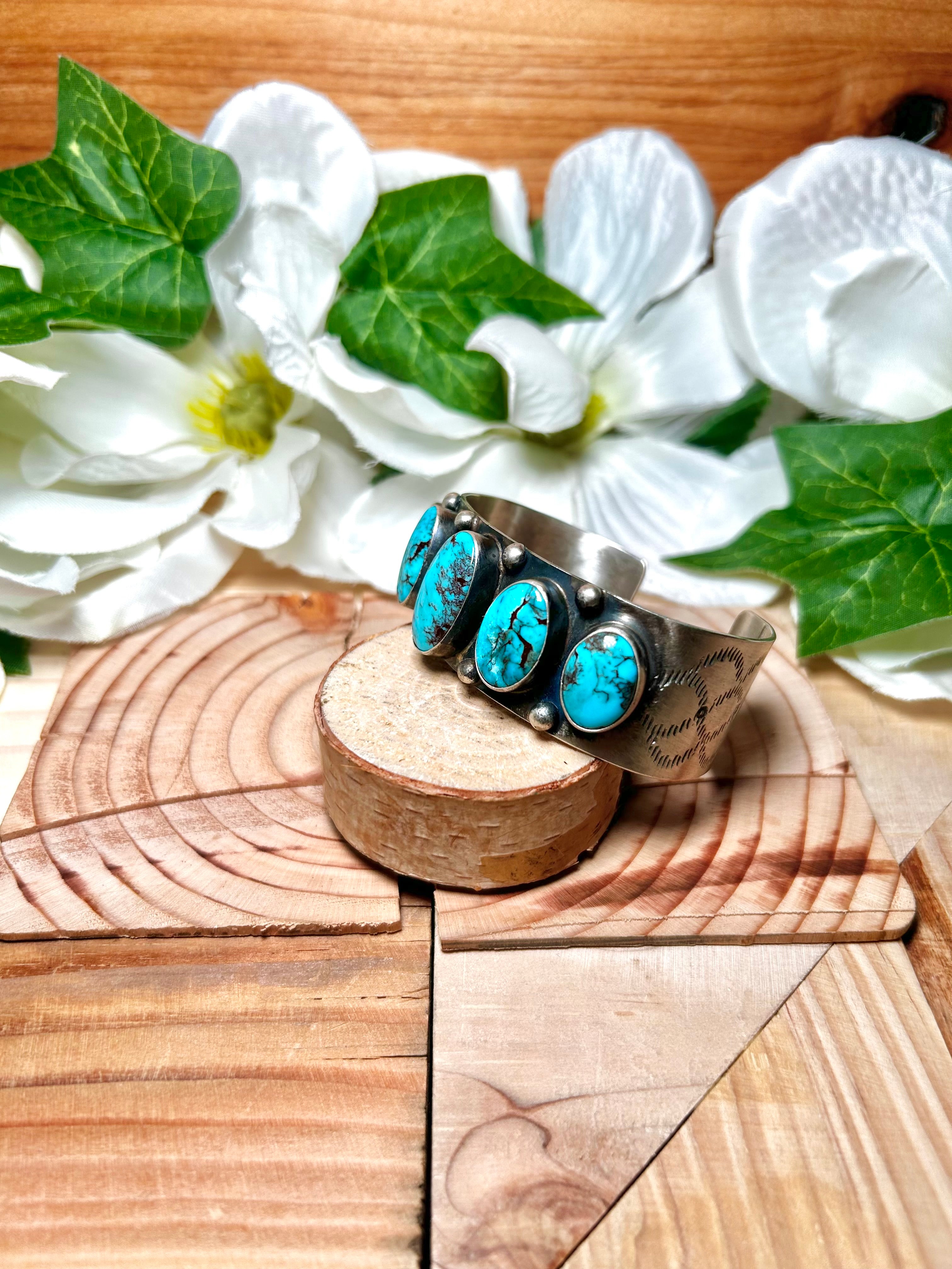Navajo Made Egyptian Turquoise & Sterling Silver Cuff Bracelet