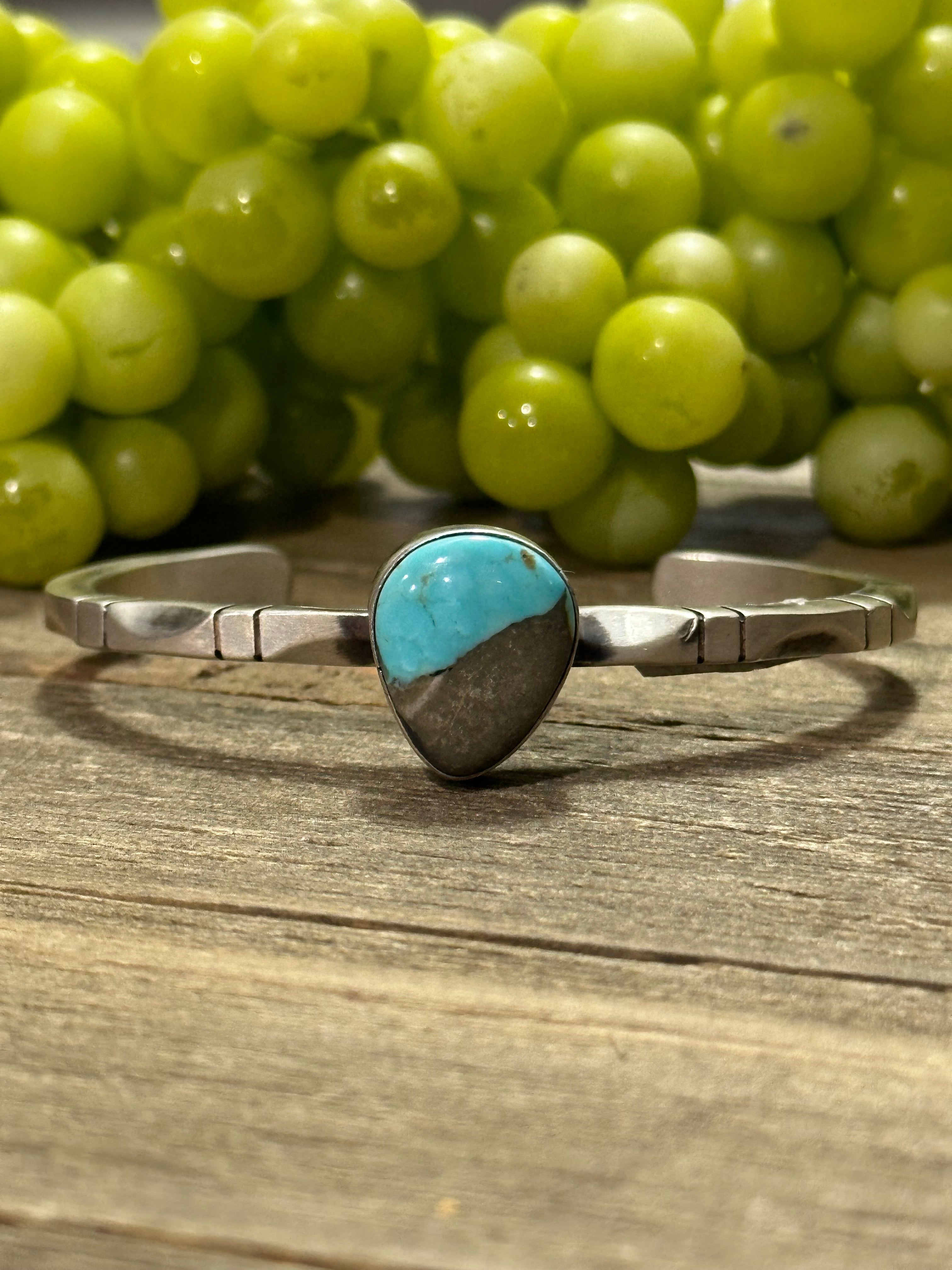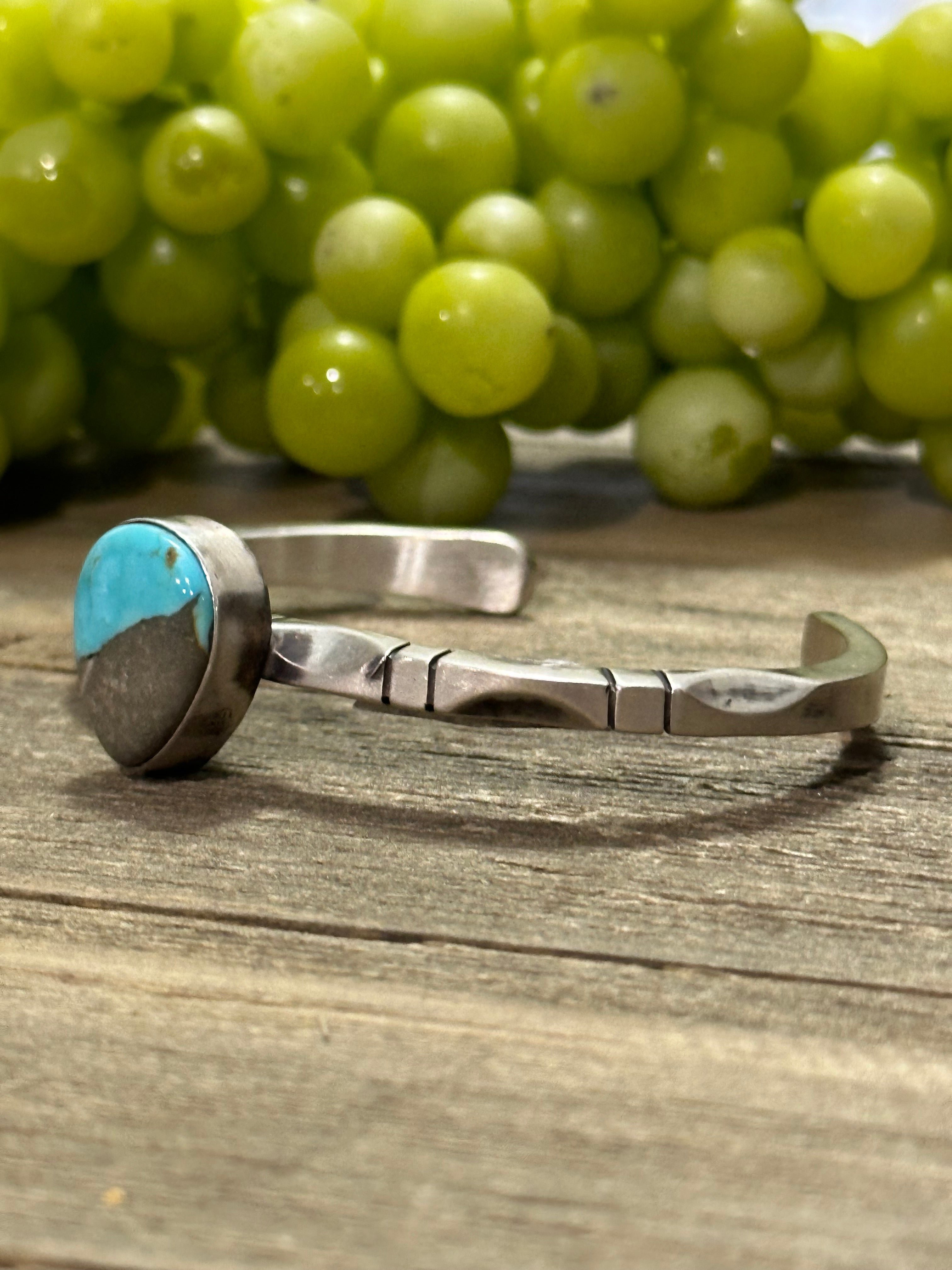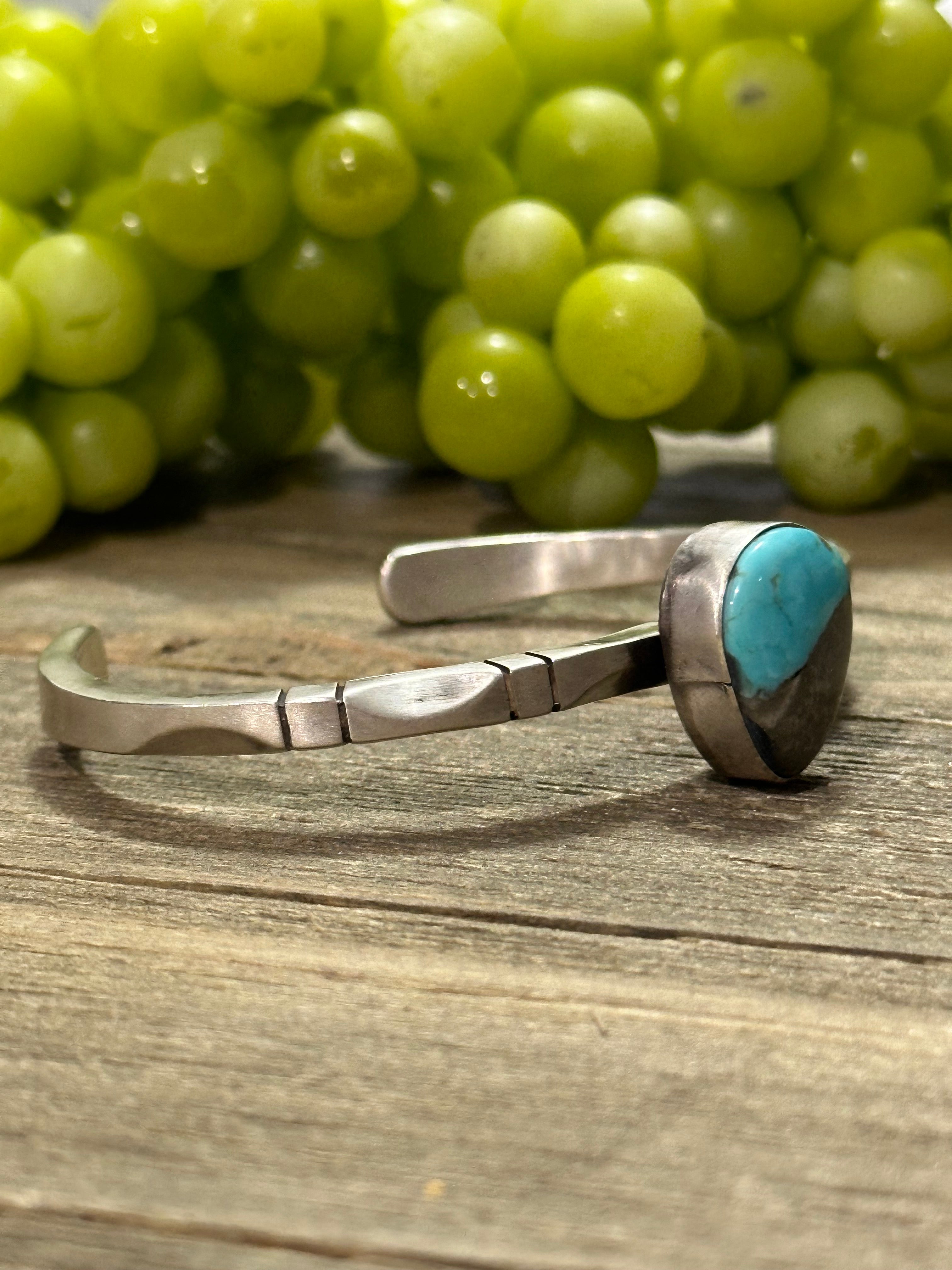 Navajo Made Kingman Turquoise & Sterling Silver Cuff Bracelet