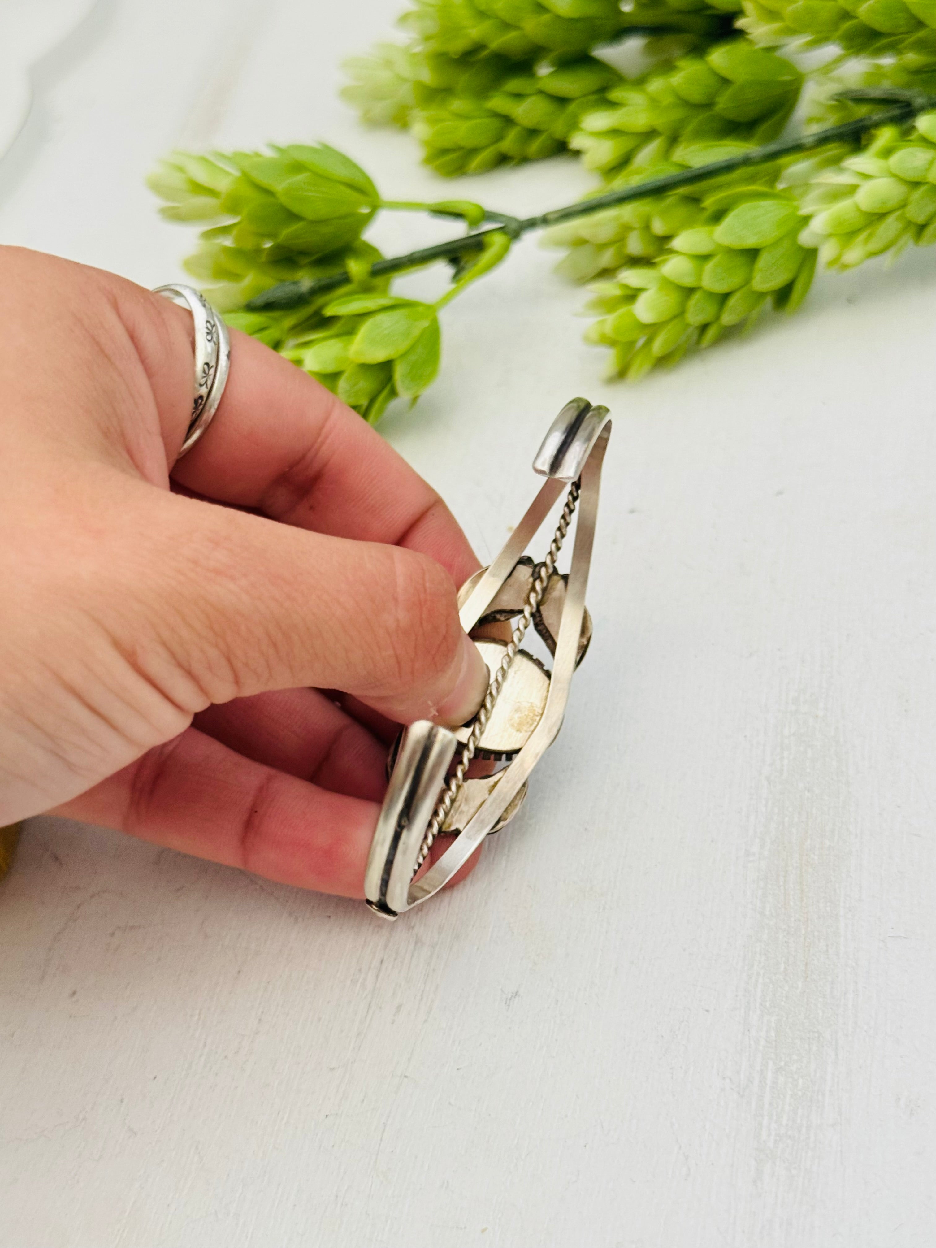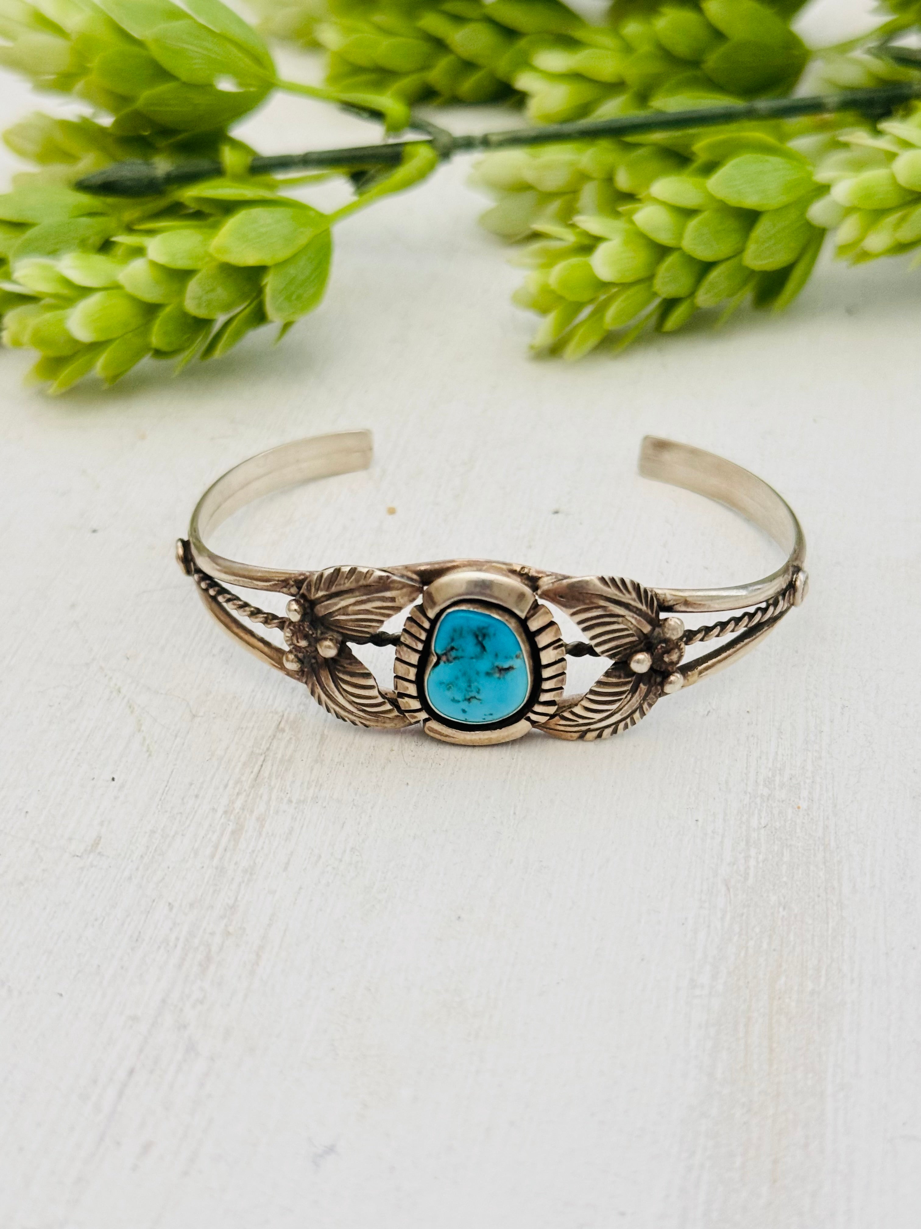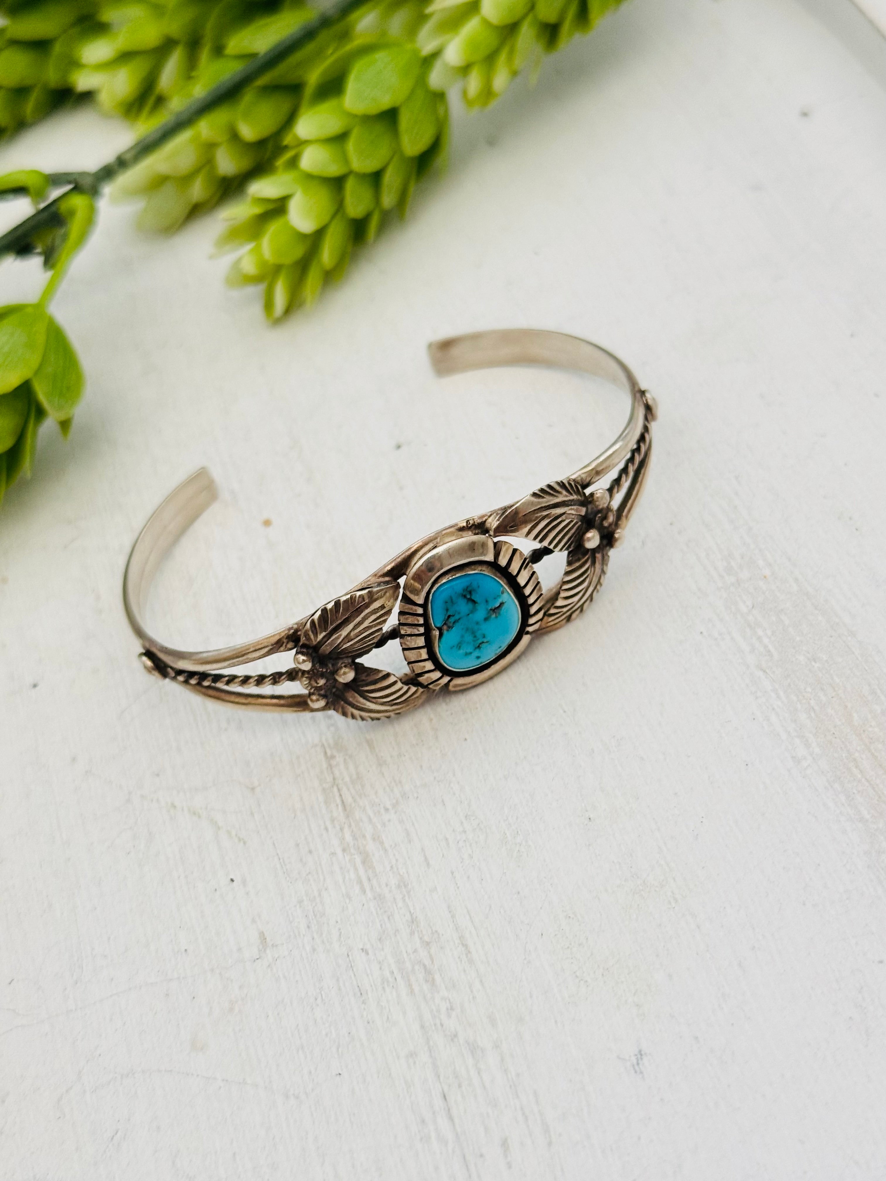 Navajo Made Kingman Turquoise & Sterling Silver Cuff Bracelet & Ring Size 7.5