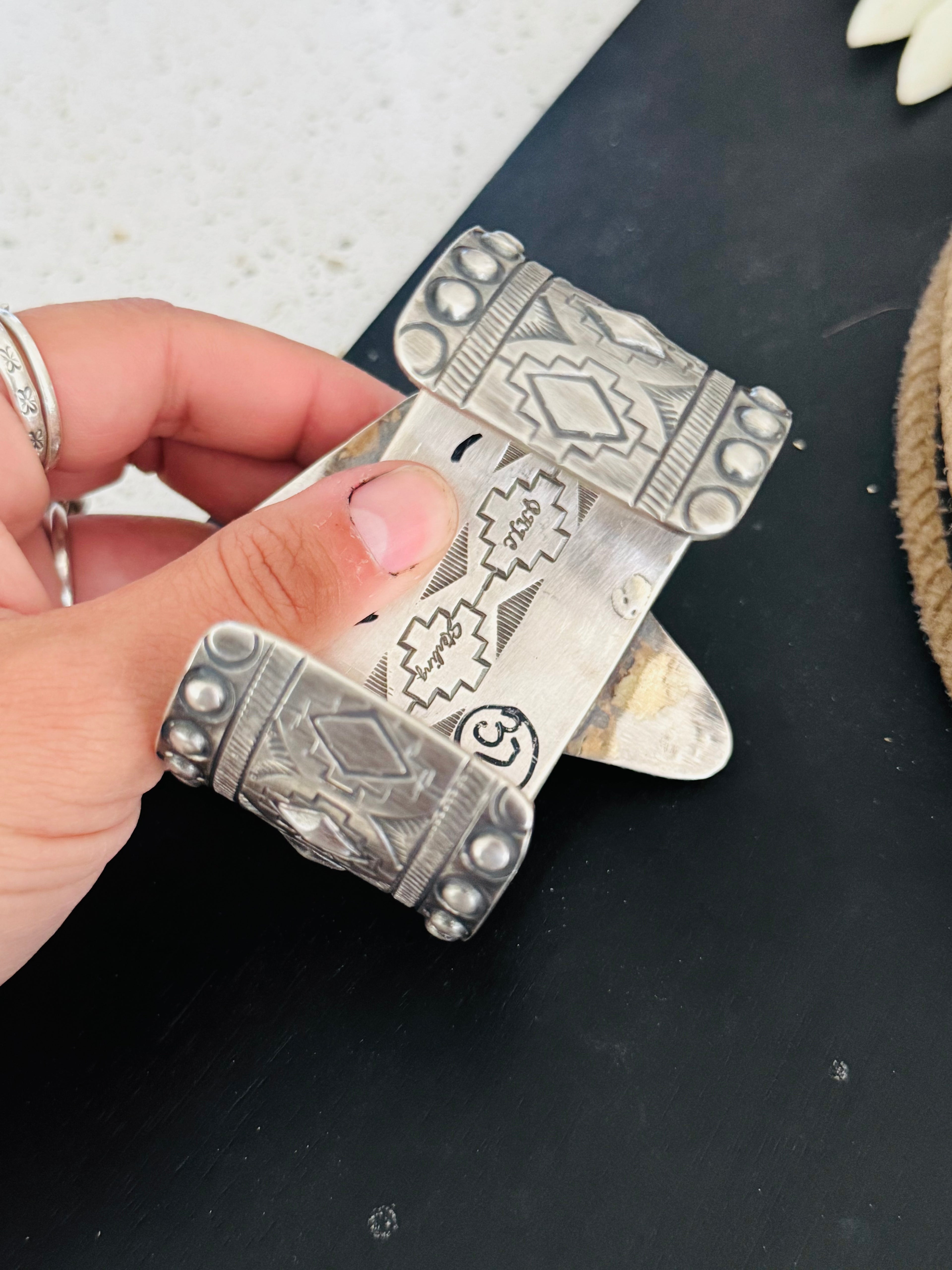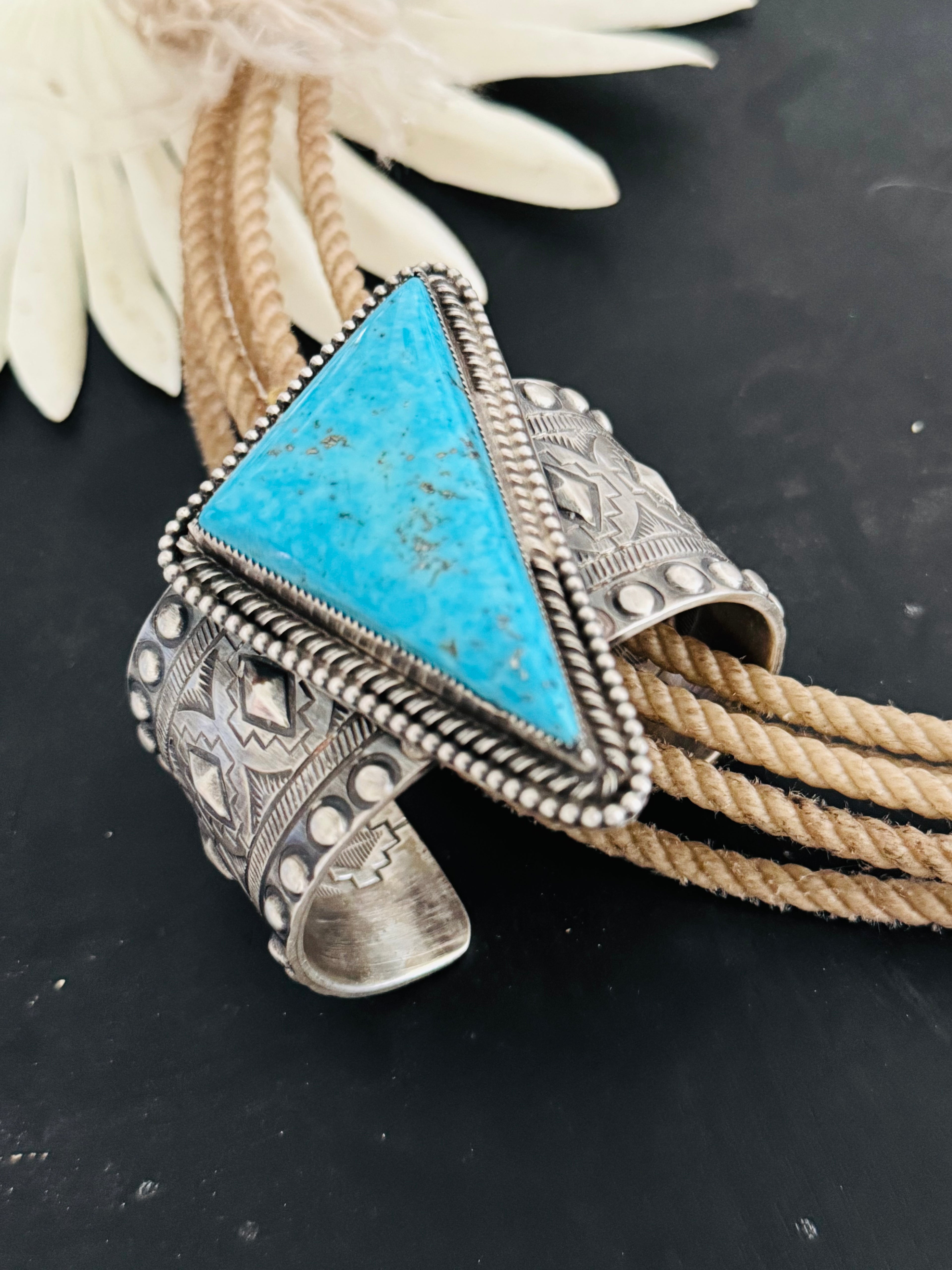 Navajo Made Kingman Turquoise & Sterling Silver Cuff Bracelet