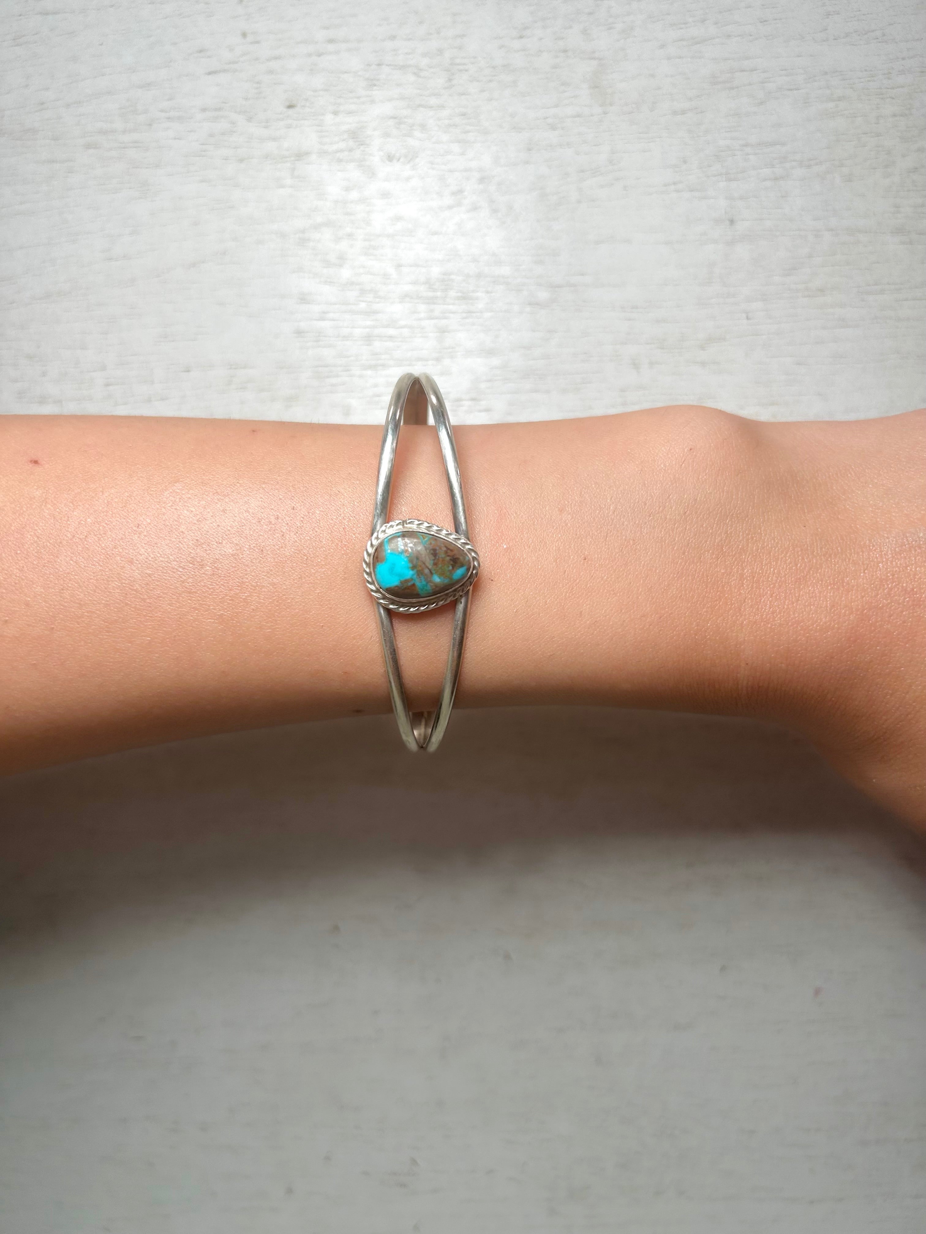 Navajo Made Kingman Turquoise & Sterling Silver Cuff Bracelet