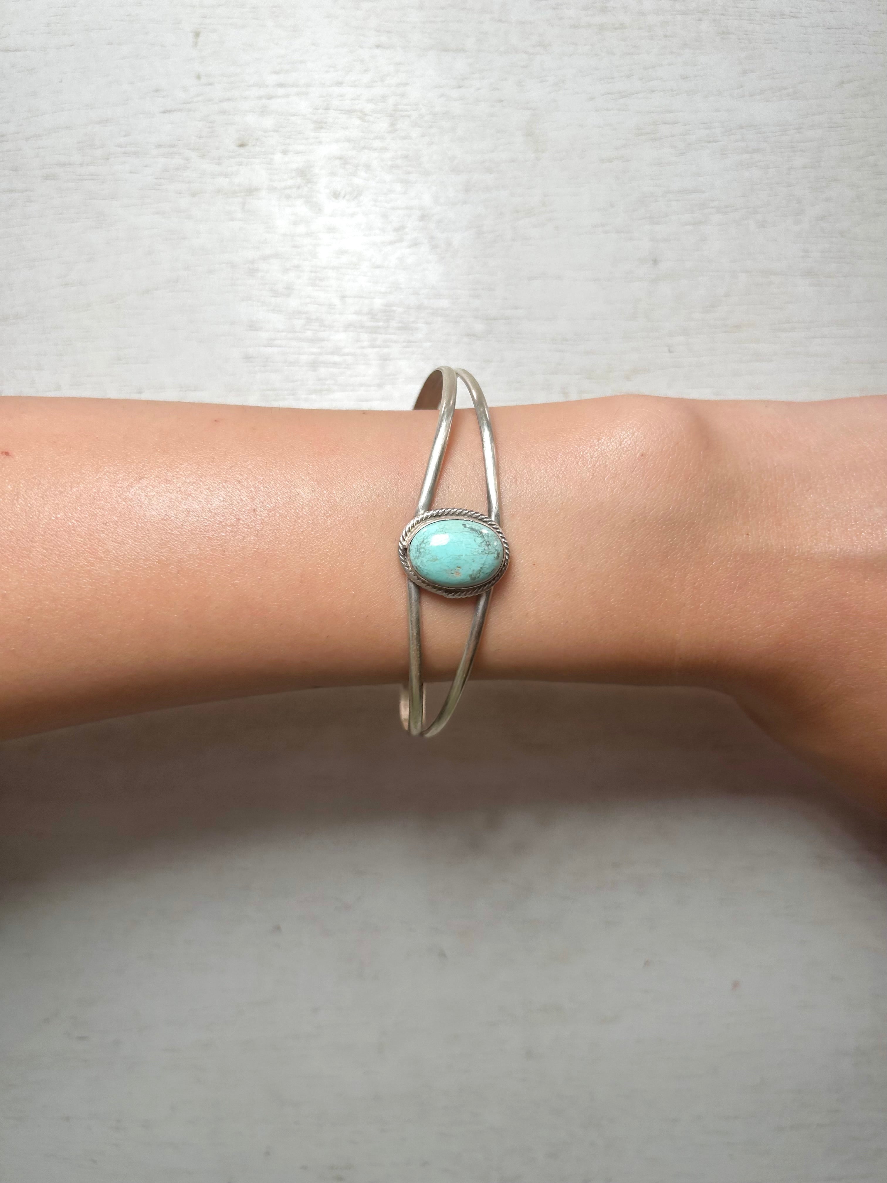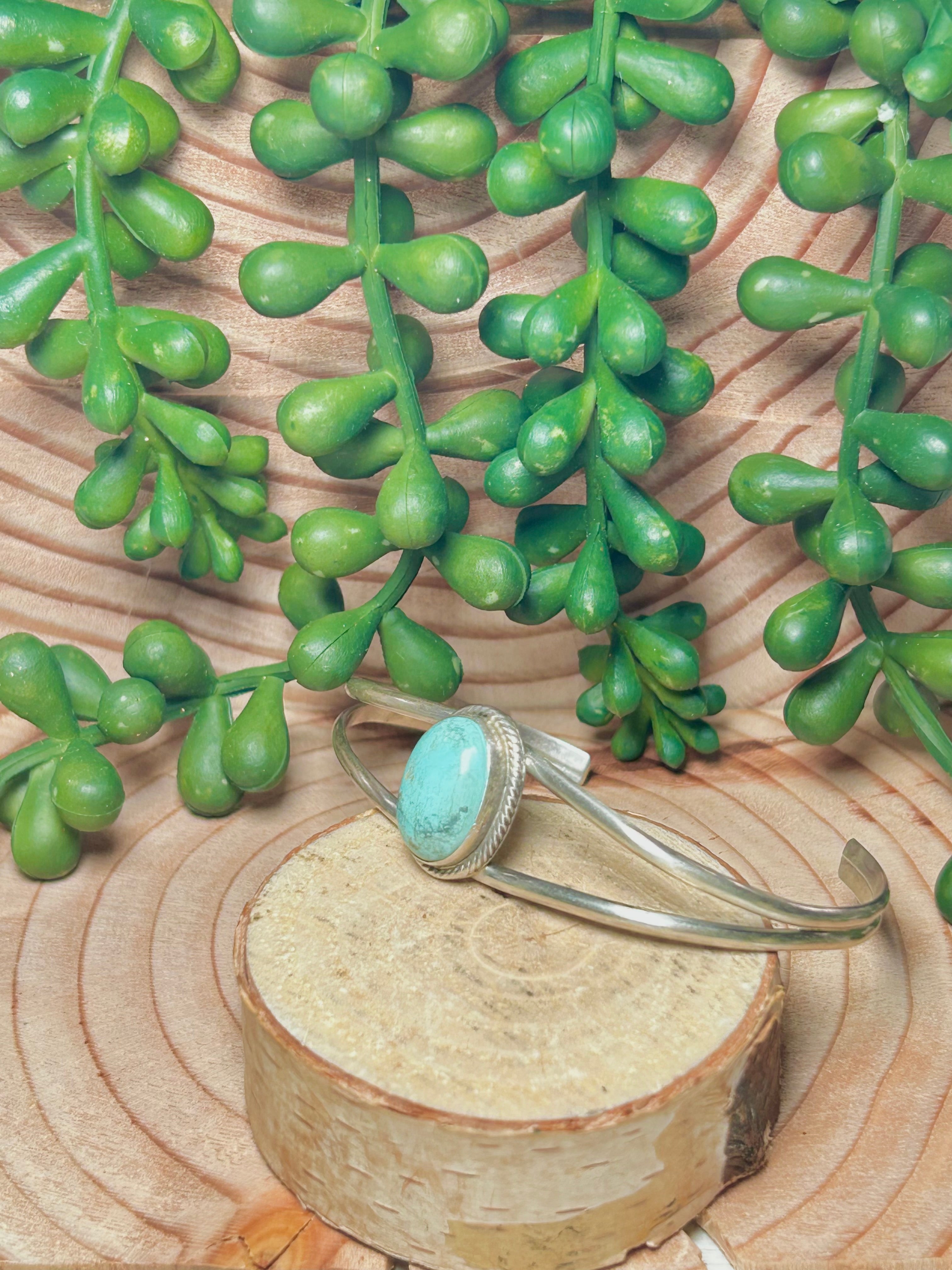 Navajo Made Kingman Turquoise & Sterling Silver Cuff Bracelet
