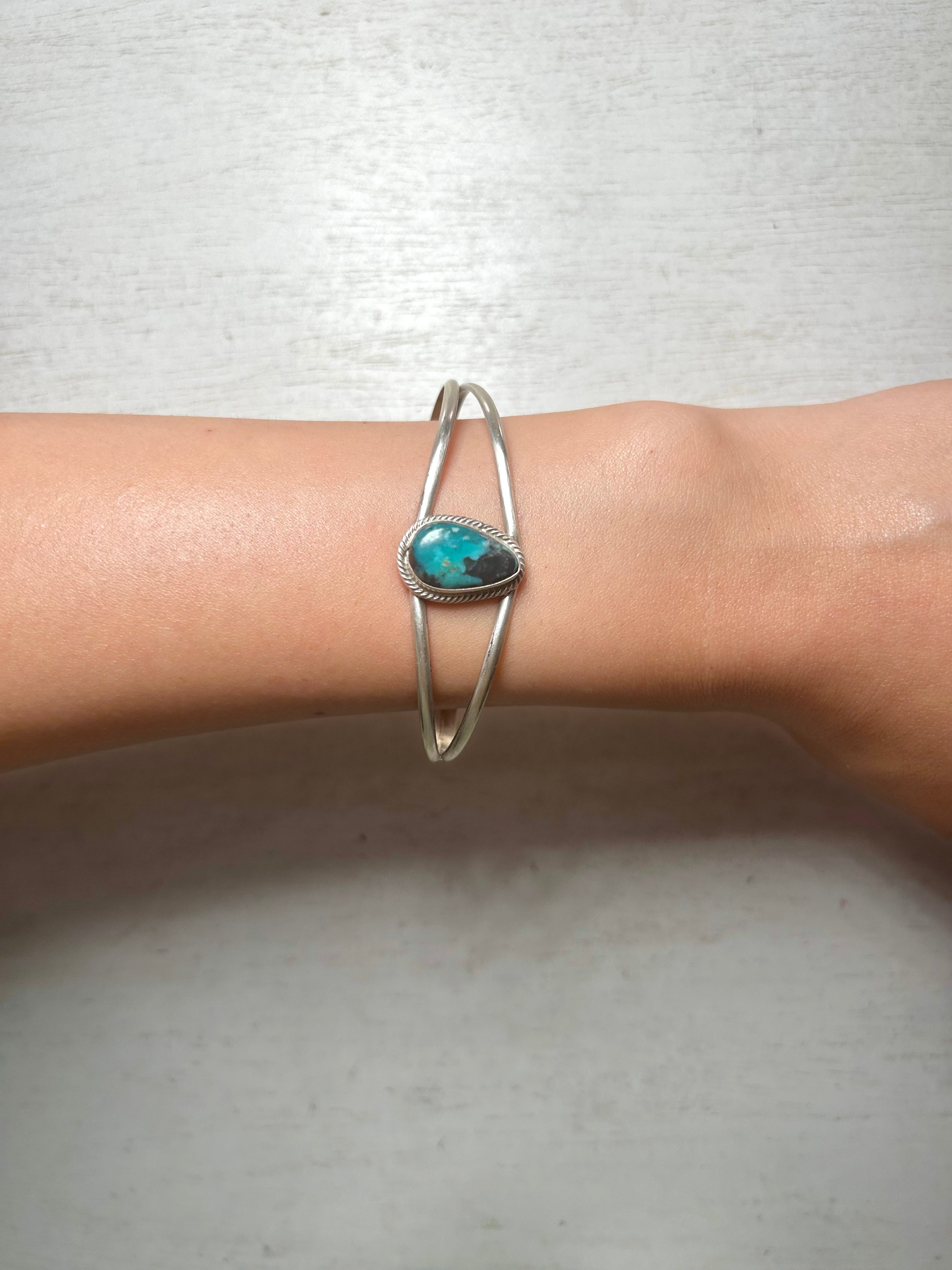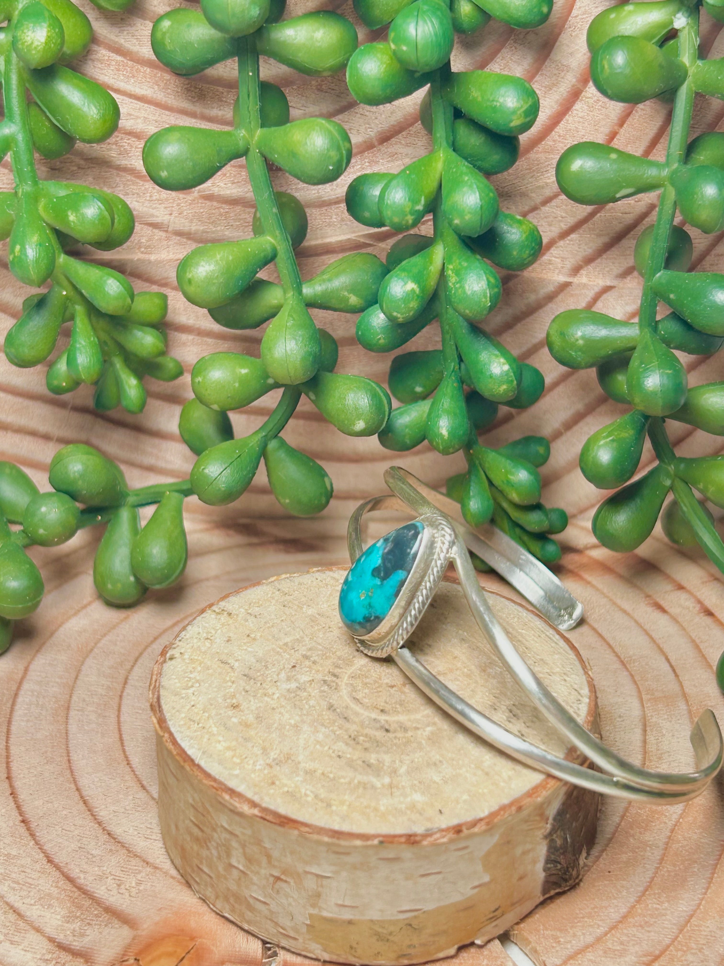 Navajo Made Kingman Turquoise & Sterling Silver Cuff Bracelet