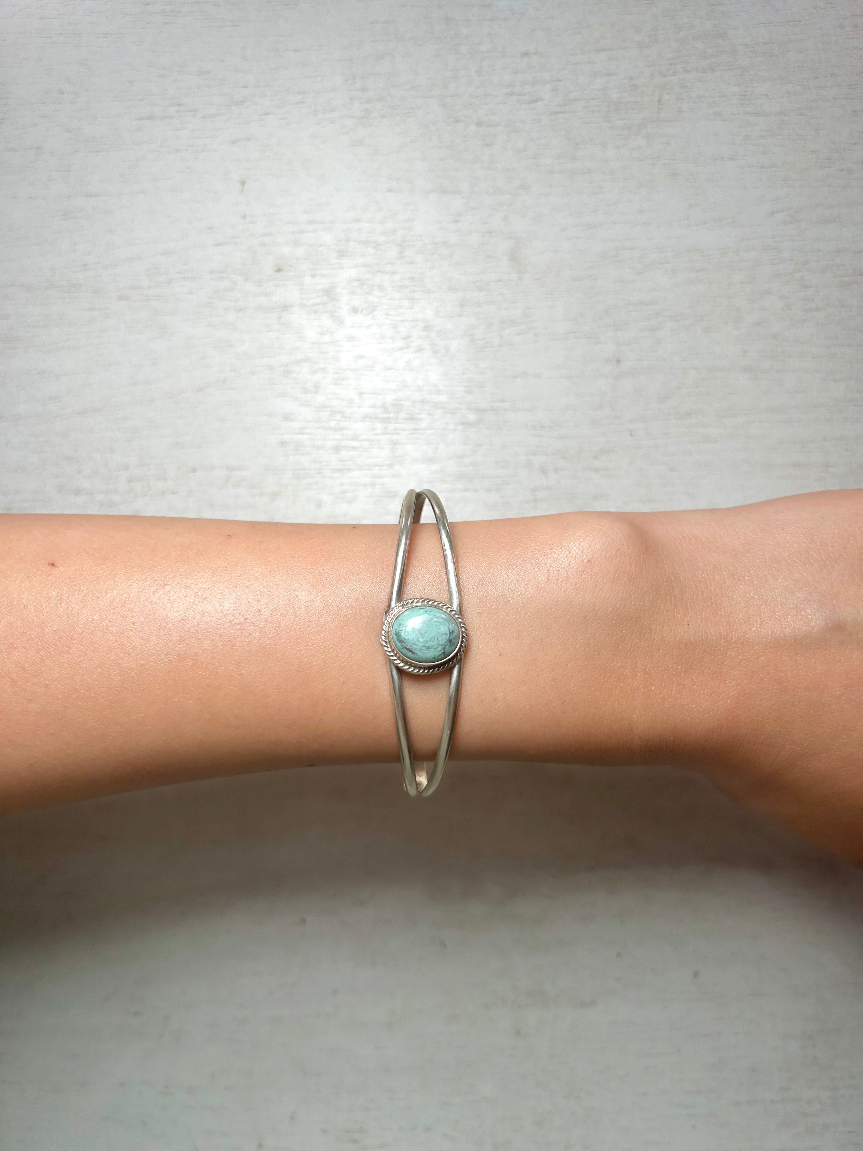 Navajo Made Kingman Turquoise & Sterling Silver Cuff Bracelet