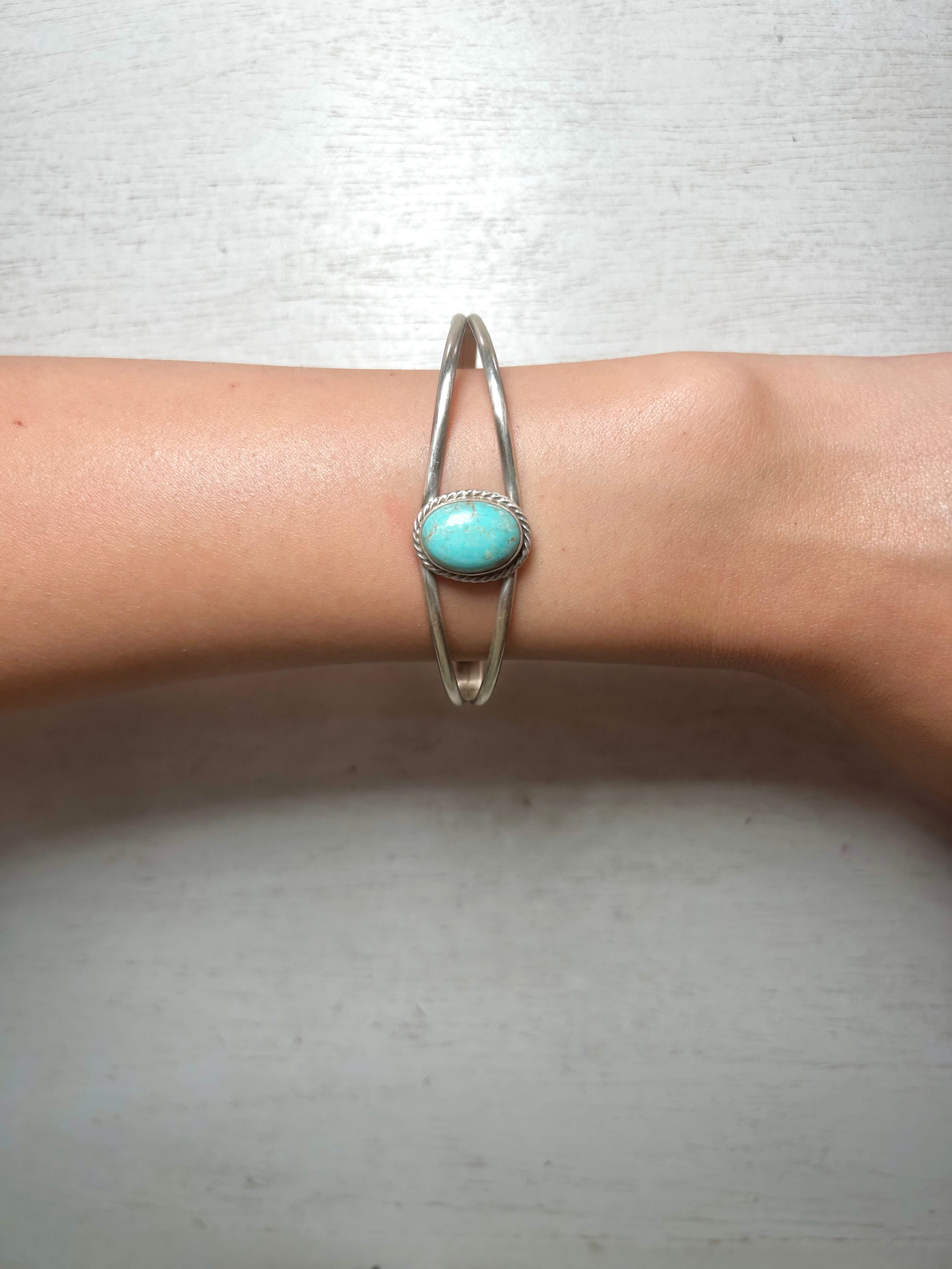 Navajo Made Kingman Turquoise & Sterling Silver Cuff Bracelet