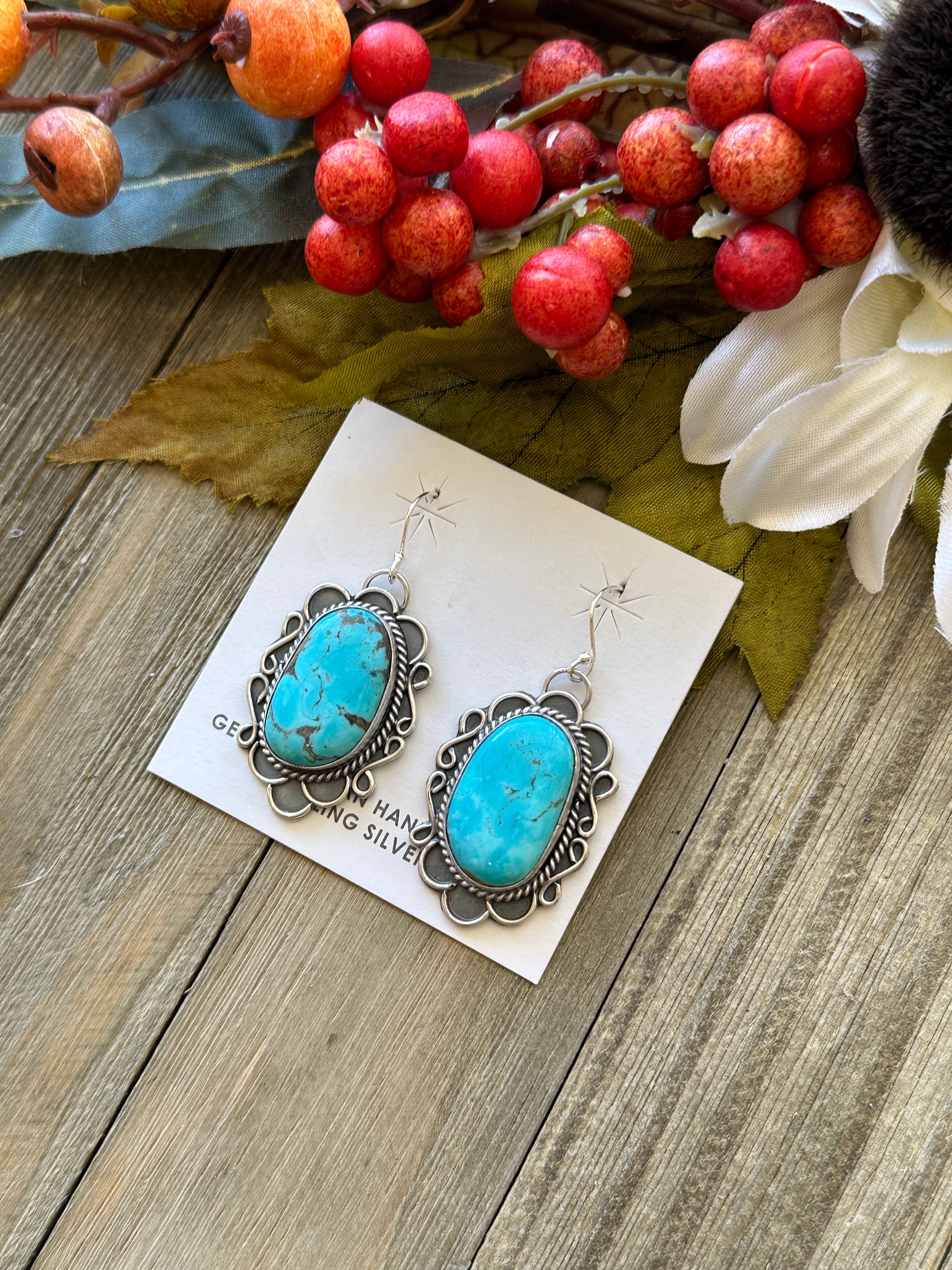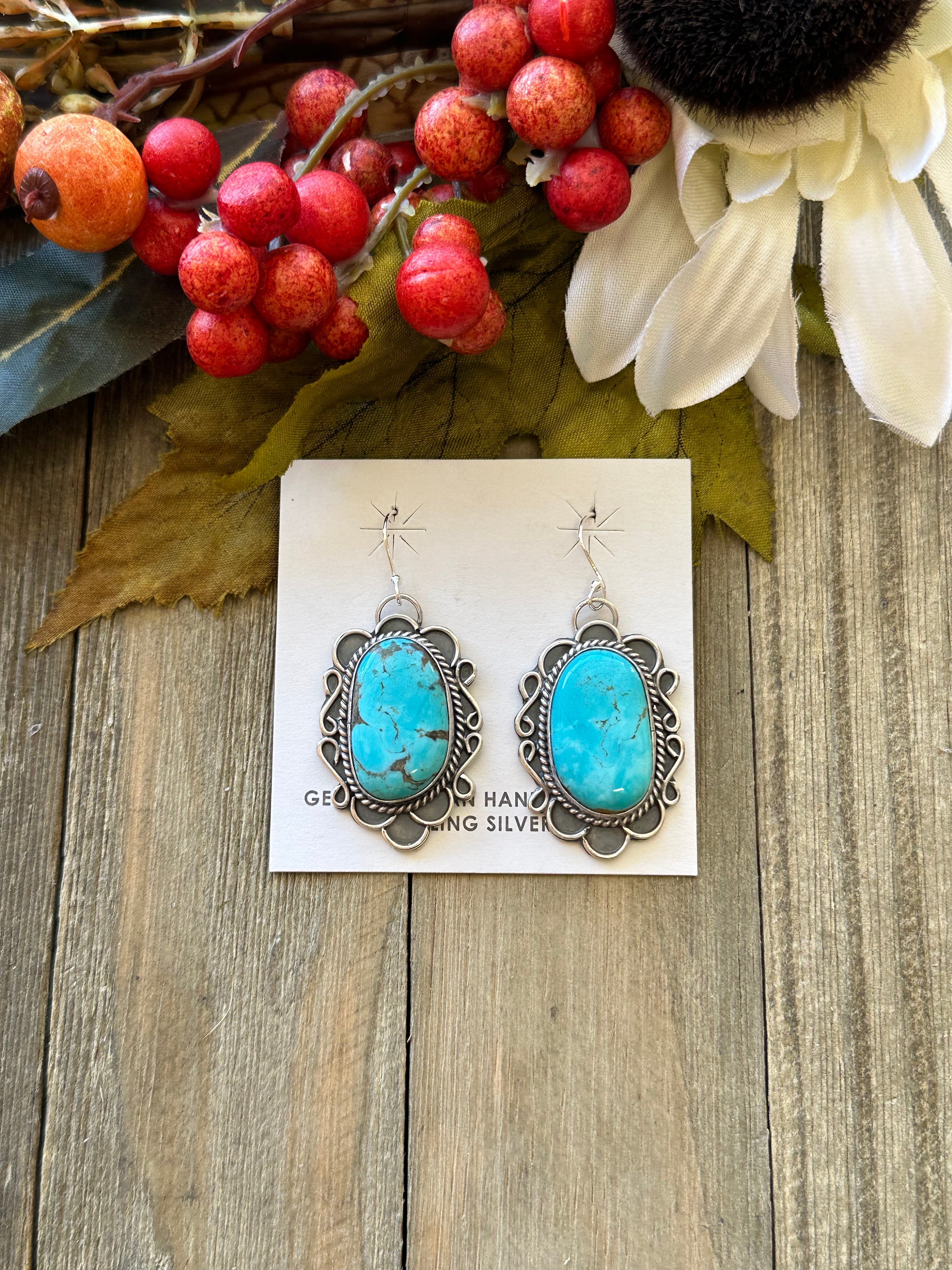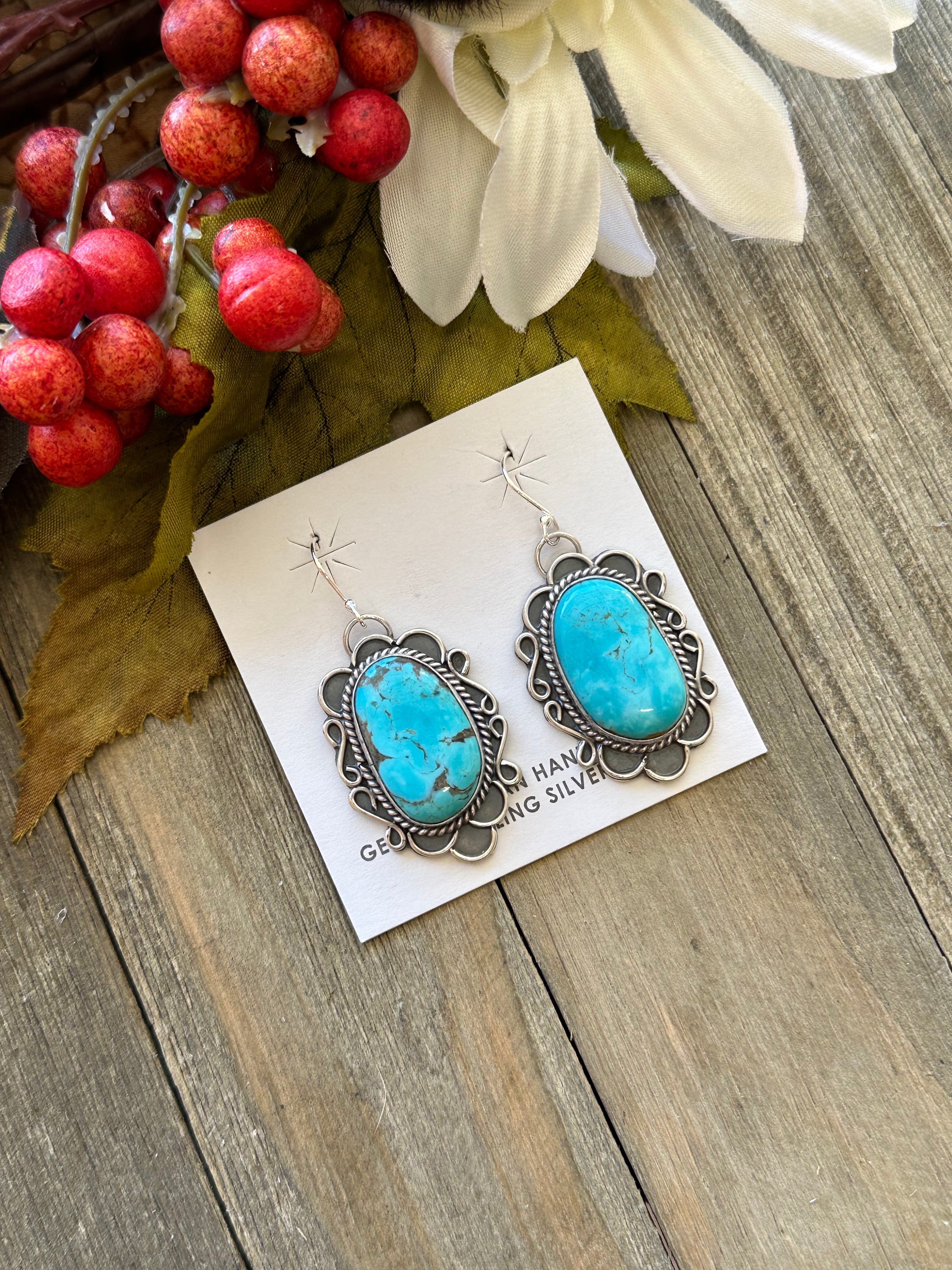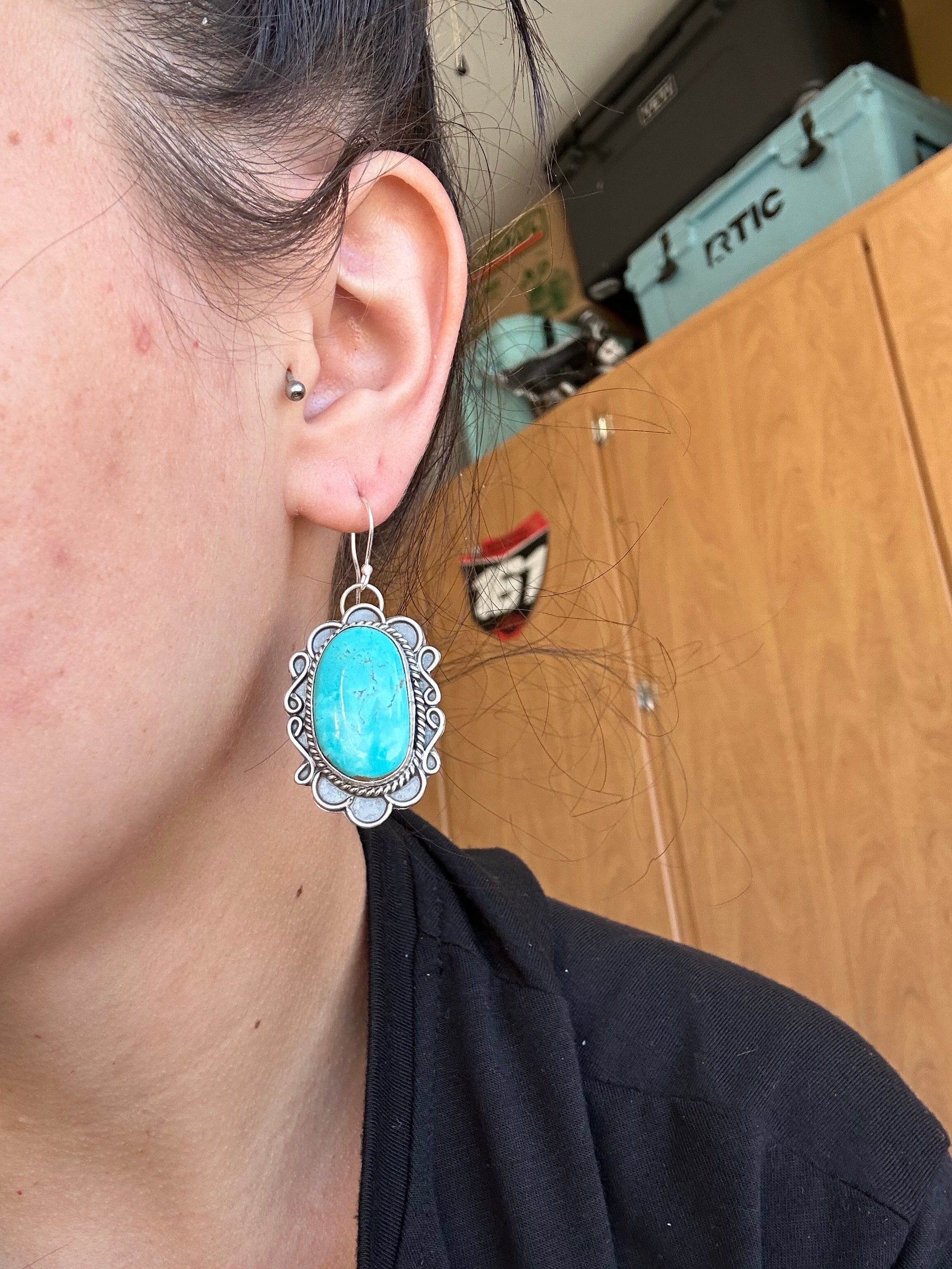 Navajo Made Kingman Turquoise & Sterling Silver Dangle Earrings