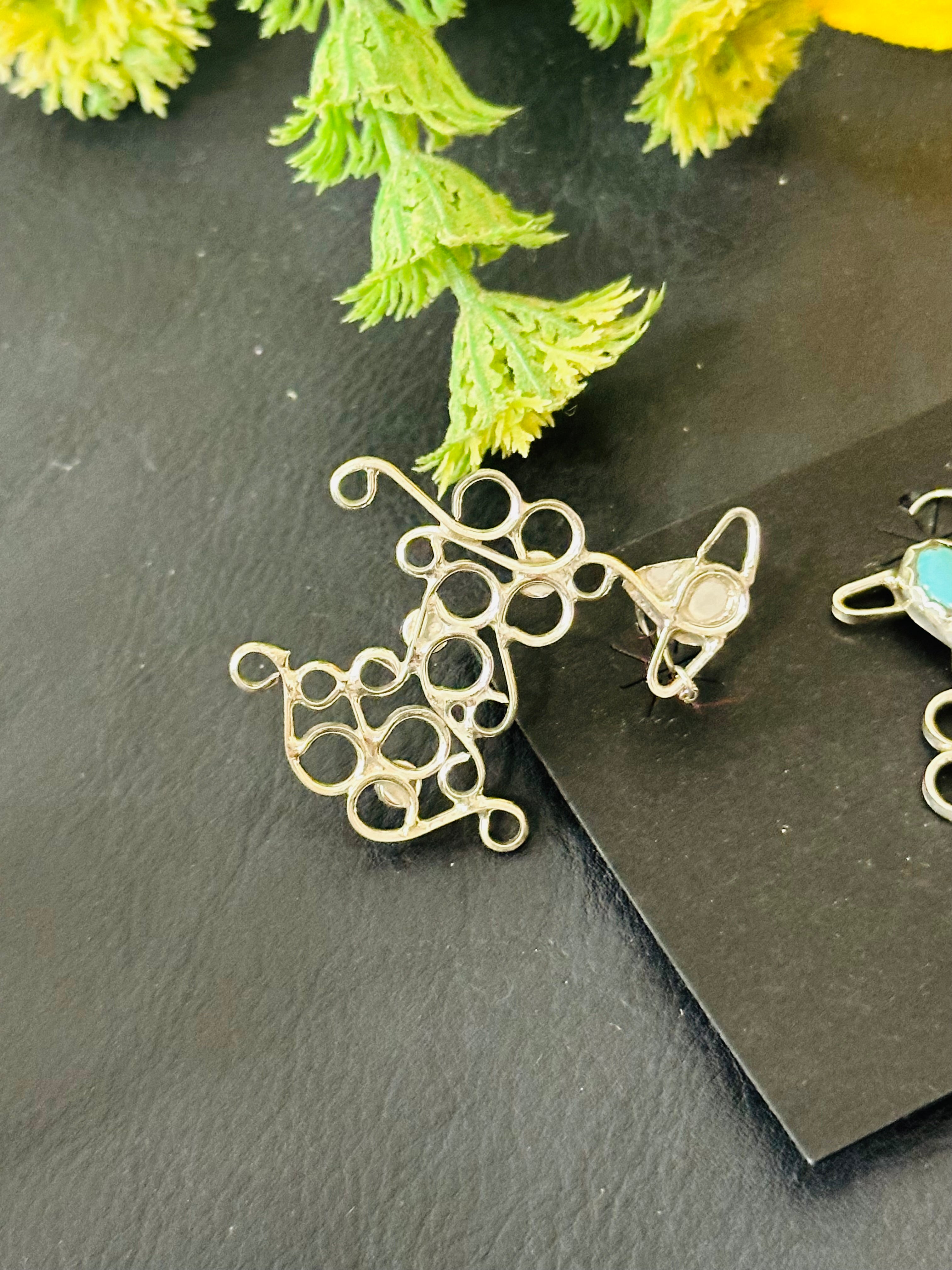 Beautiful dangle earrings. Navajo Made Kingman Turquoise & Sterling Silver Dangle Earrings. It measures 2 inches long and 1 1/2 inches wide . Signed and stamped.