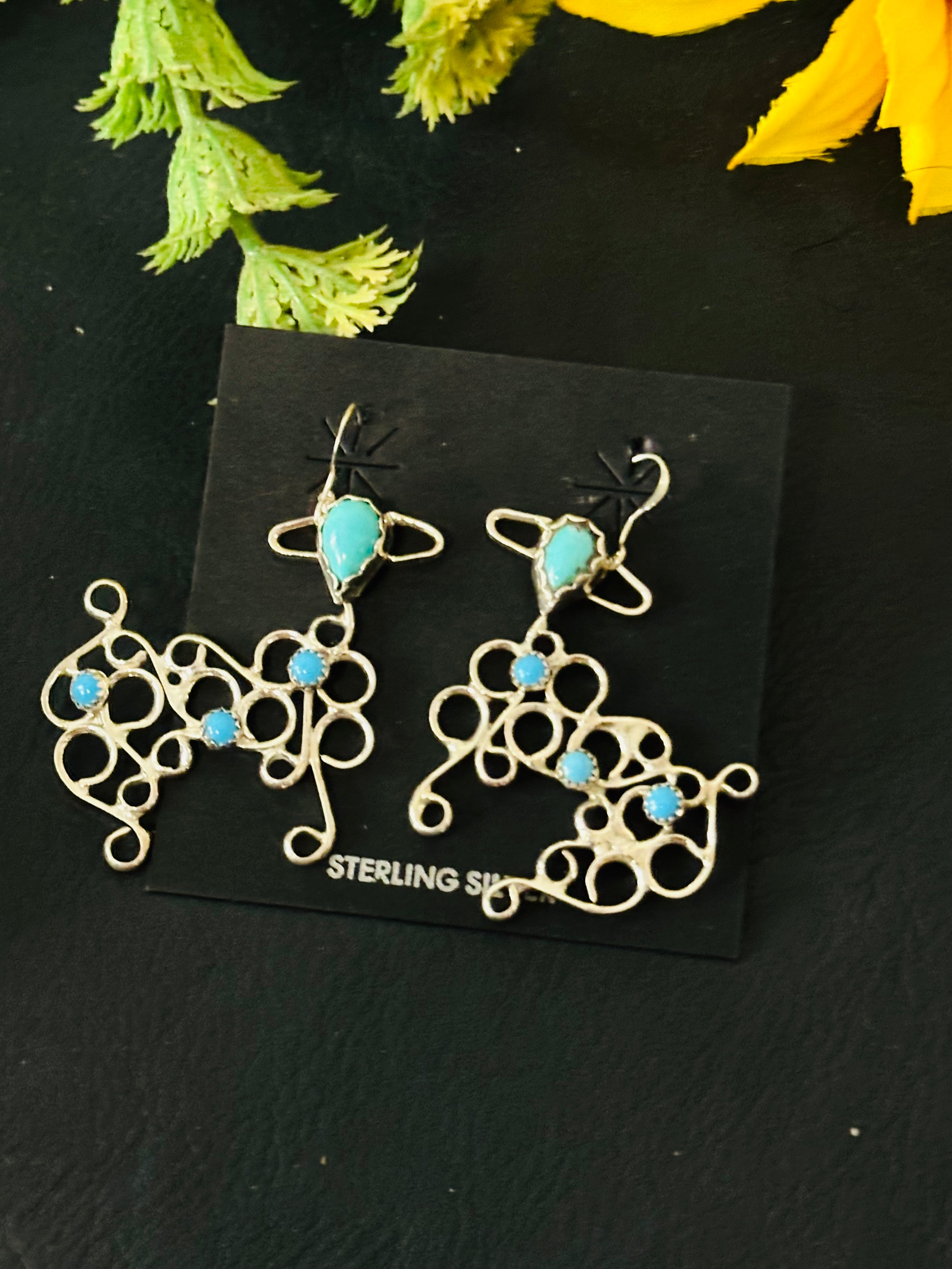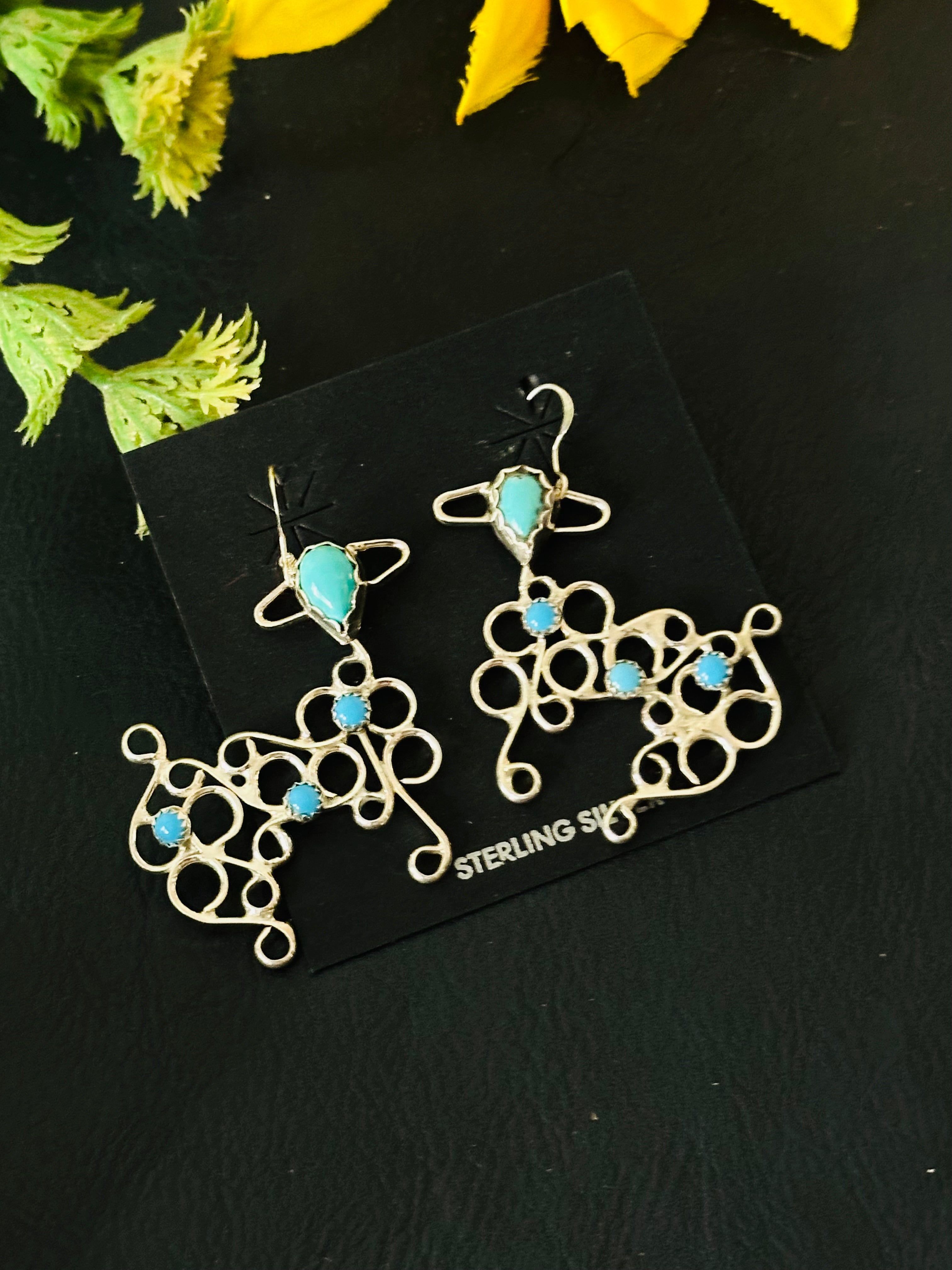 Navajo Made Kingman Turquoise & Sterling Silver Dangle Earrings