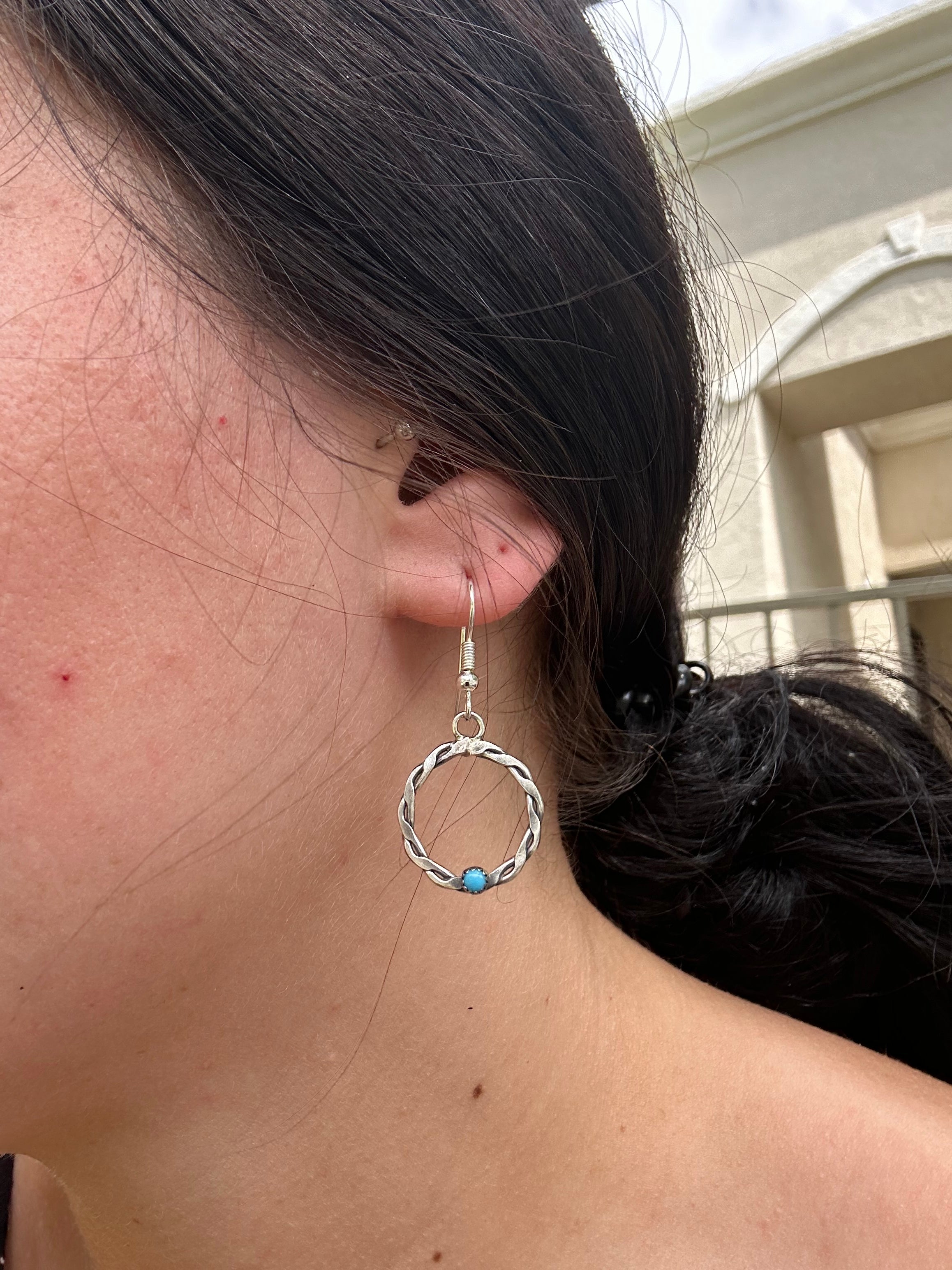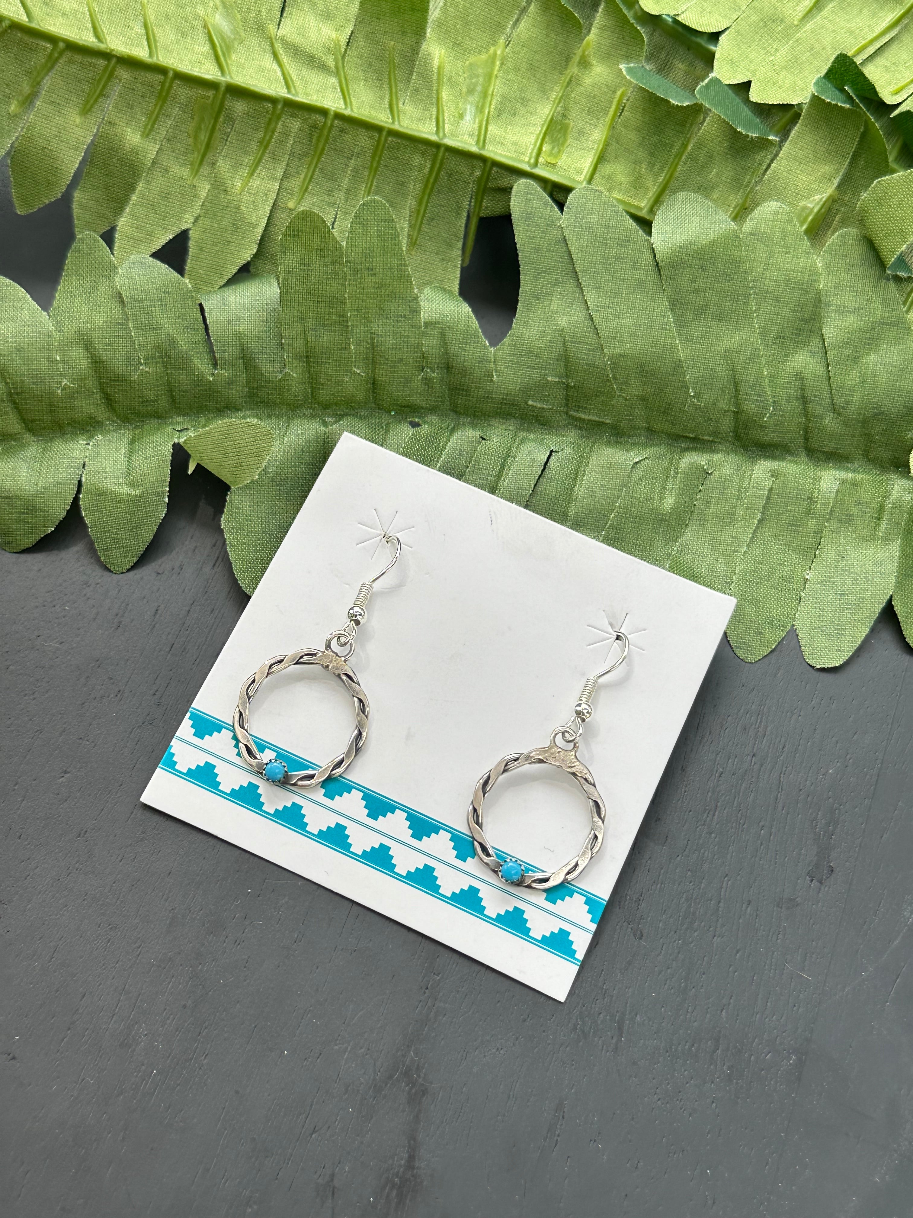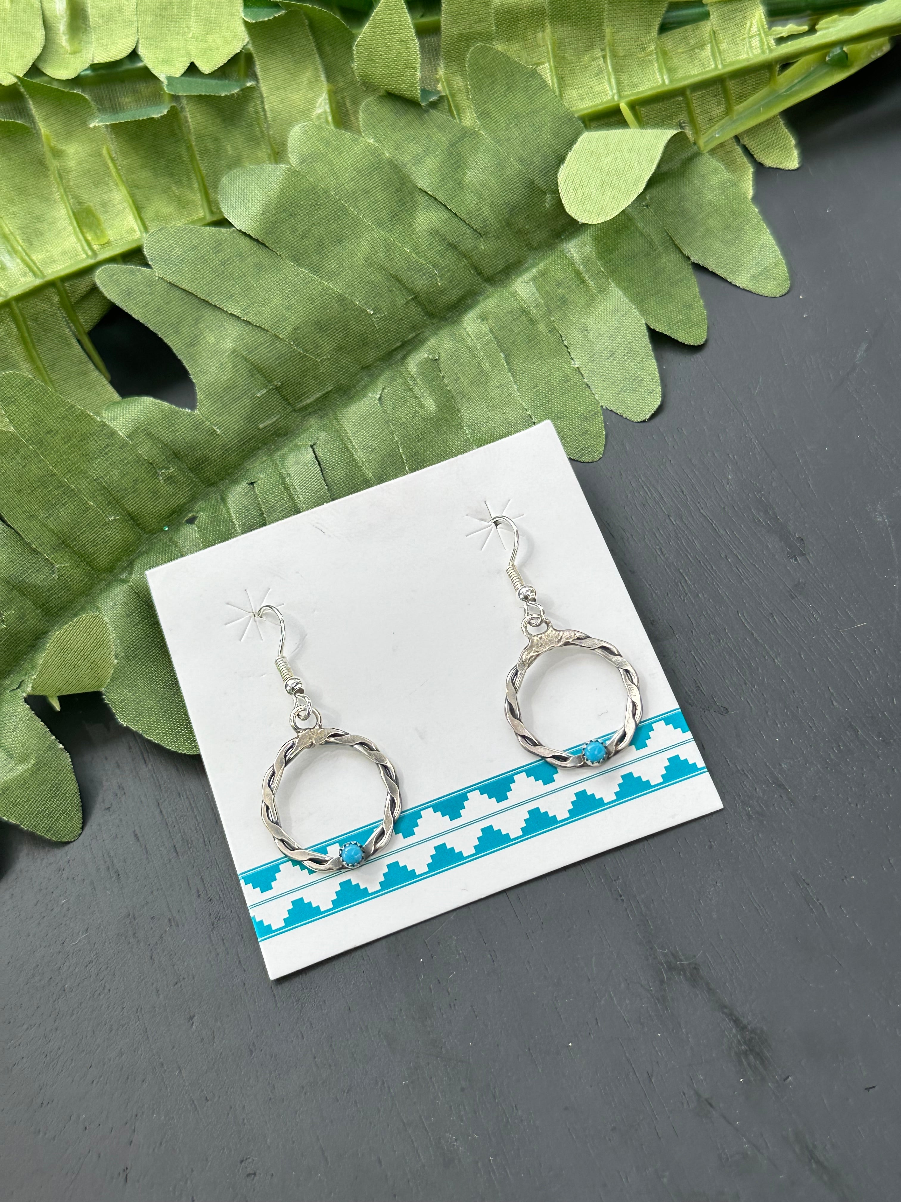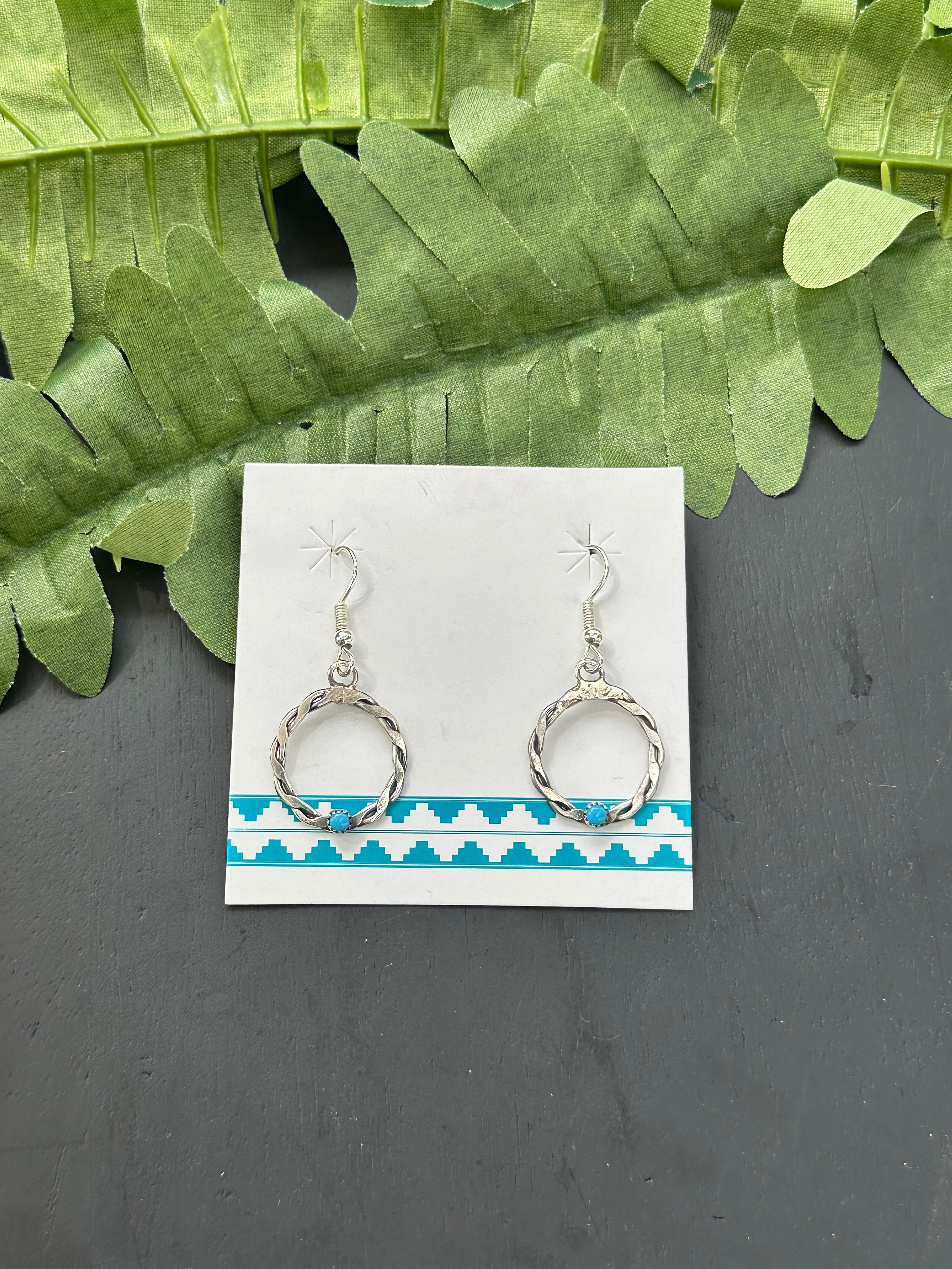 Navajo Made Kingman Turquoise & Sterling Silver Dangle Earrings