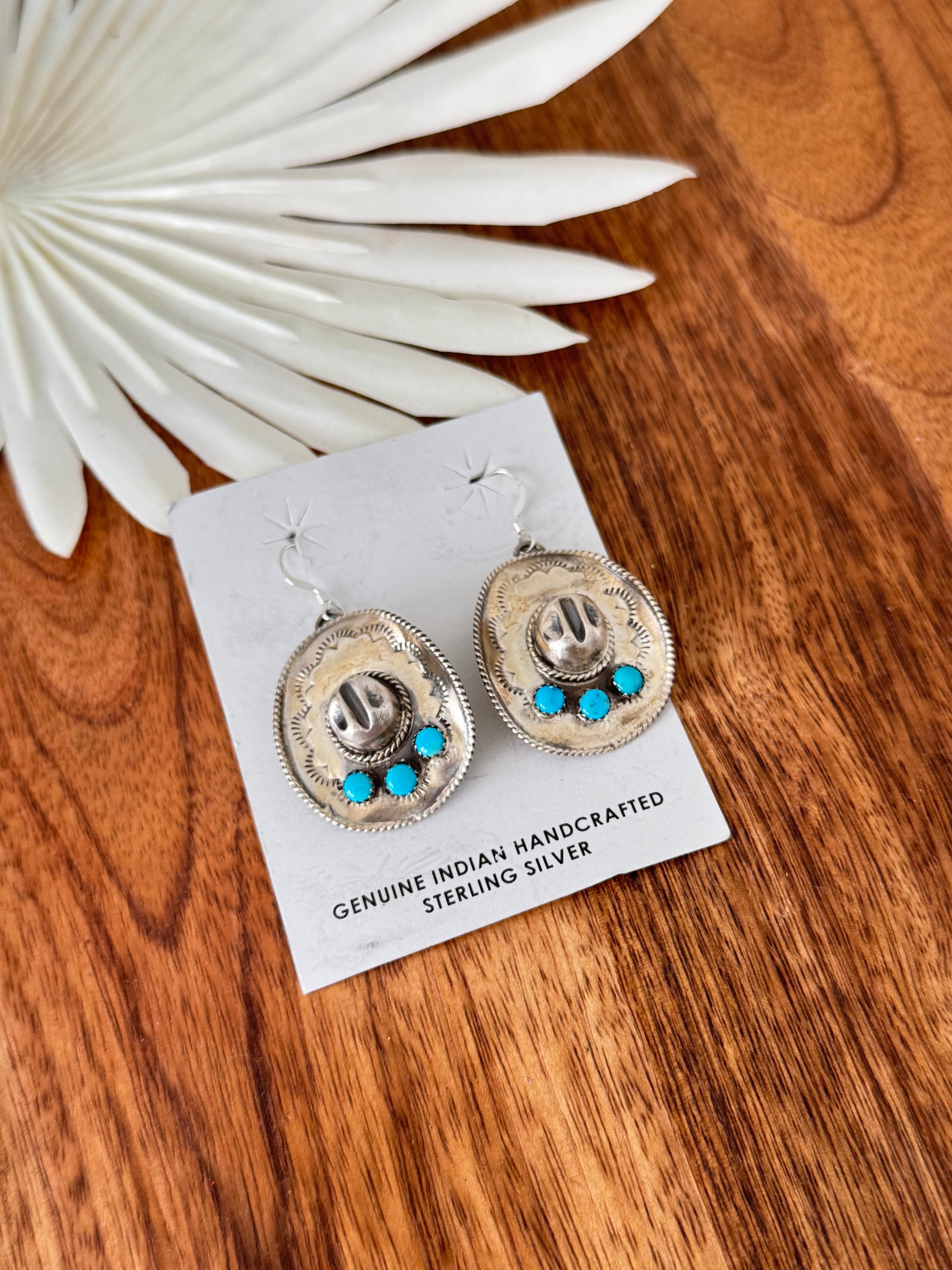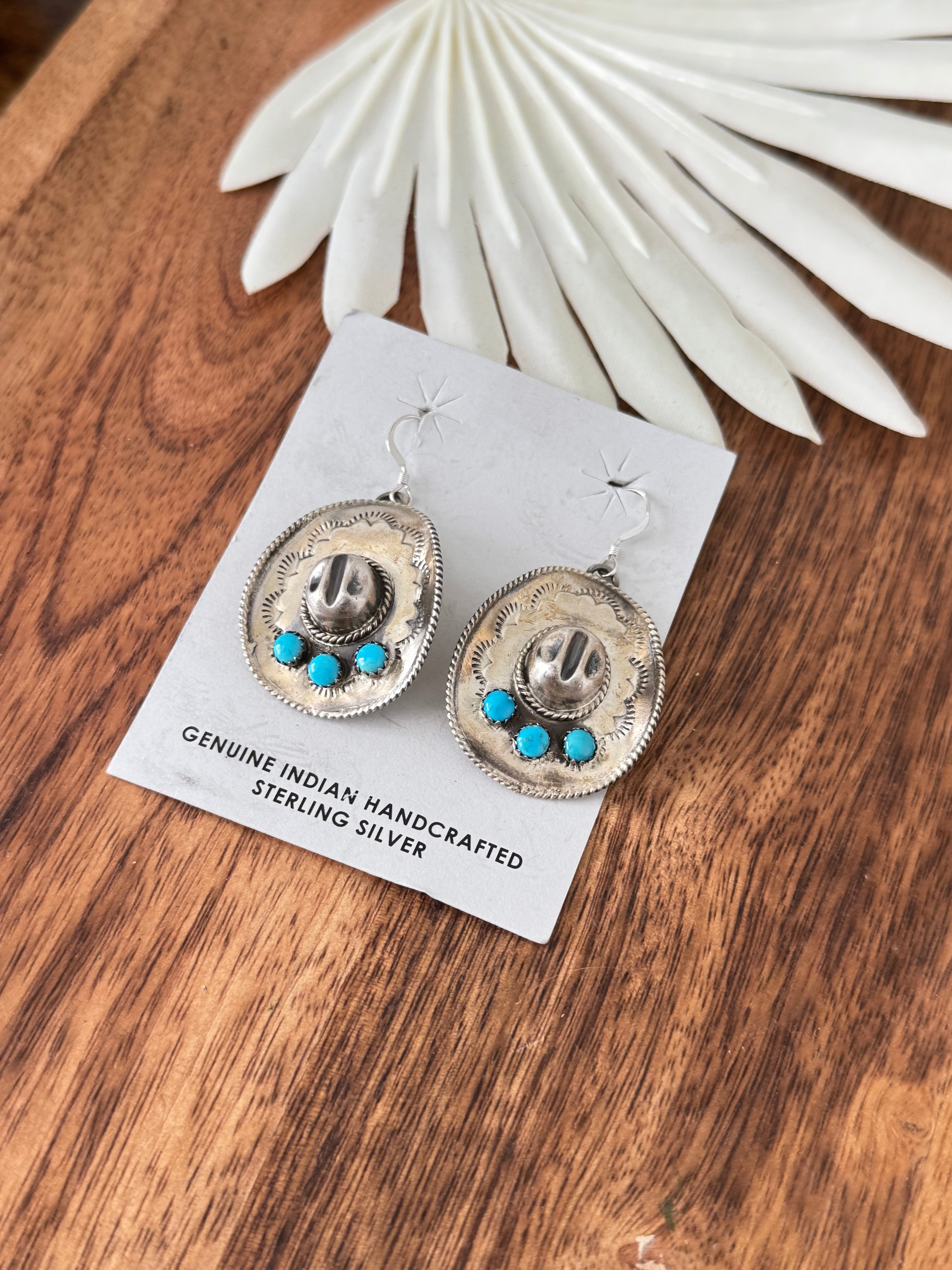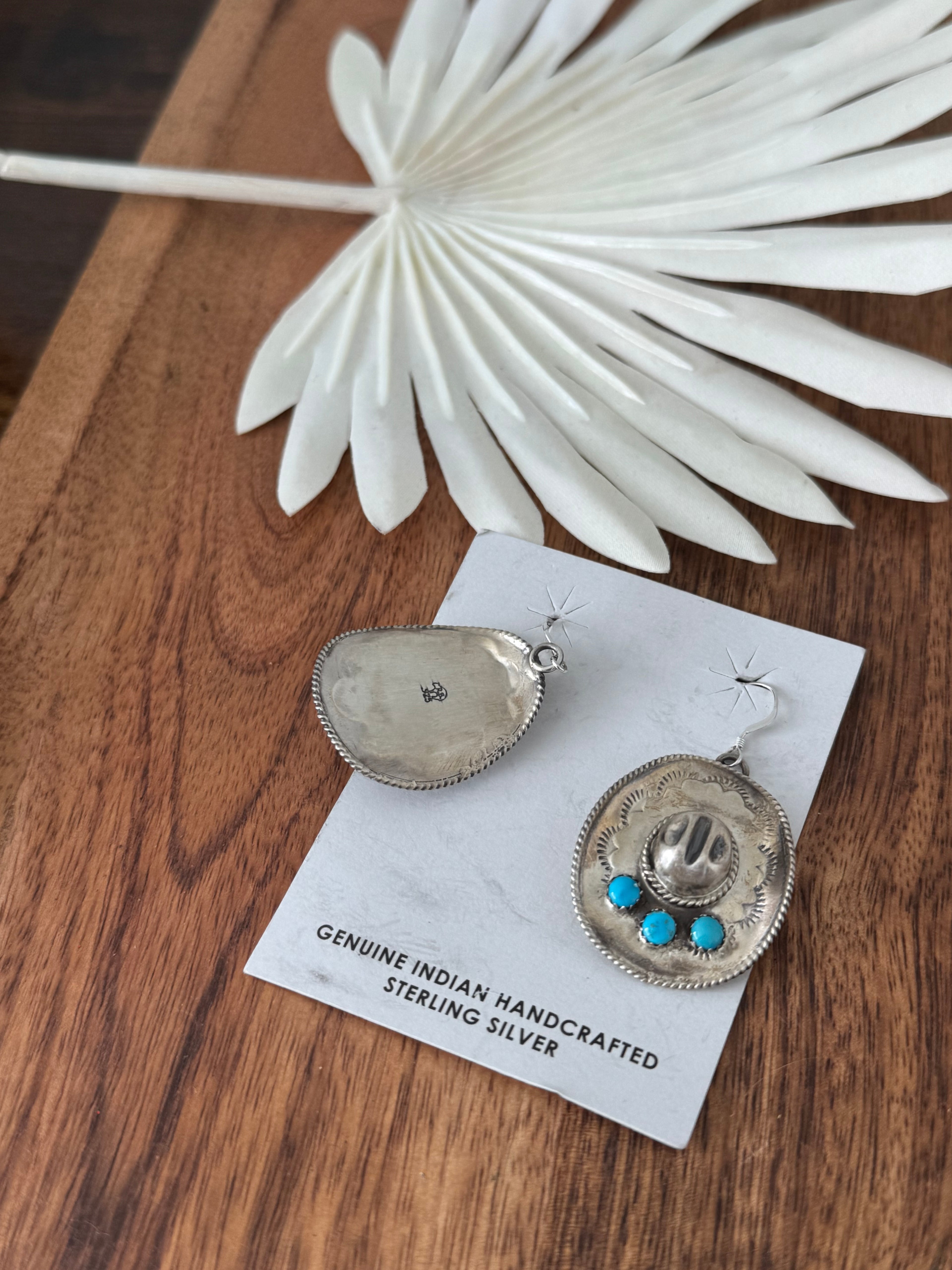 Bobby Platero Kingman Turquoise & Sterling Silver Dangle Cowboy Hat Earrings