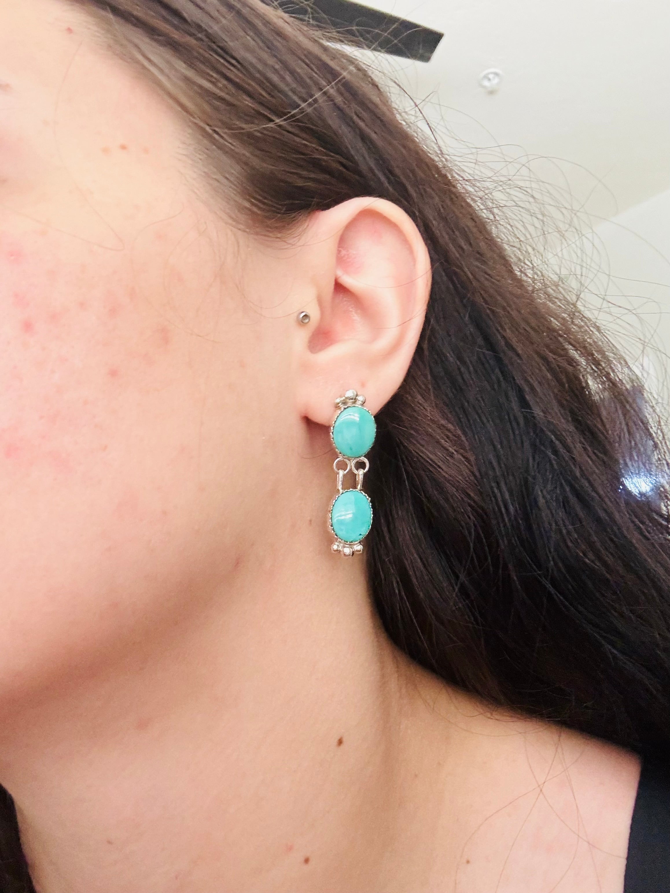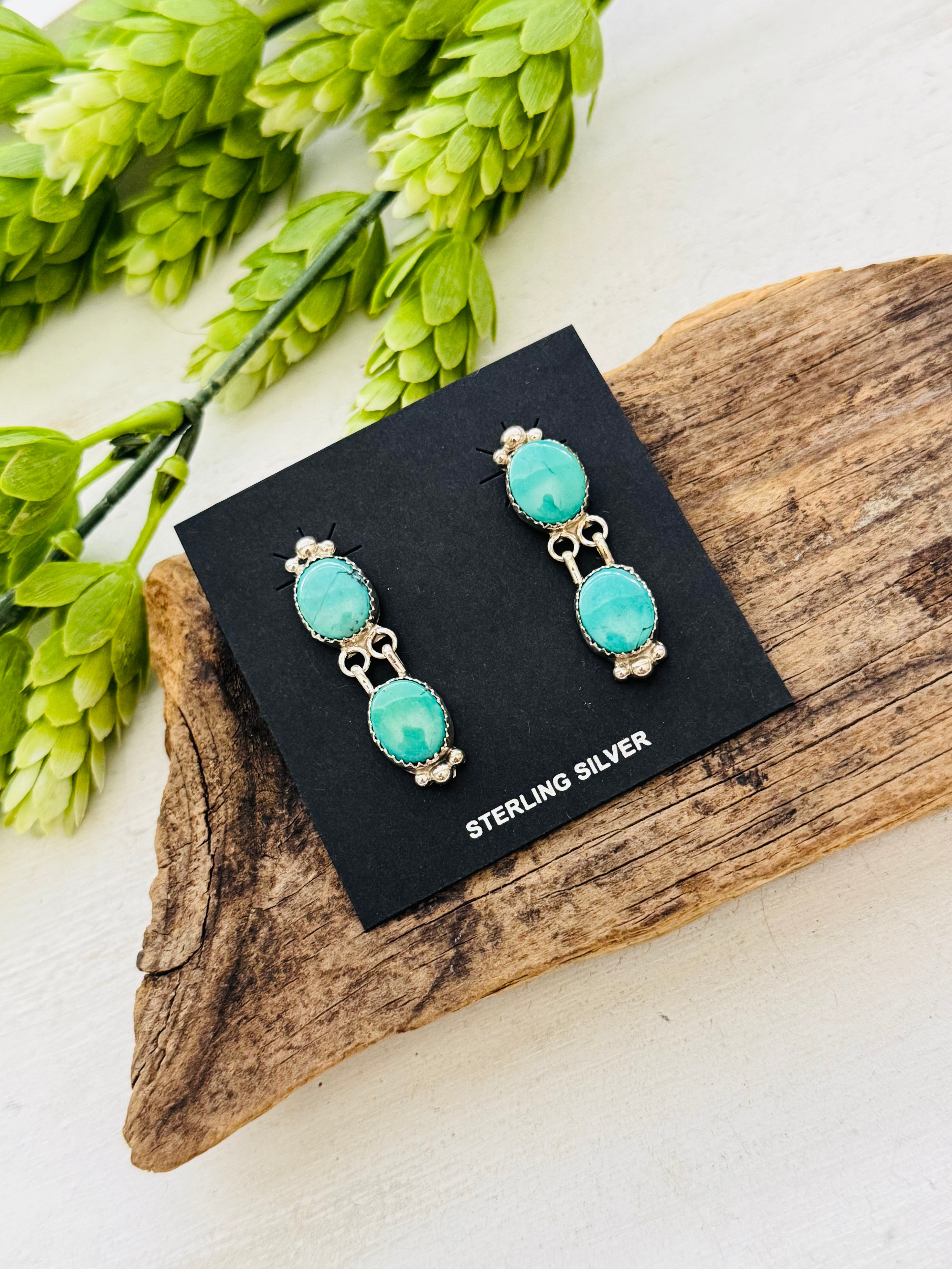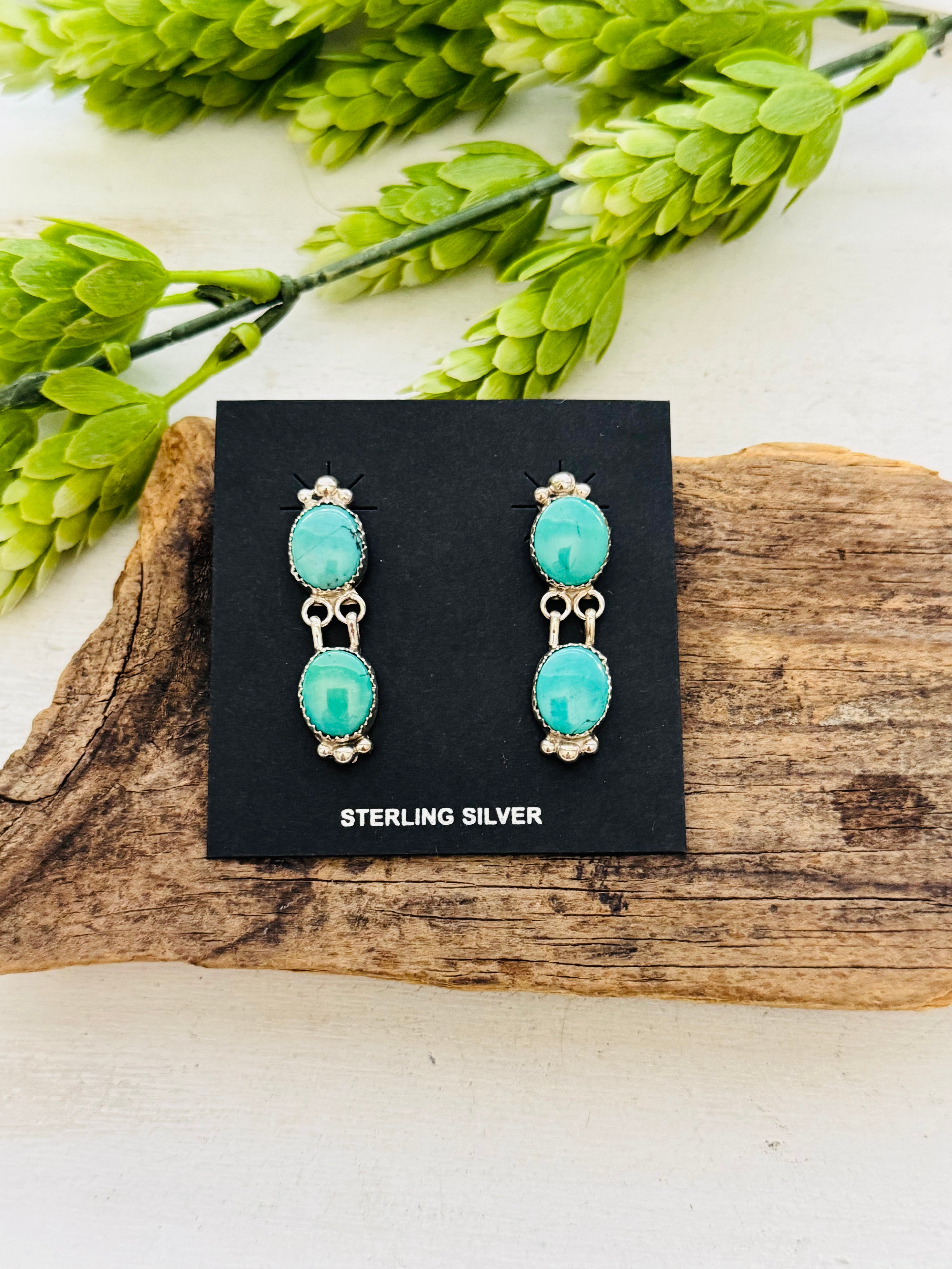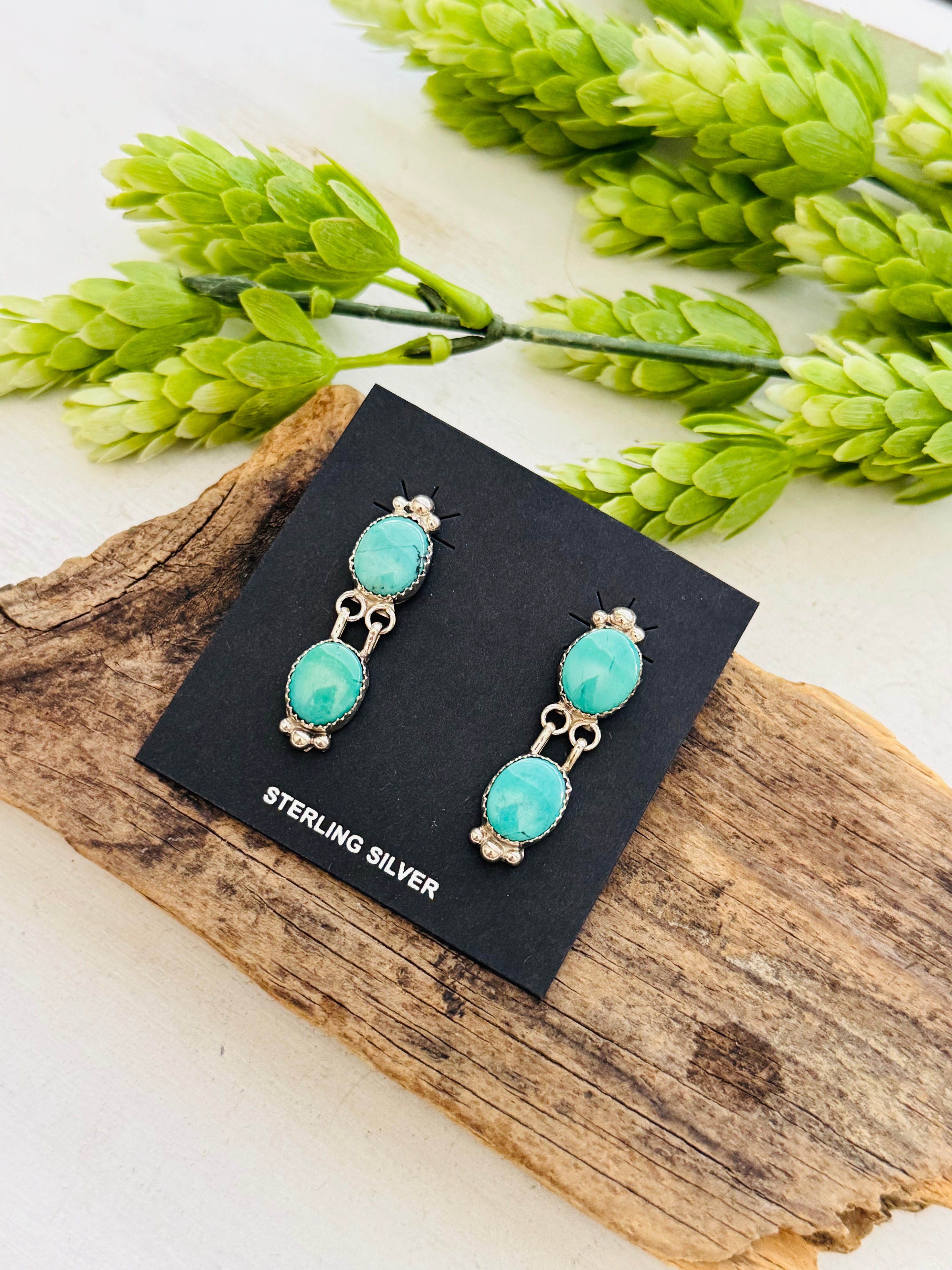 Navajo Made Kingman Turquoise & Sterling Silver Post Dangle Earrings