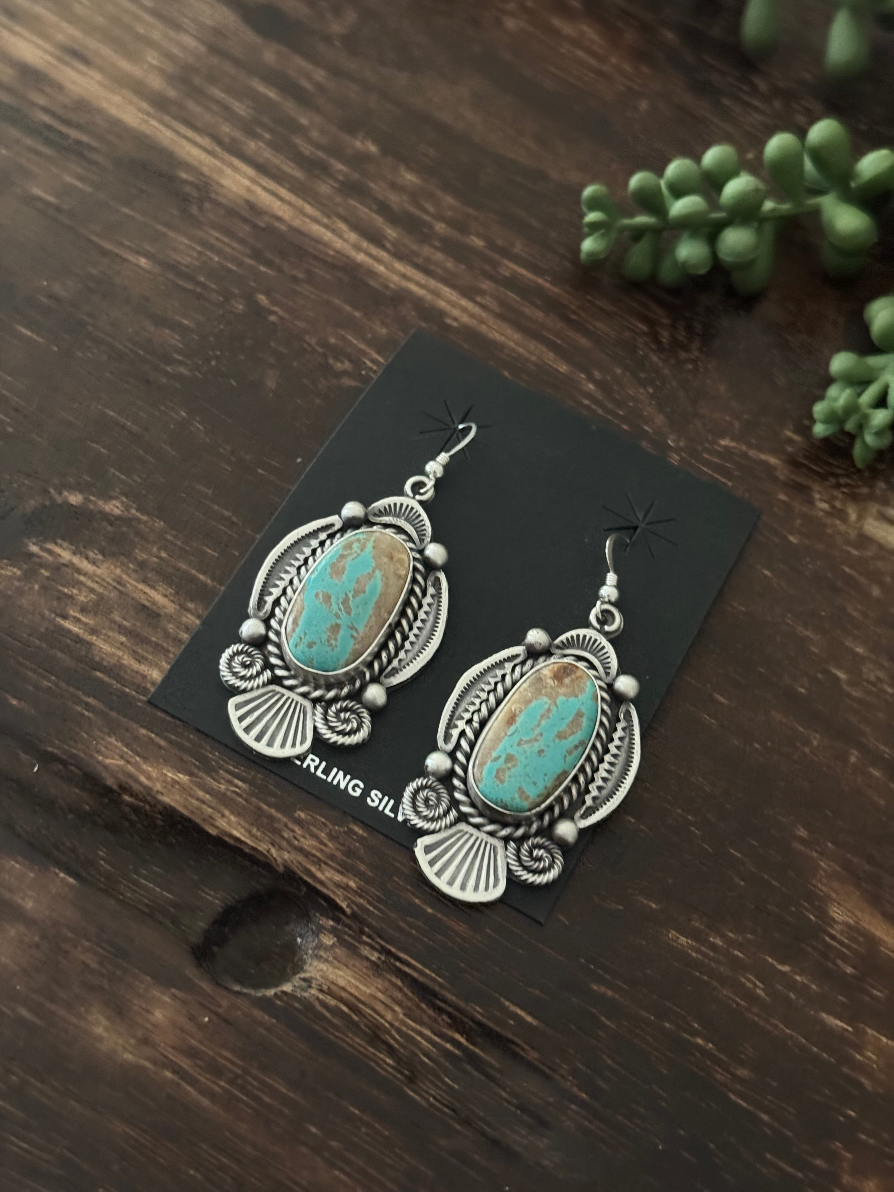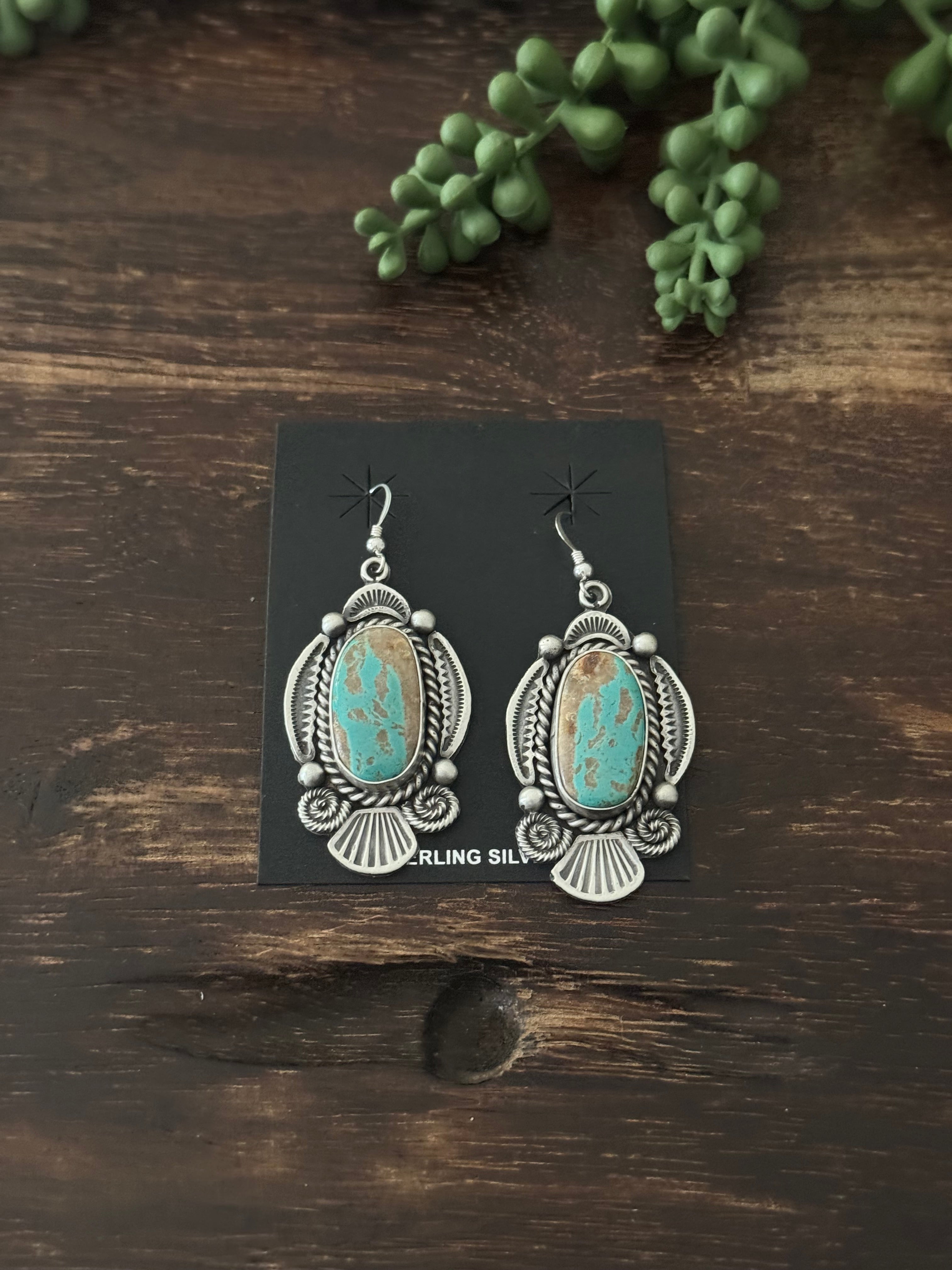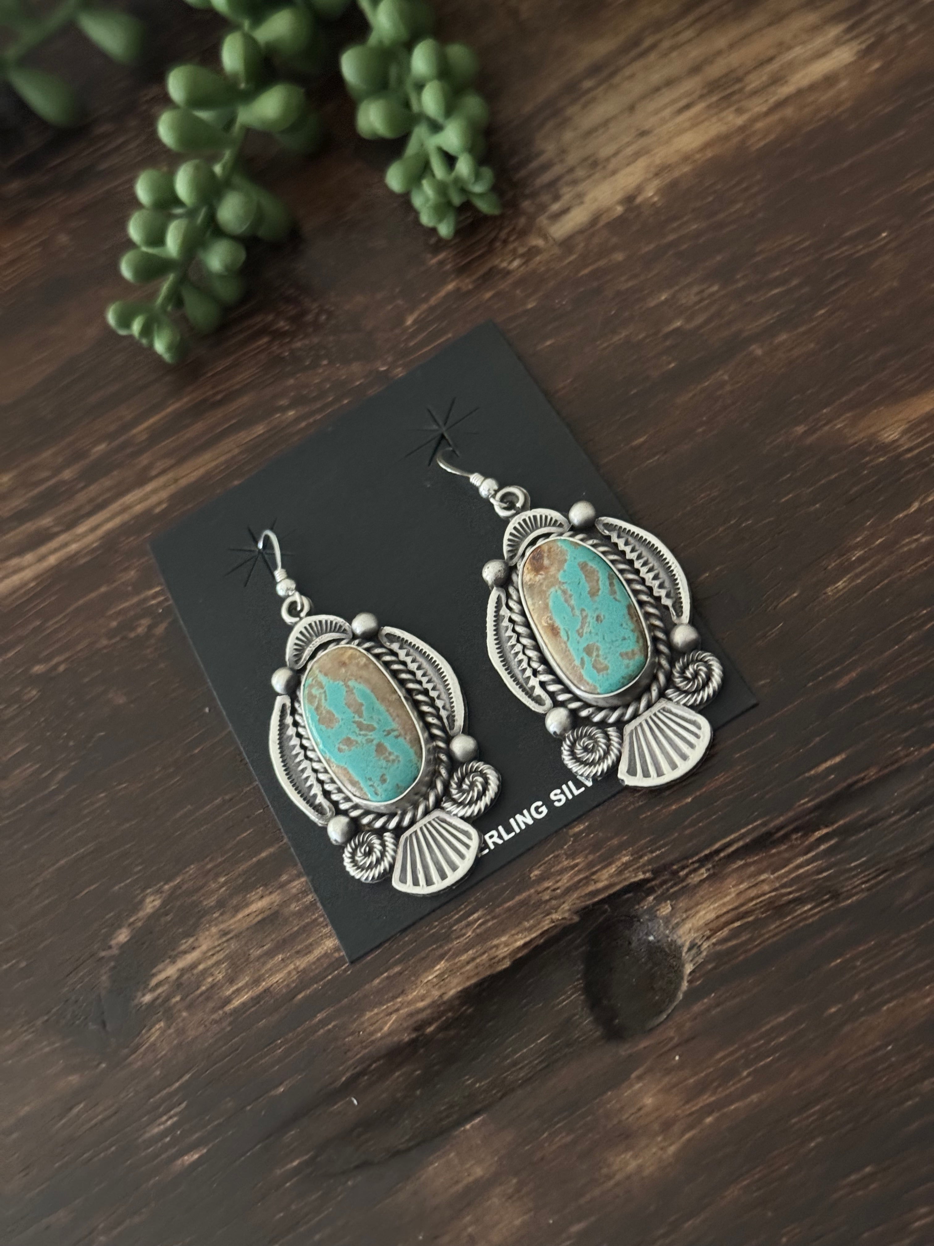 Navajo Made Kingman Turquoise & Sterling Silver Dangle Earrings