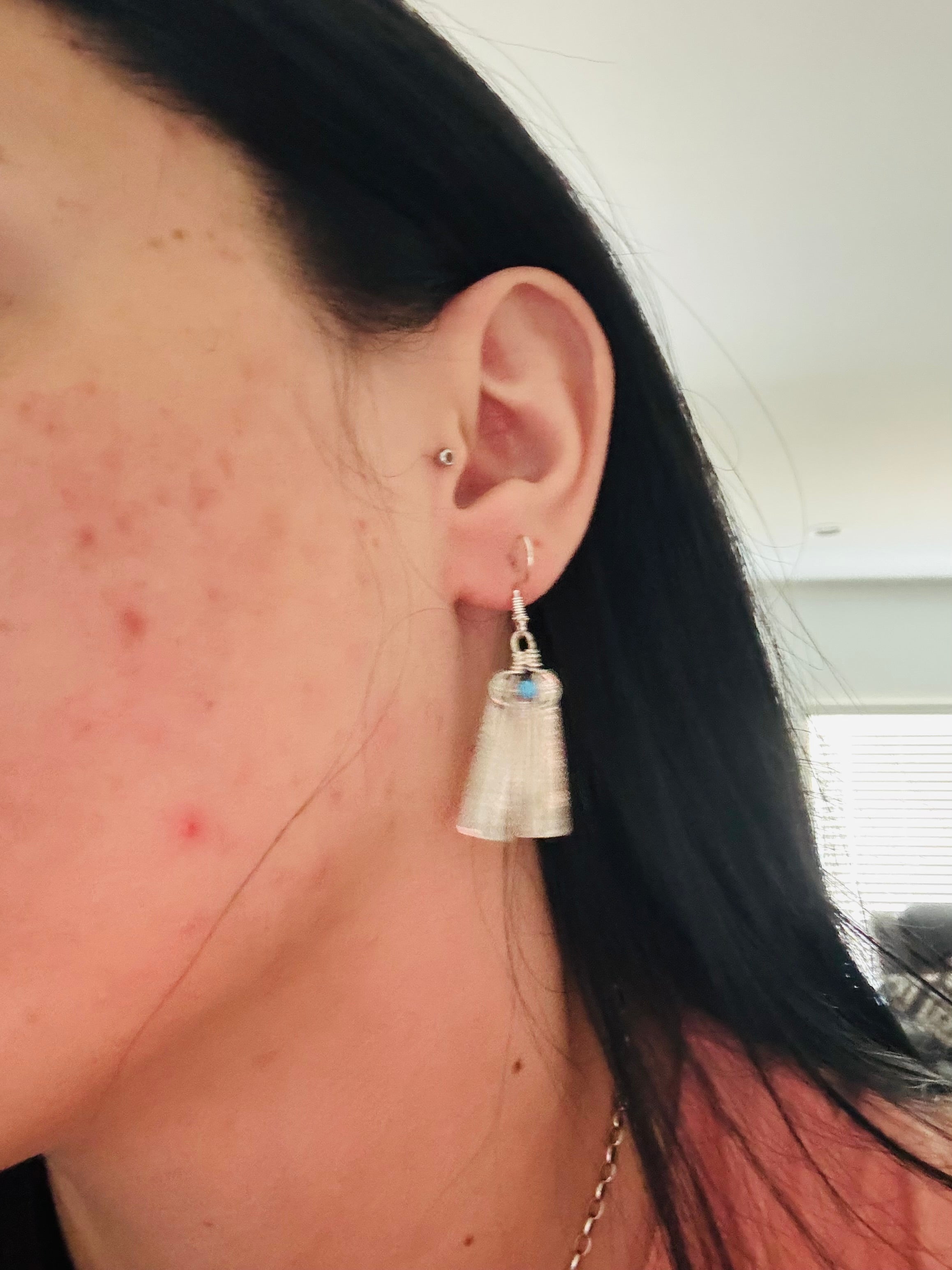 Beautiful dangle earrings. Navajo Made Kingman Turquoise & Sterling Silver Dangle Earrings. It measures 1 3/4 inches long and 1/2 of an inch wide.