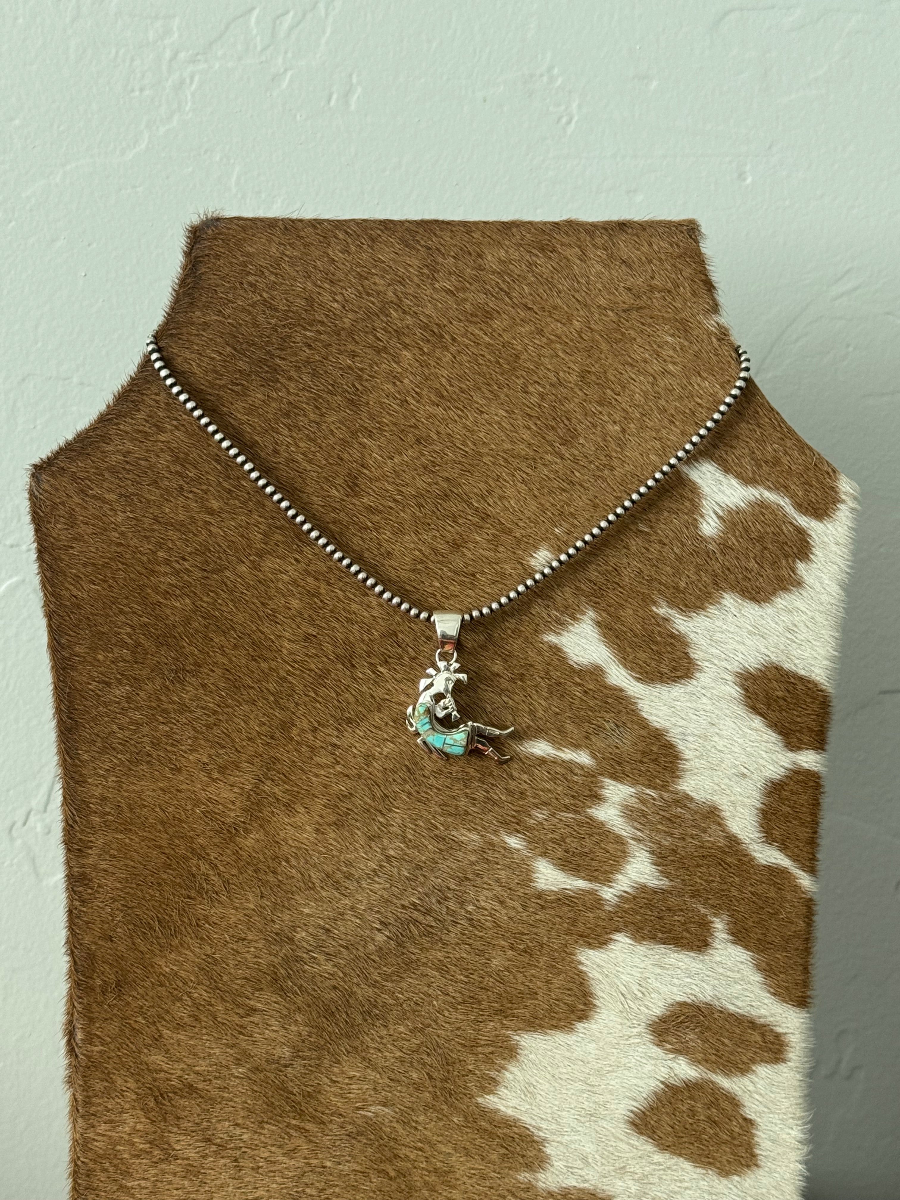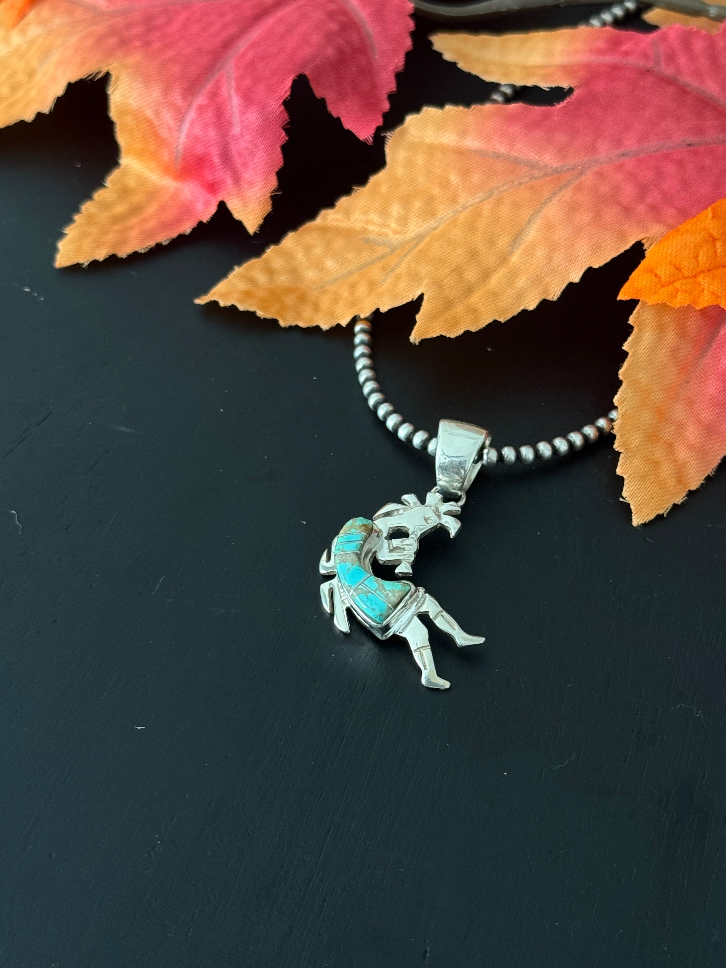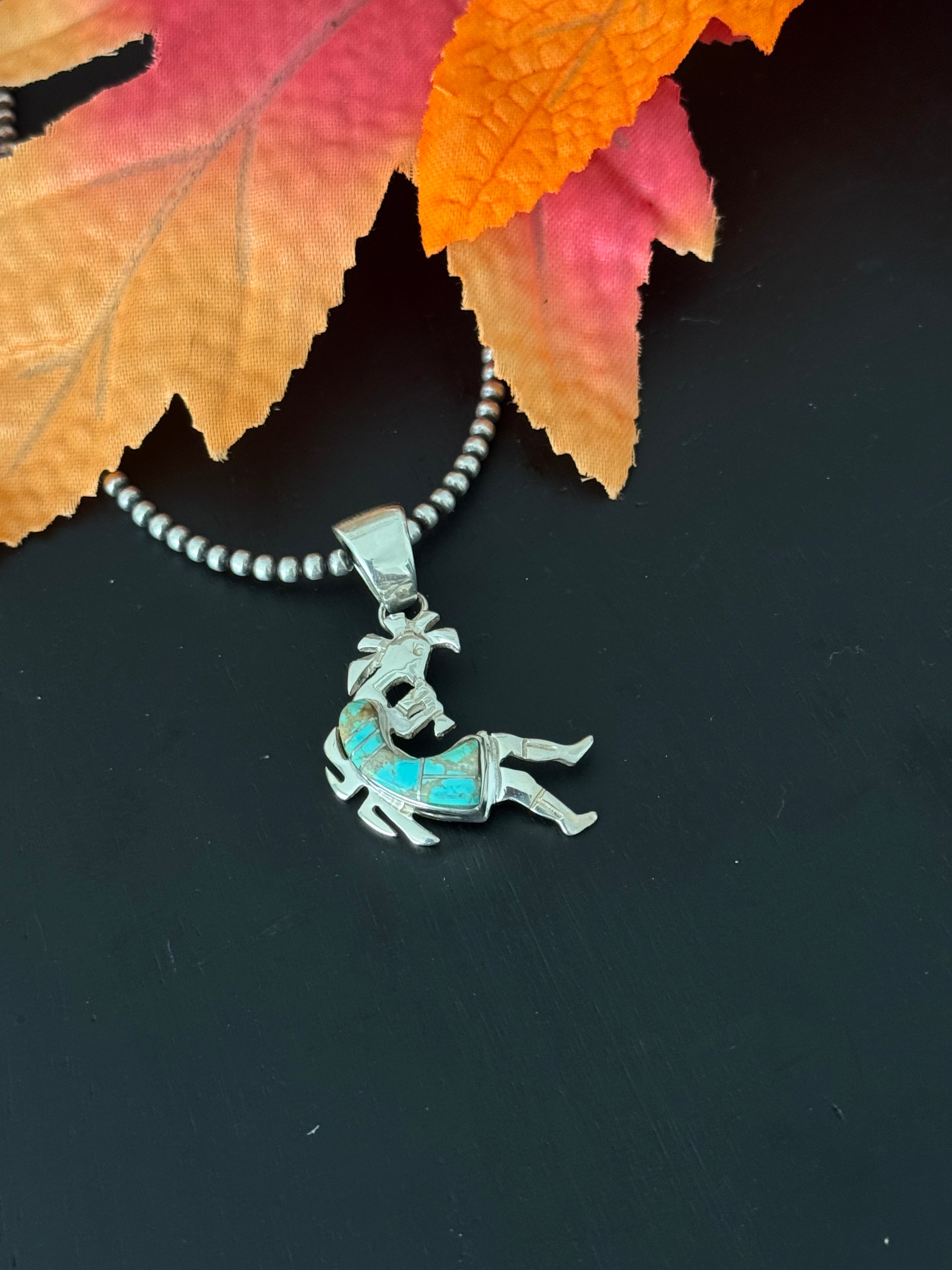 Navajo Made #8 Turquoise & Sterling Silver Inlay Kokopelli Pendant