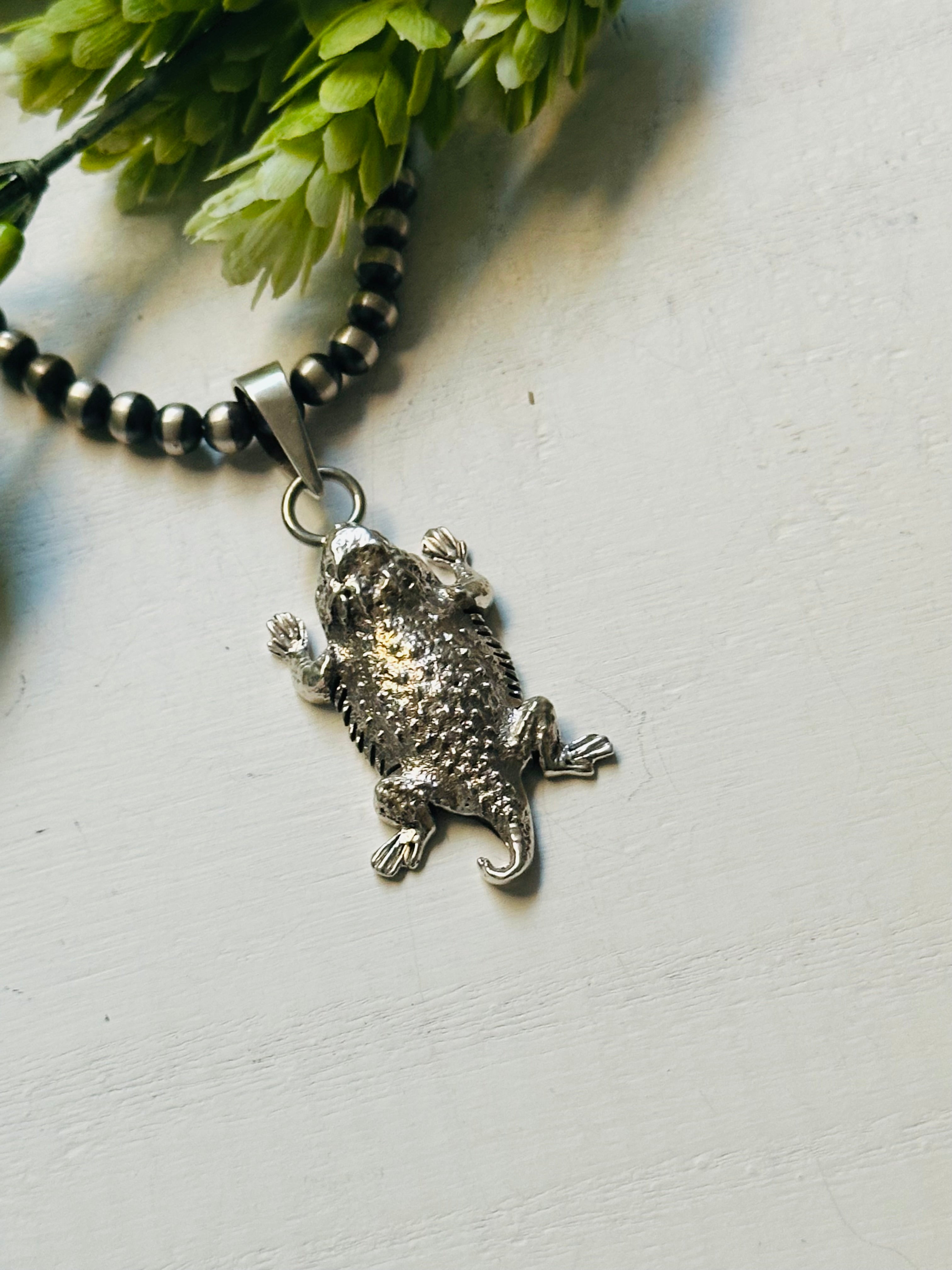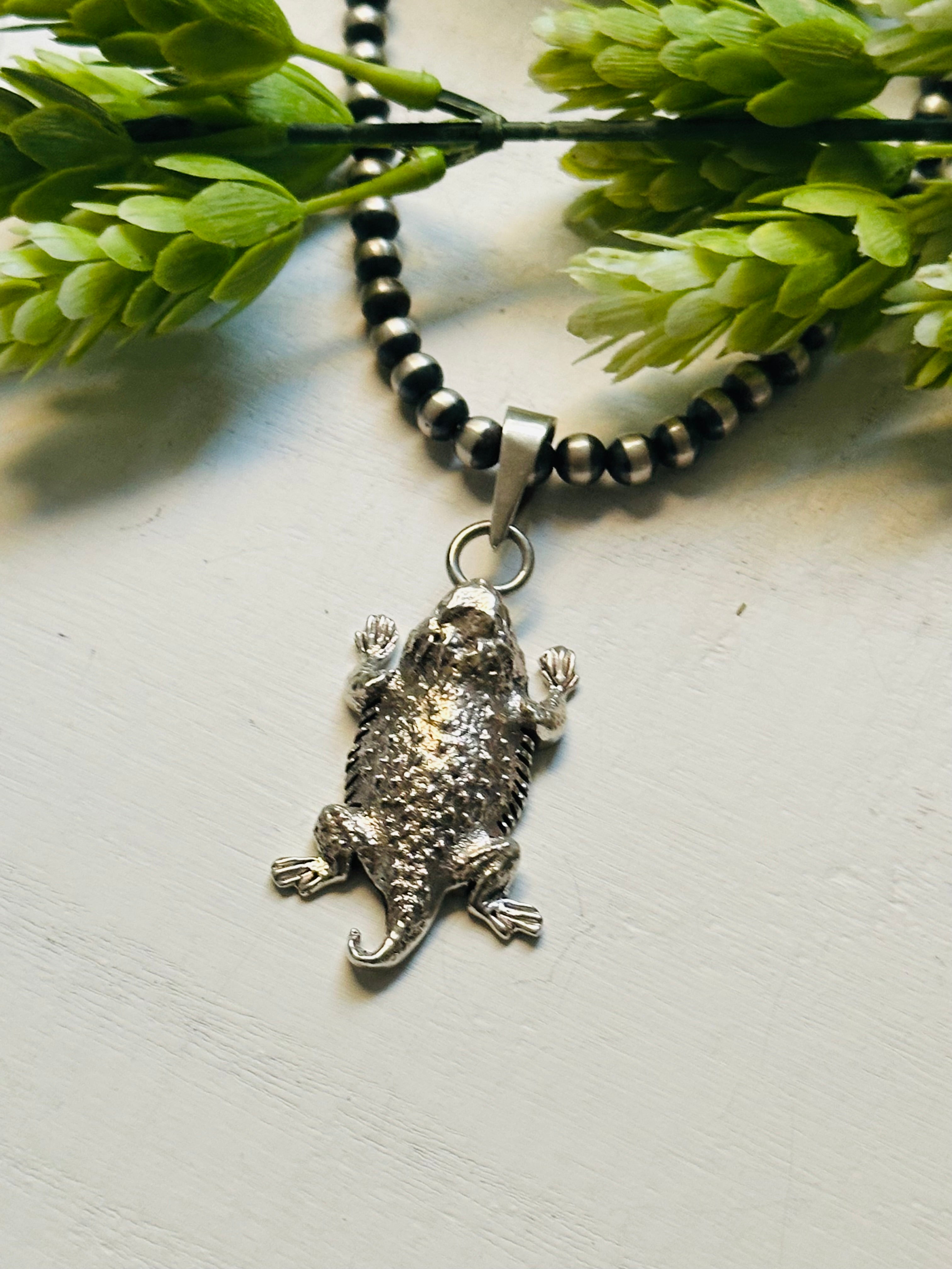 Navajo Made & Sterling Silver Horny Toad Pendant