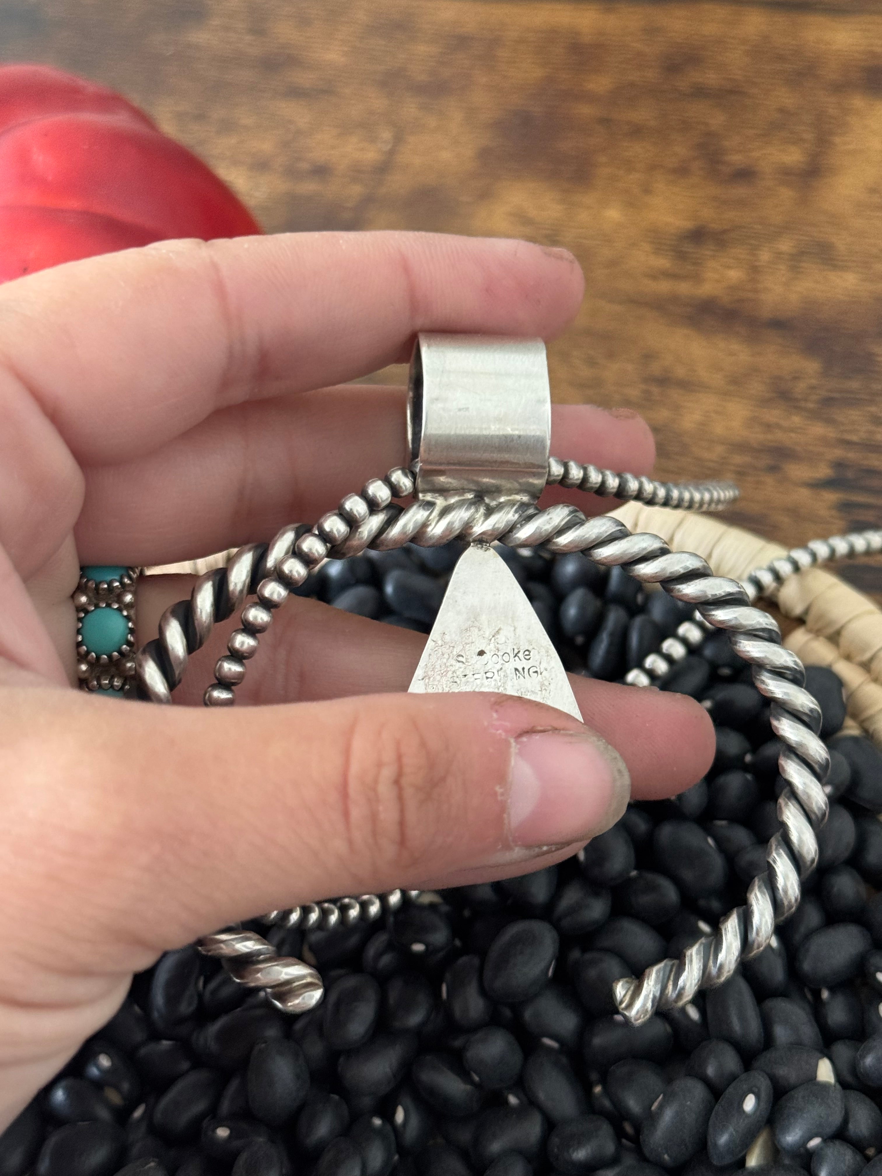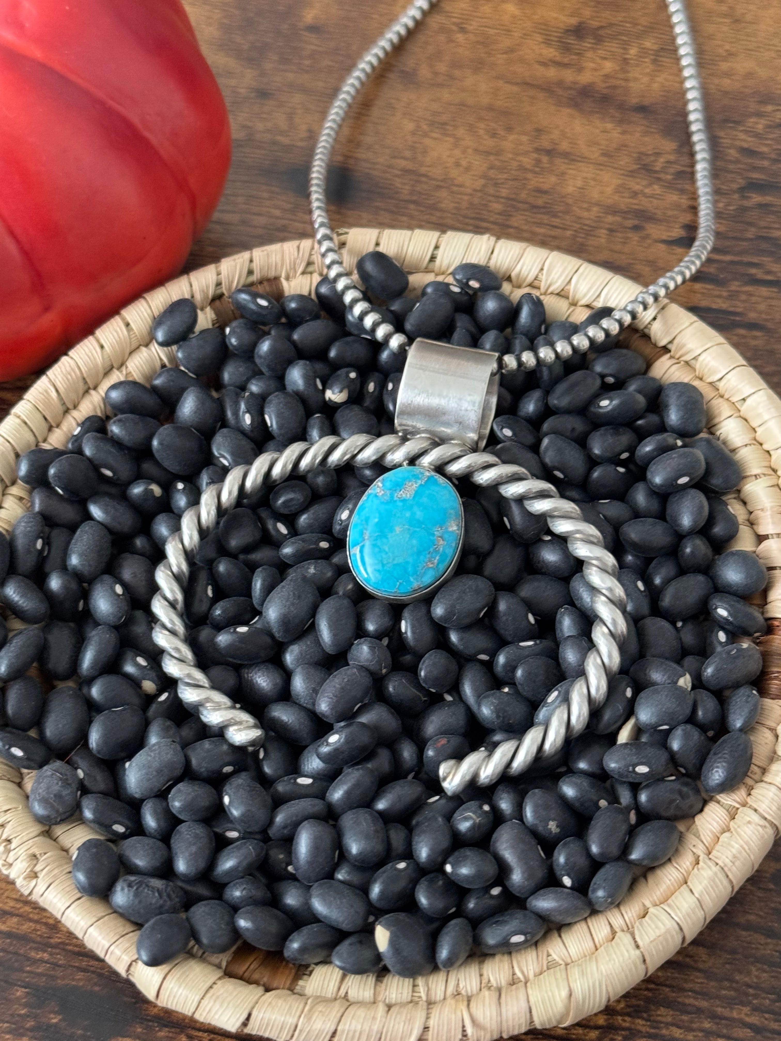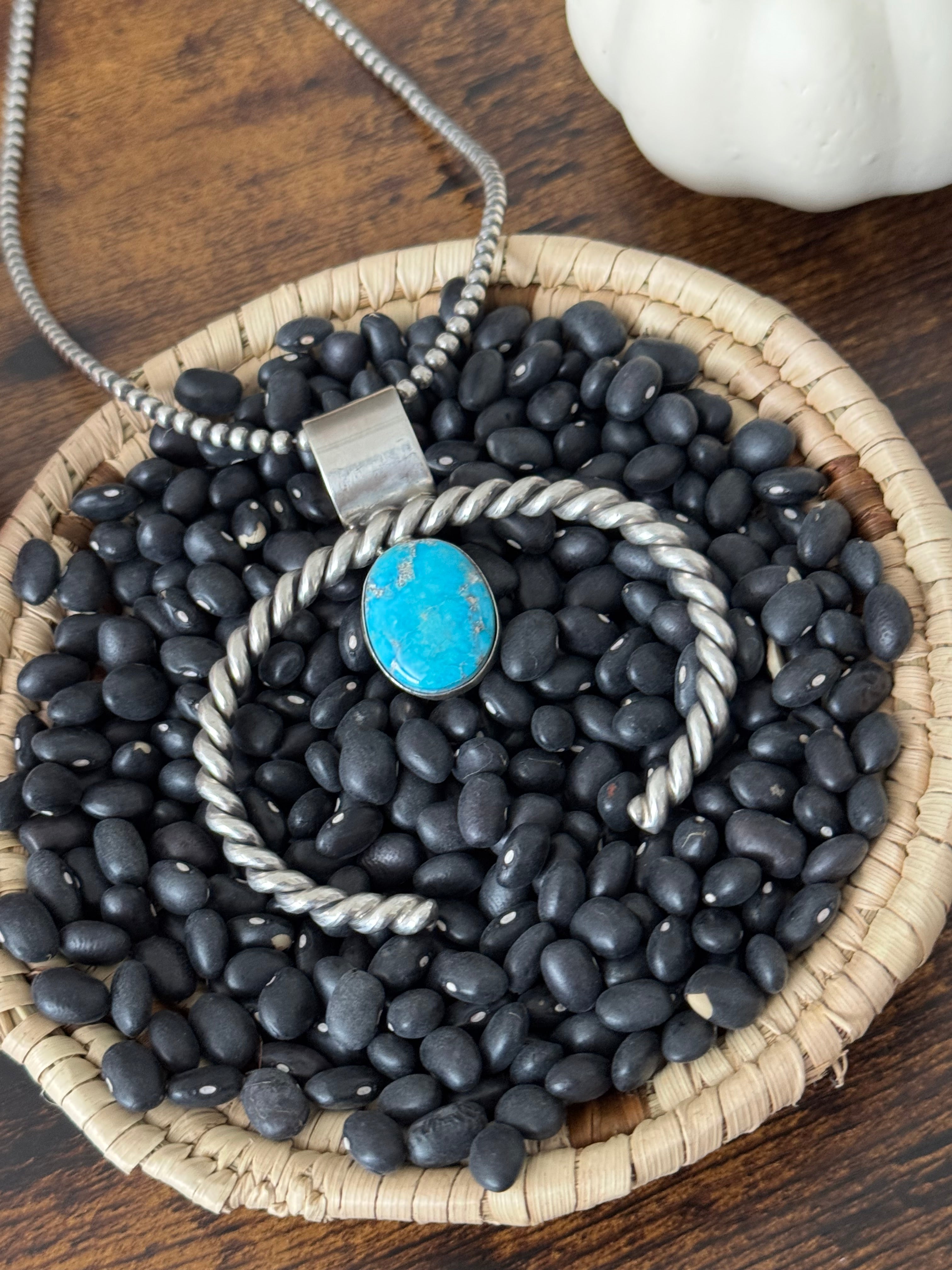 Navajo Made Kingman Turquoise & Sterling Silver Naja Pendant