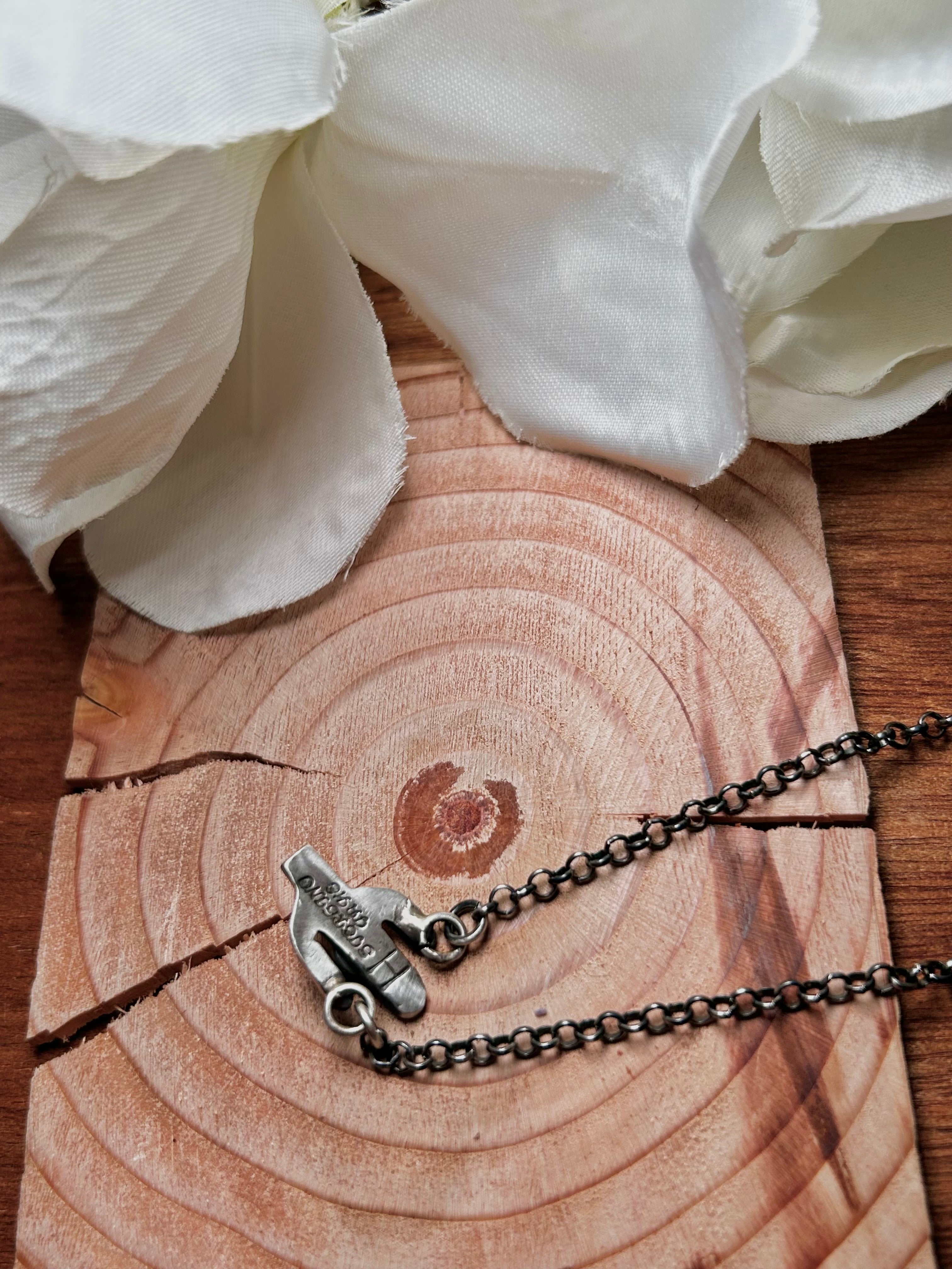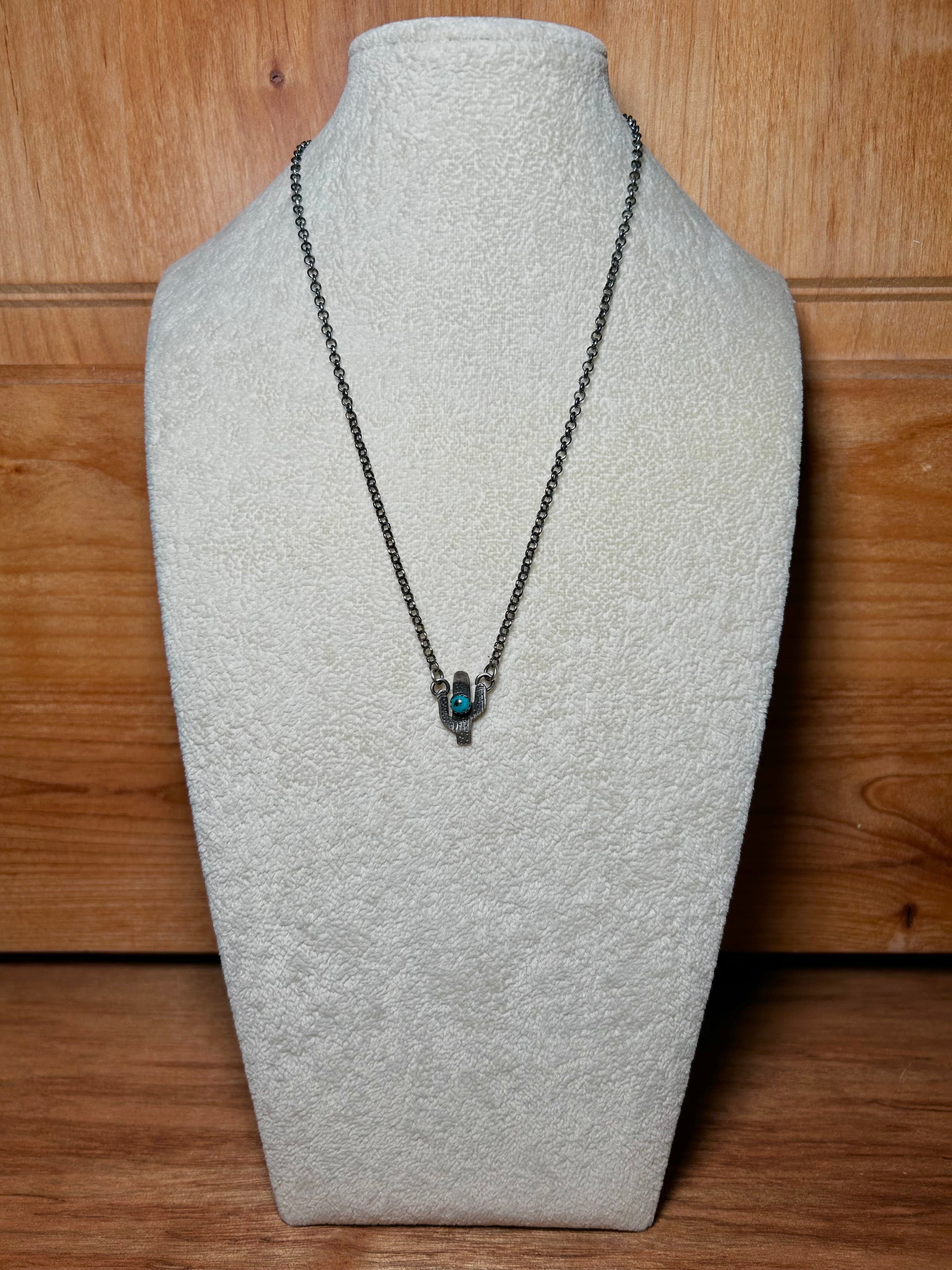 Navajo Made Kingman Turquoise and Sterling Silver Necklace. It measures 20inches long with hang while the chain measures 19 inches long. Signed by the artist and stamped sterling silver.