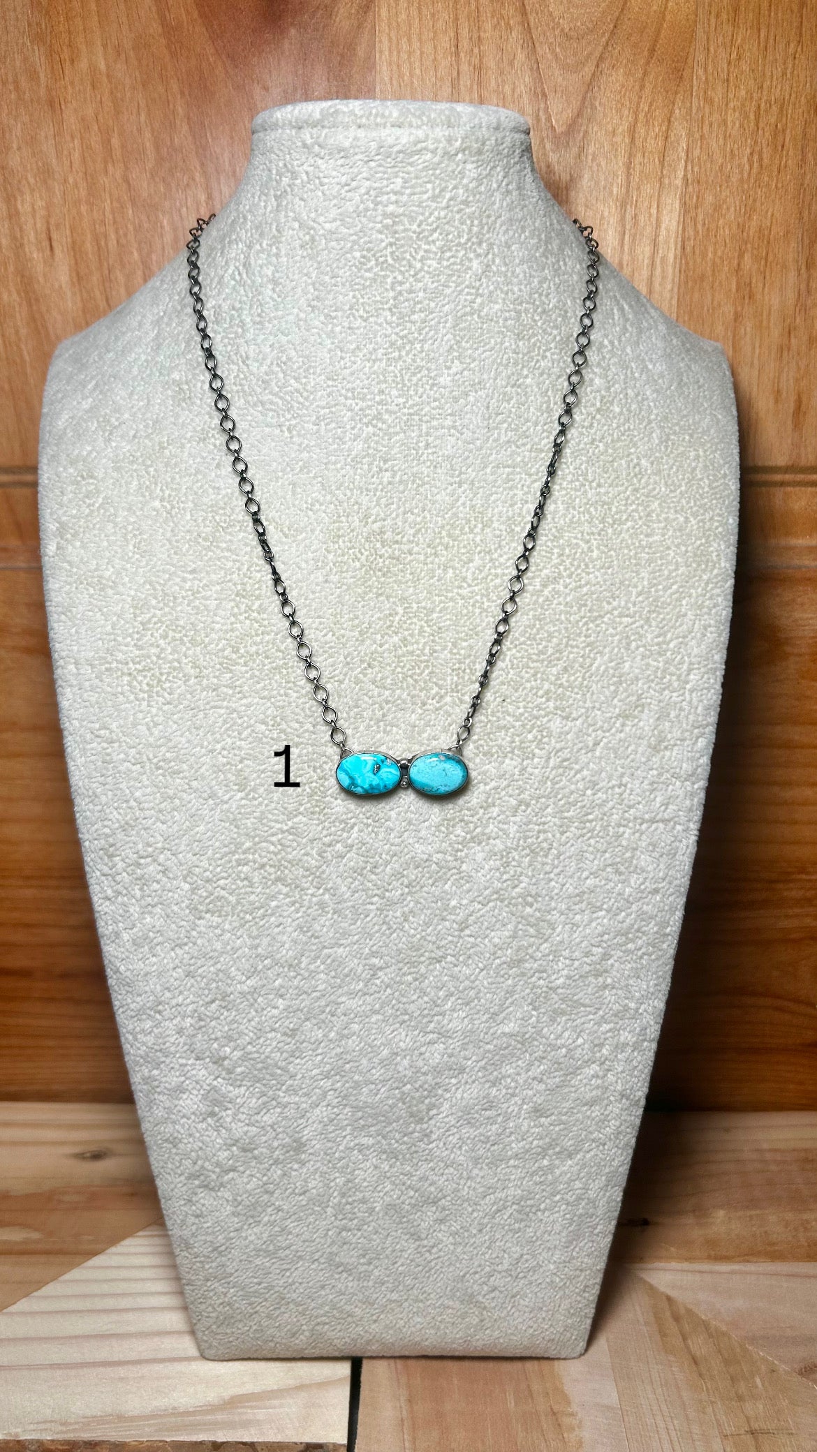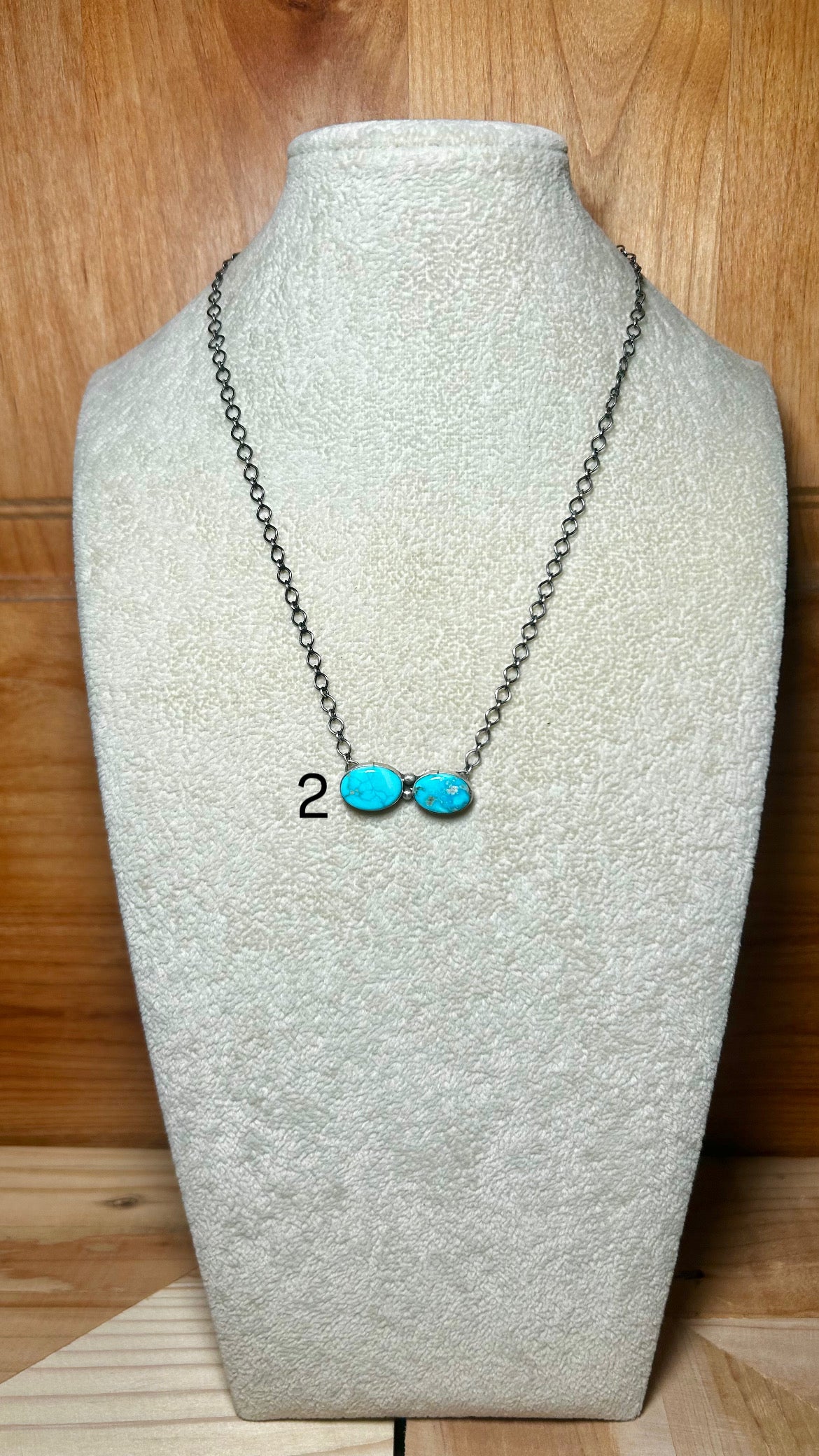 Navajo Made White Water Turquoise & Sterling Silver Necklace. It measures 18 inches long with hang while the chain measures 17 1/4 inches long. Signed by the artist and stamped sterling silver.