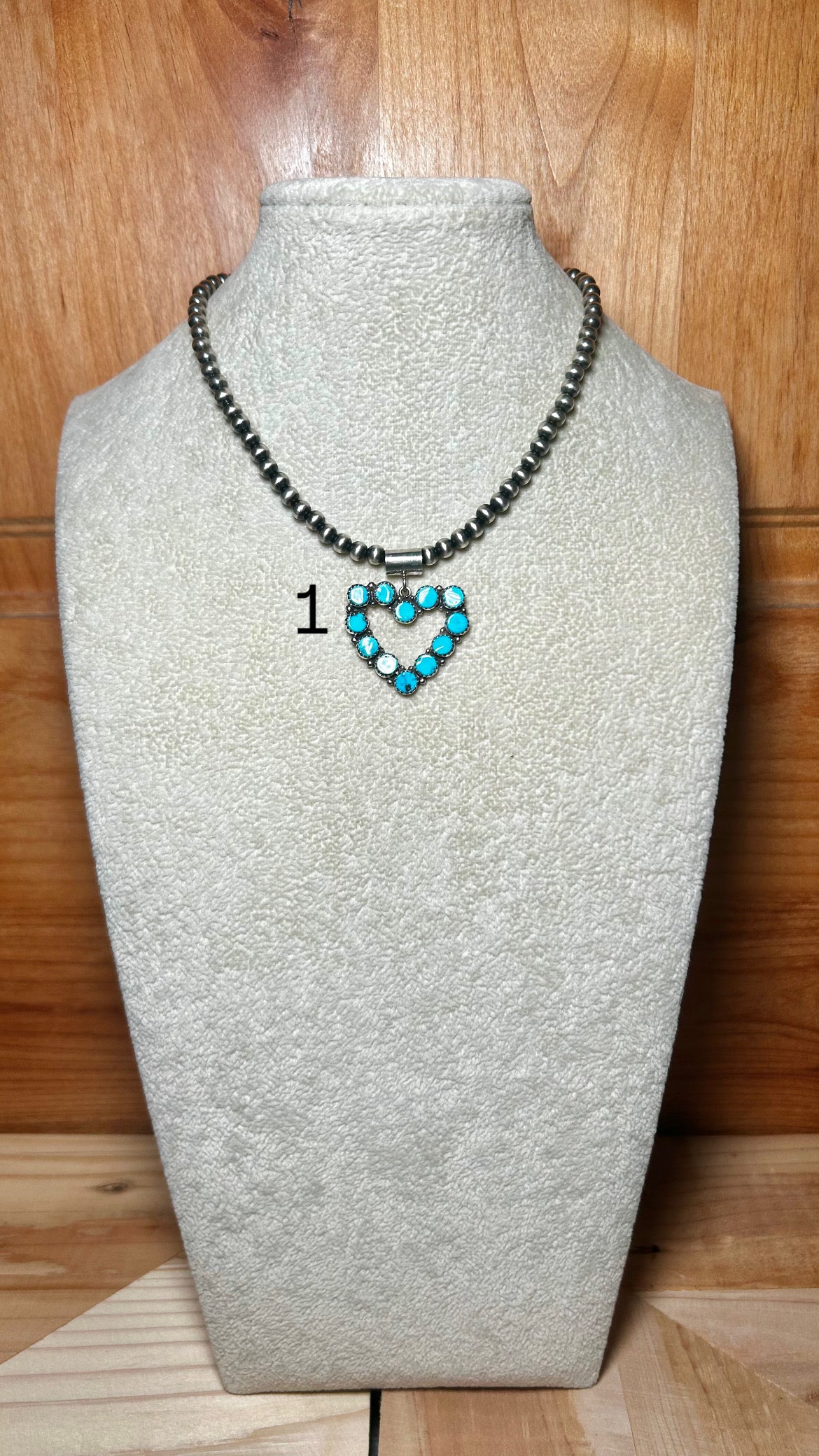 Martin Perry Kingman Turquoise & Sterling Silver Necklace. It measures 16 inches long with hang while the chain measures 13 inches long. Signed by the artist and stamped sterling silver.