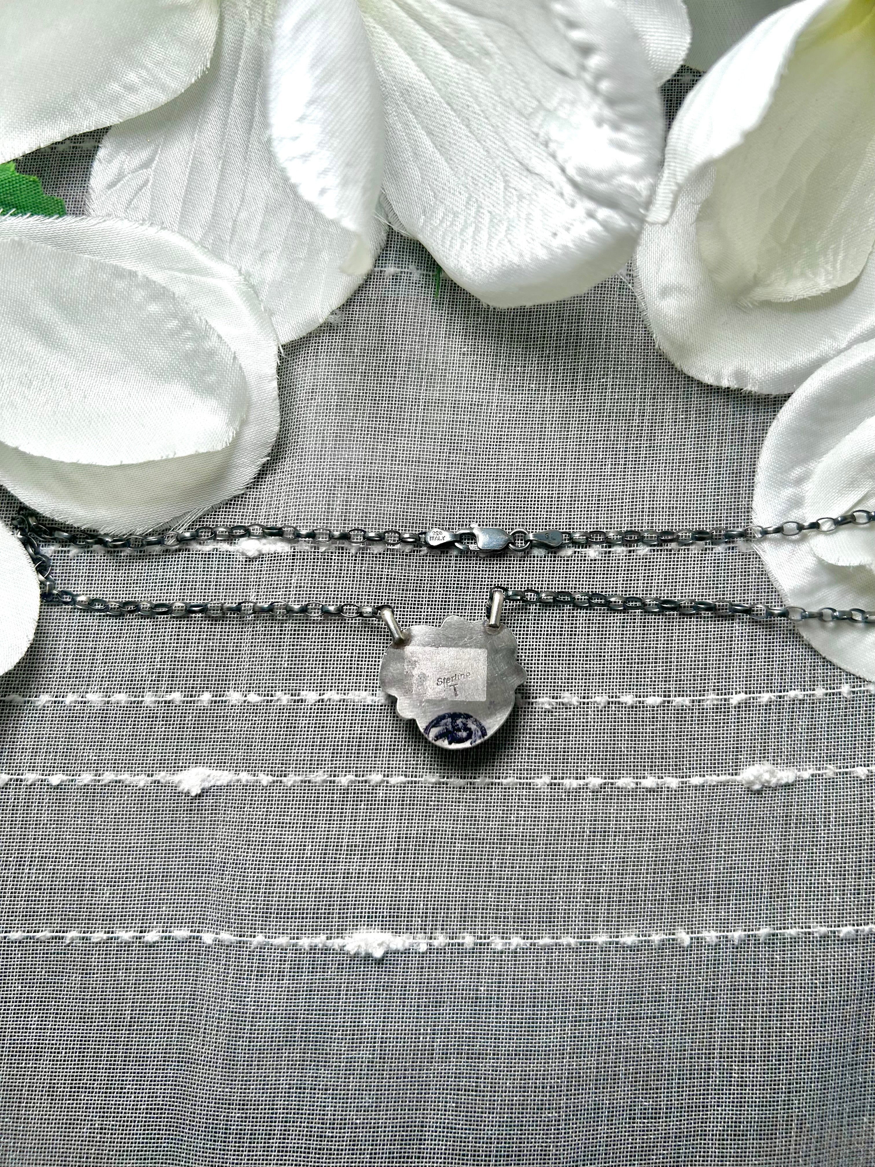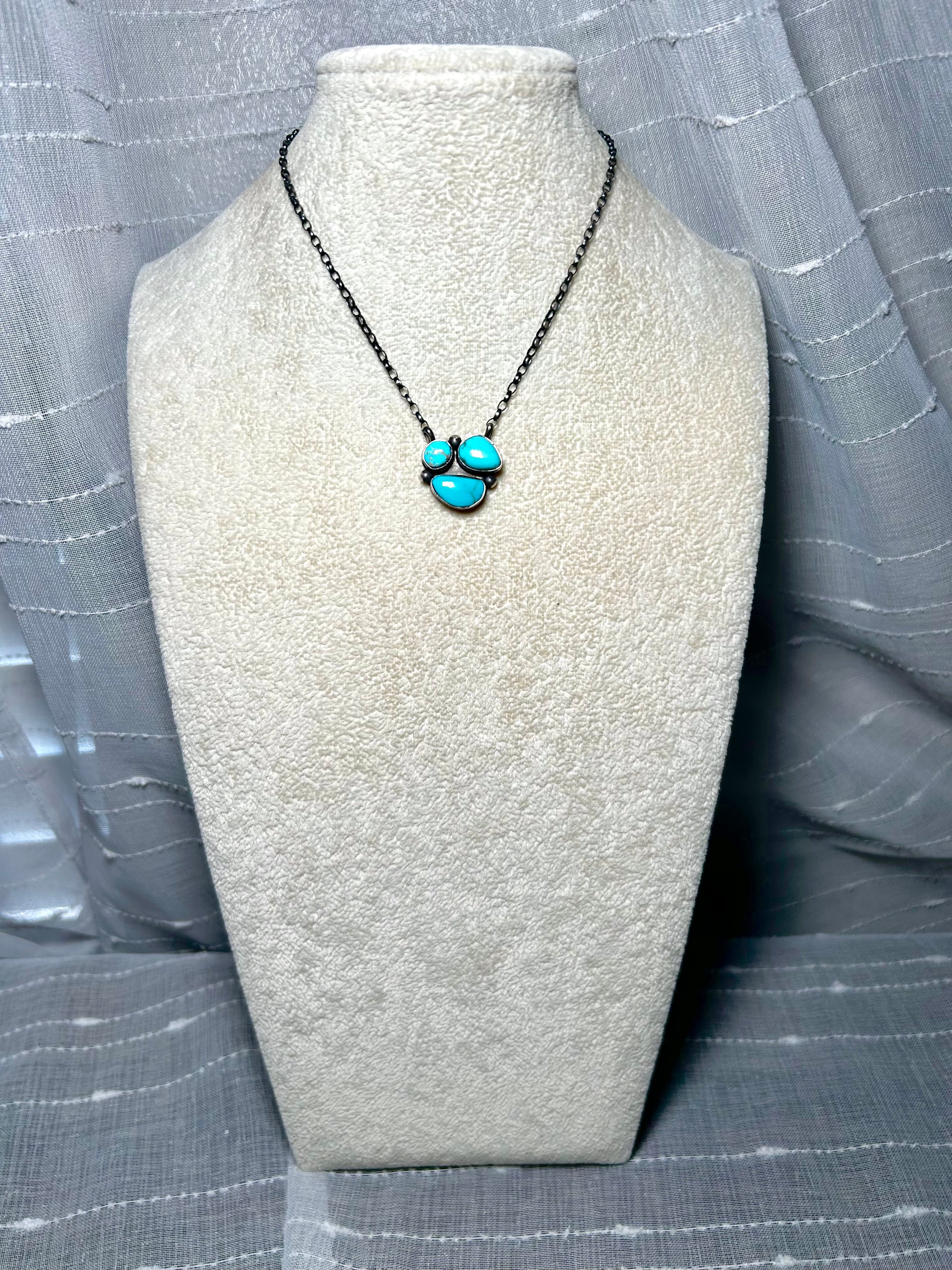 Navajo Made Kingman Turquoise & Sterling Silver Necklace. It measures 15 inches long with hang while the chain measures 13 inches long. Signed by the artist and stamped sterling silver.