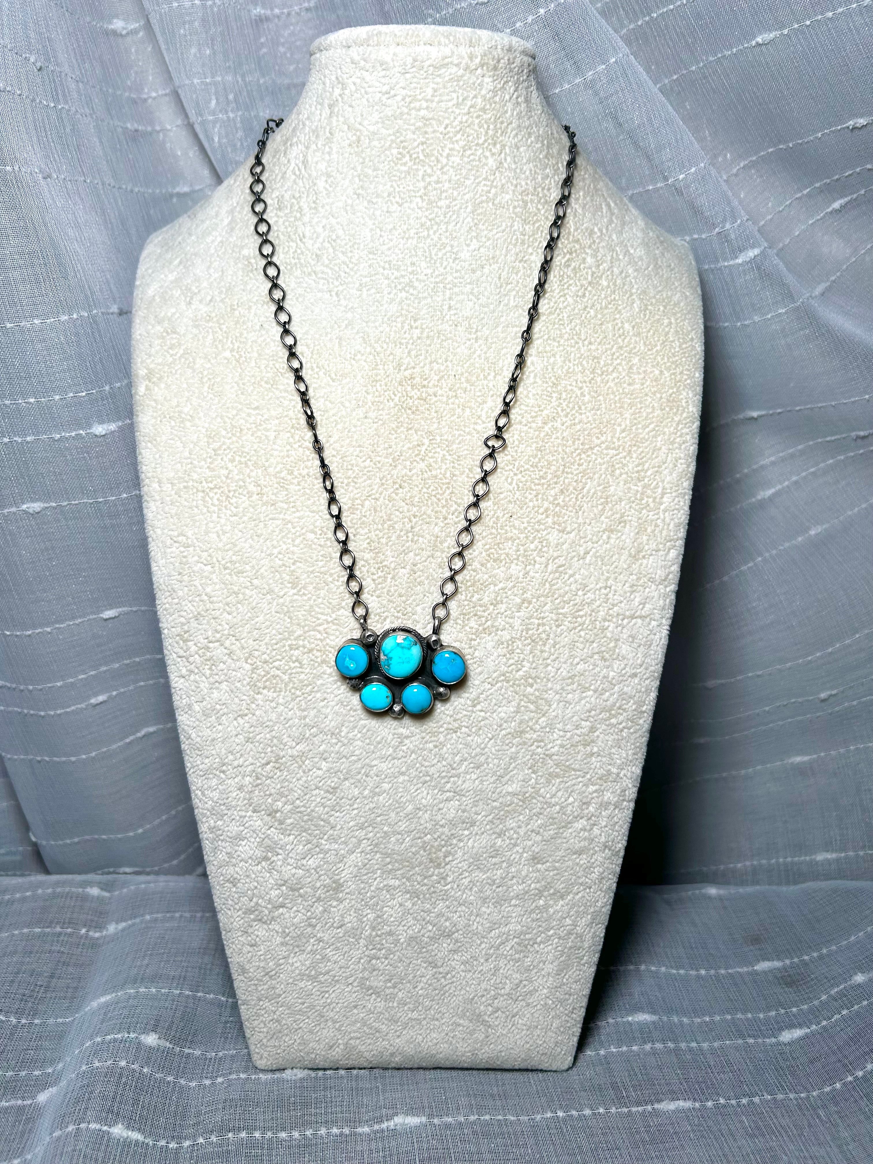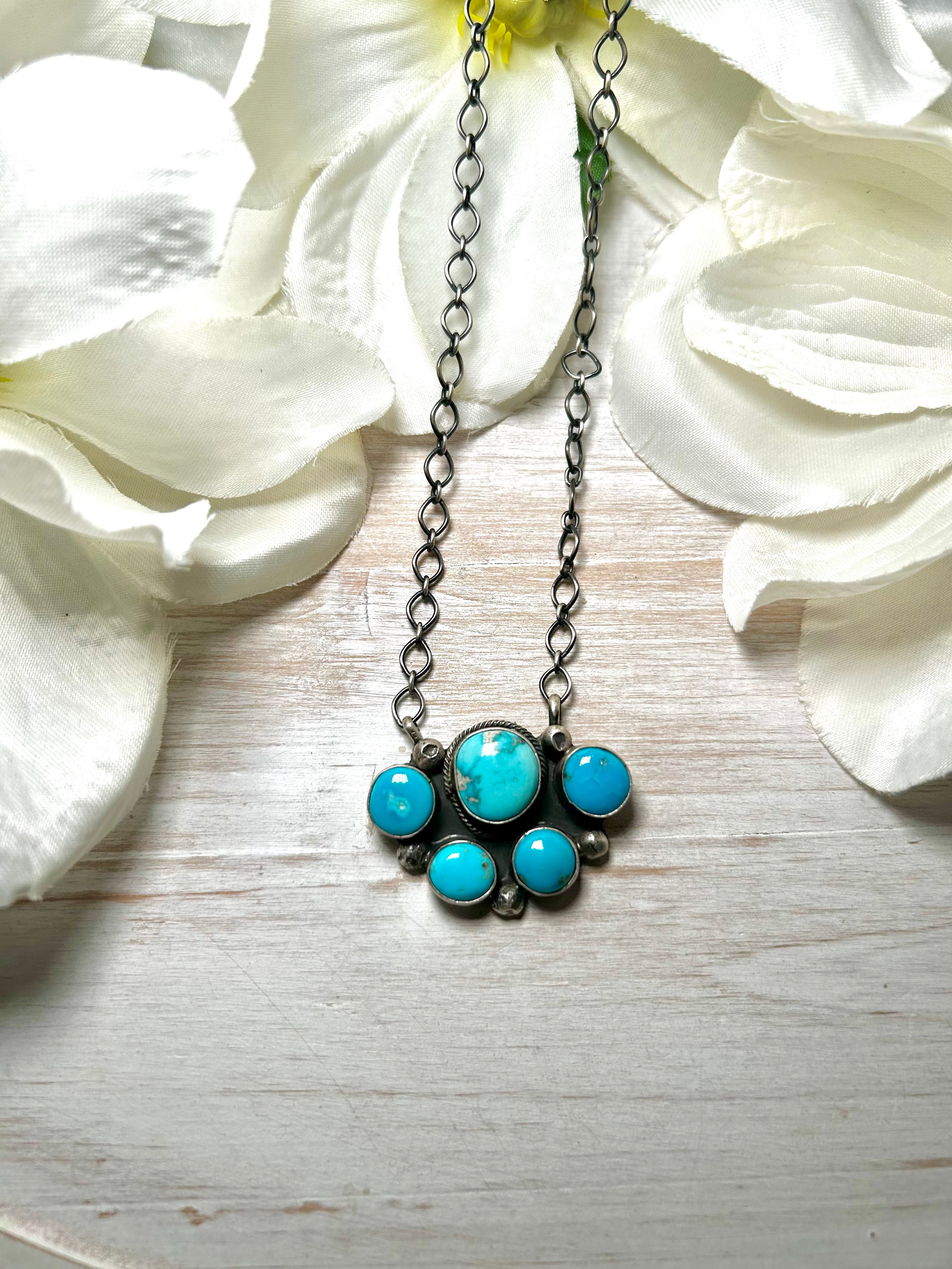 Navajo Made Kingman Turquoise & Sterling Silver Necklace